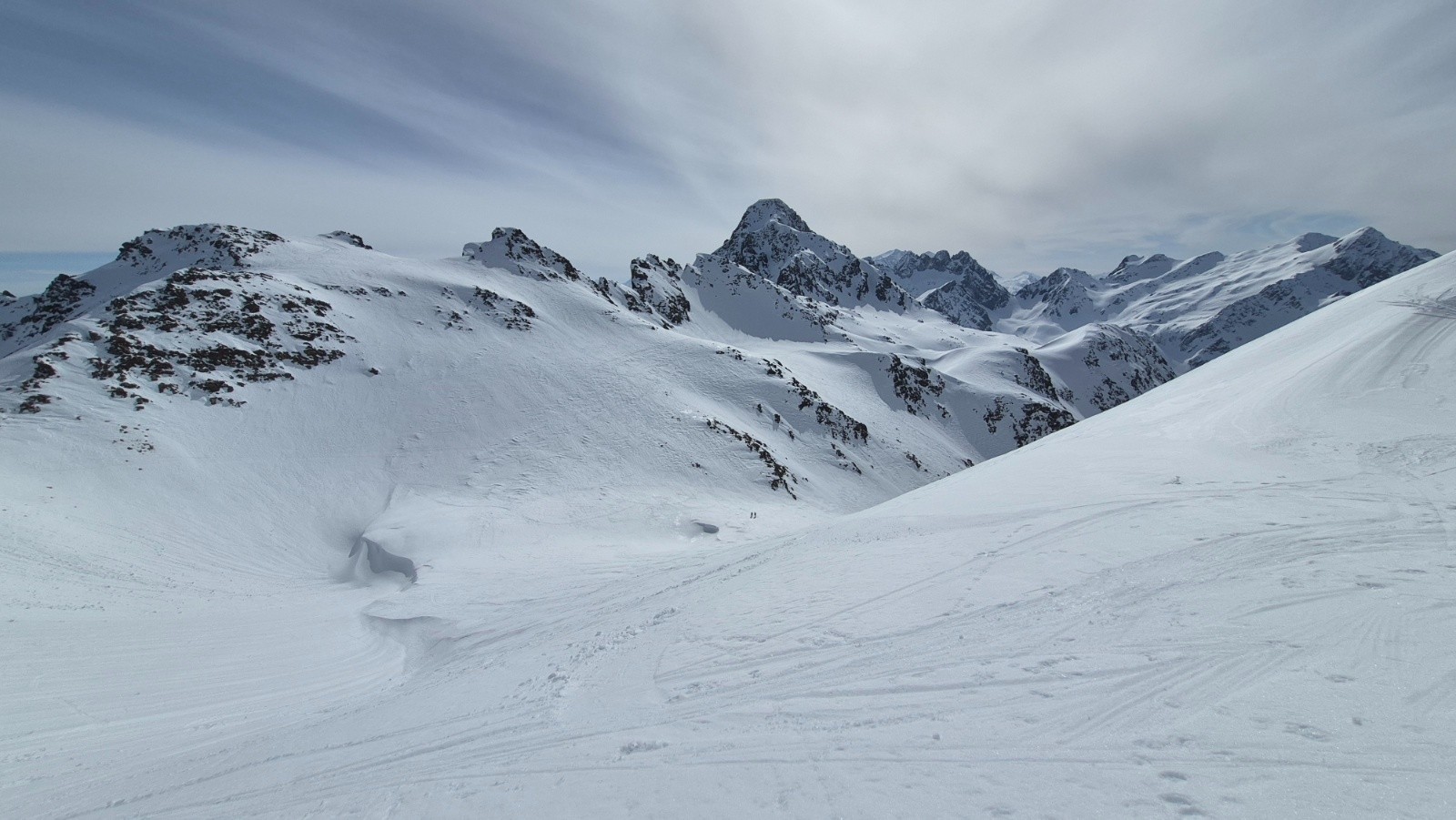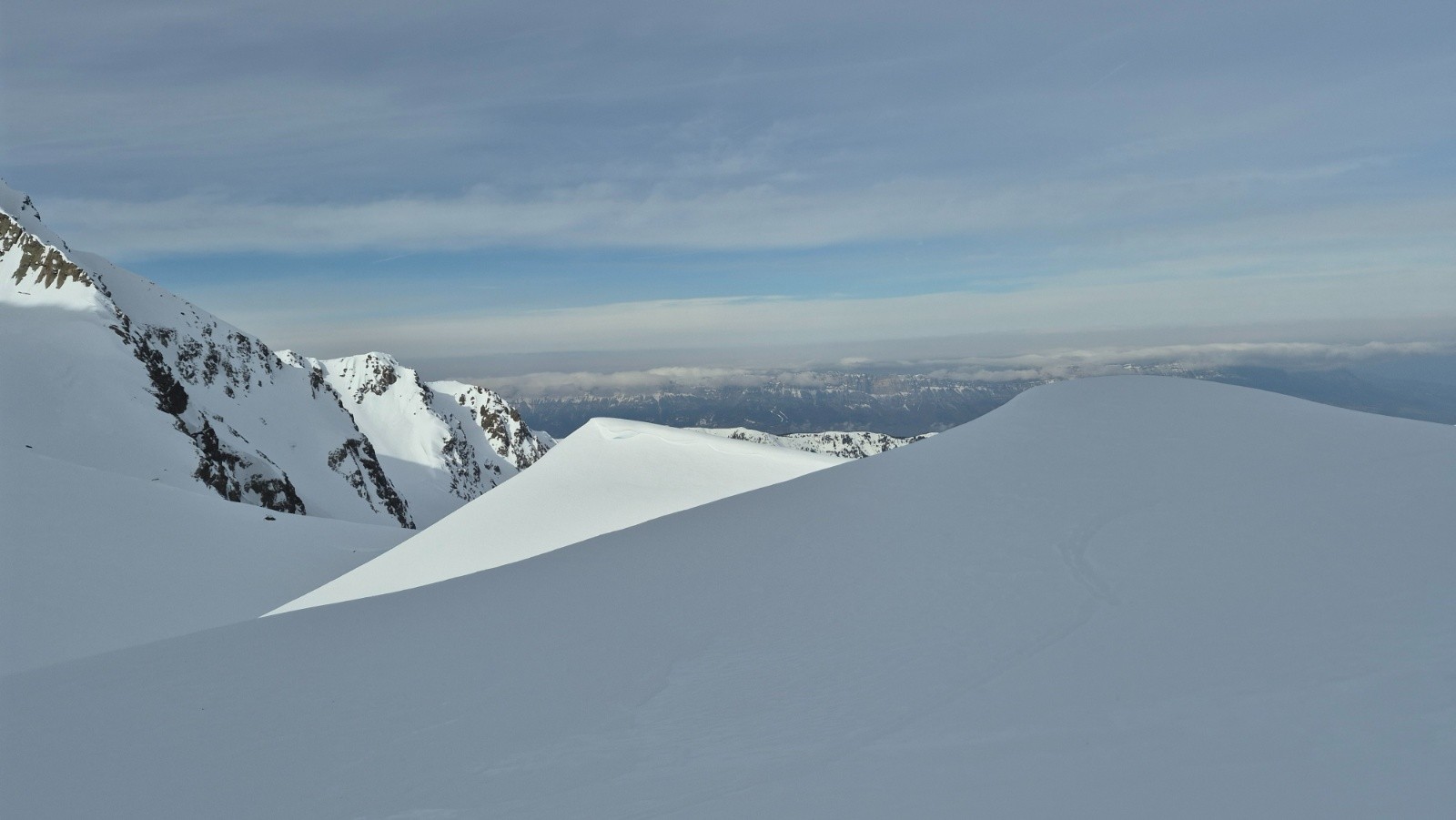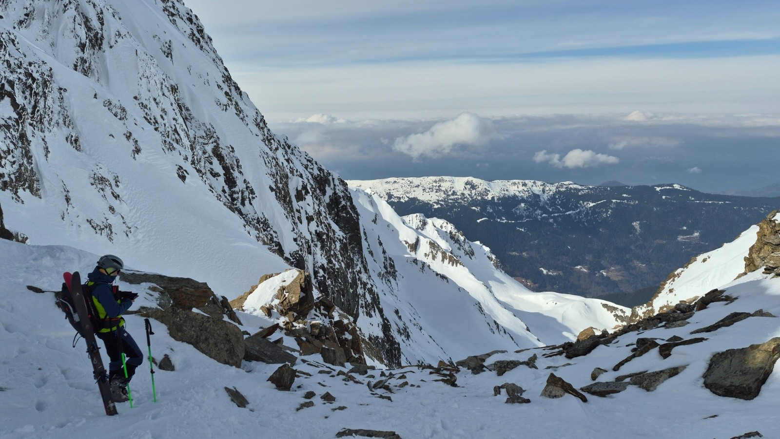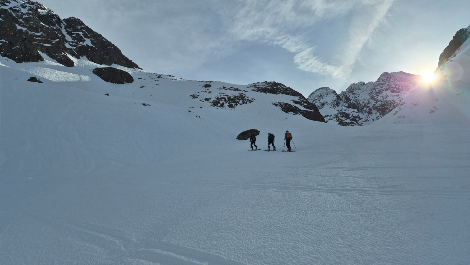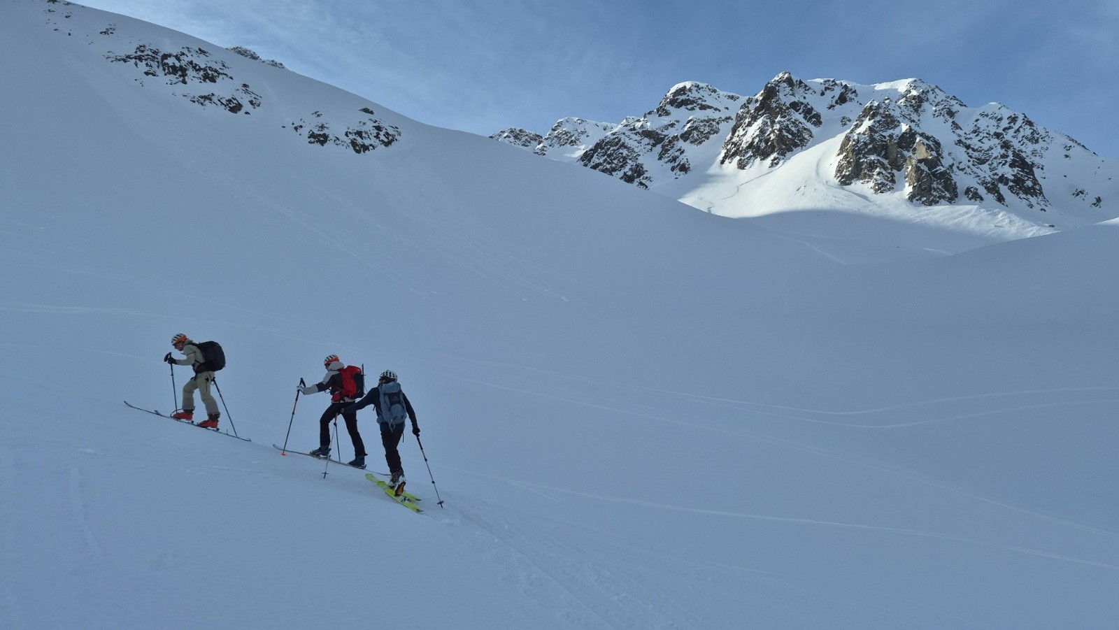 En bref, on cherchait la bonne neige restée dans les versants froids, bonne pioche avec ce topo. Toujours une tranquillité incroyable on a vu 1 personne à la montée, 4 à la descente... Un peu plus de monde vers le col, mais quel privilège !!!
