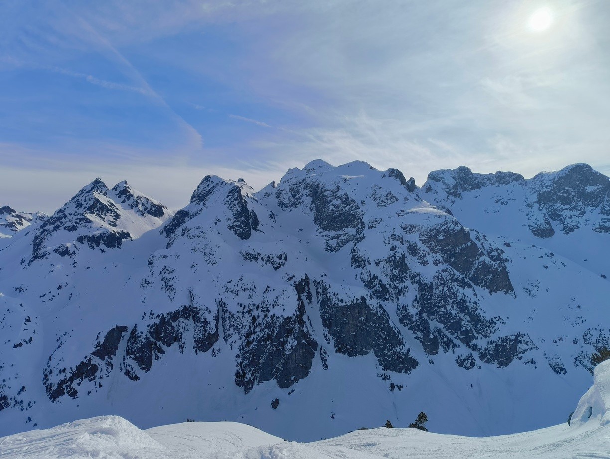Conditions pour le ski : bien meilleures que prévues. En choisissant les bonnes orientations et le bon horaire, ski bon de haut en bas