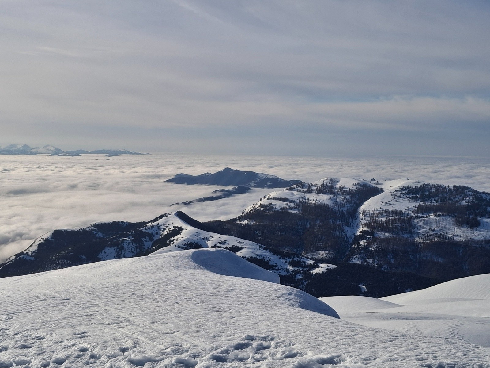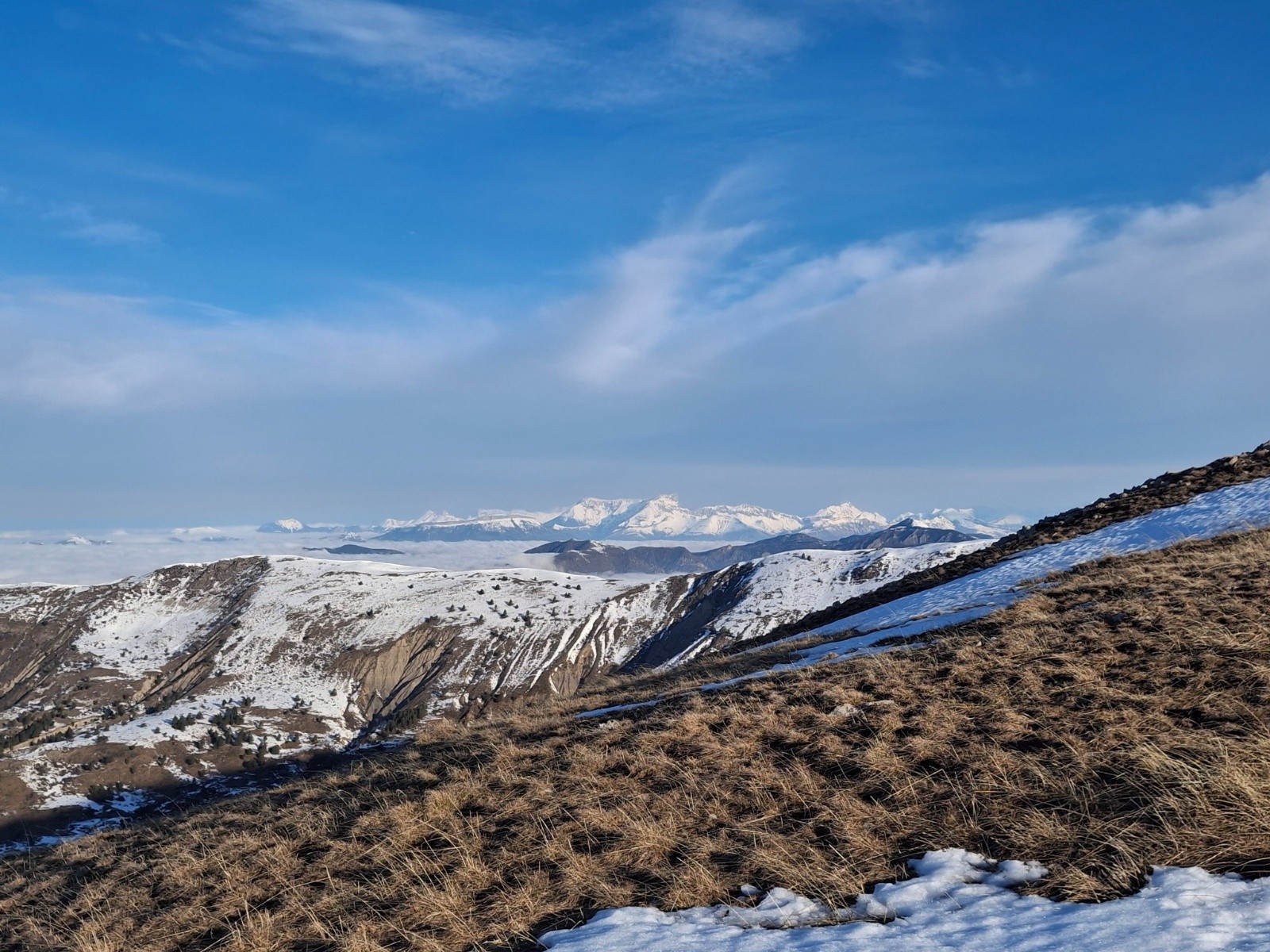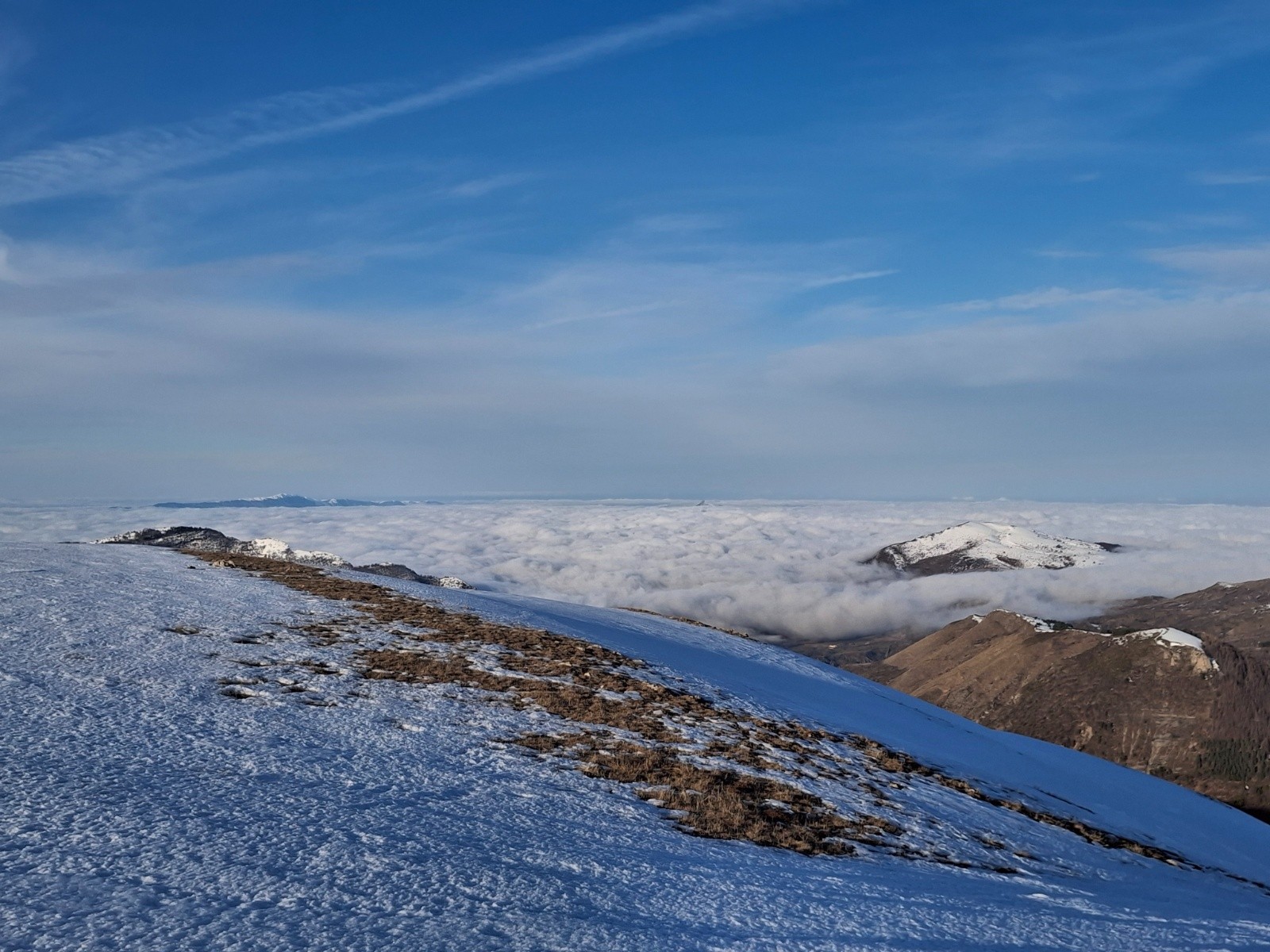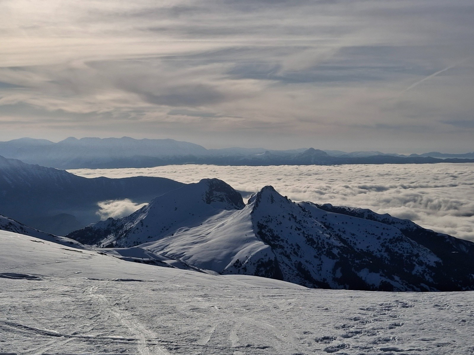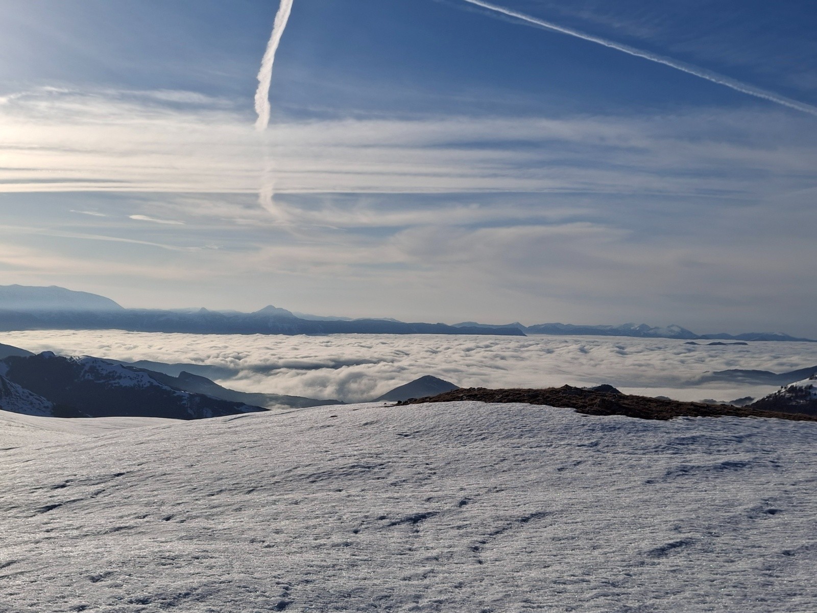 Météo/températures : mer de nuage autour des monges, soleil voile. Frais