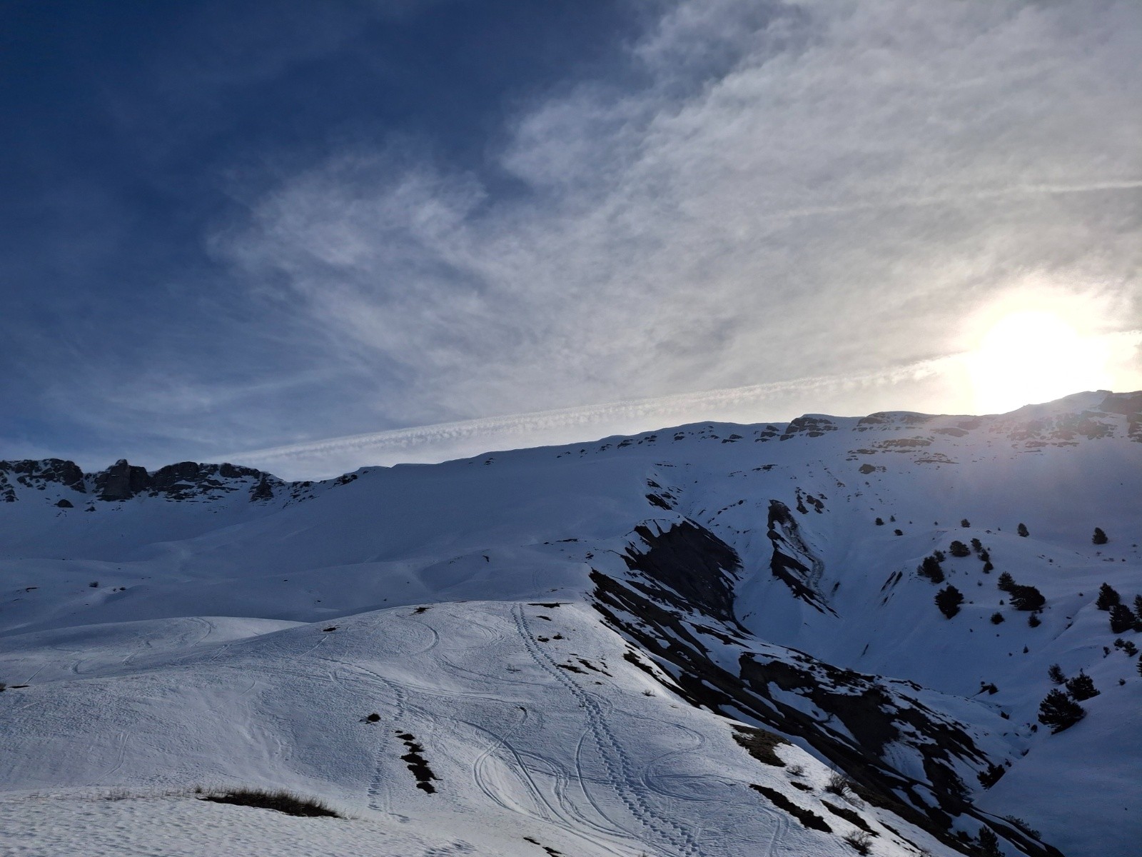 Itinéraire suivi : montee jusqua viendon via pinole. Montee vers crete 1860 puis crete jusquau sommet. Descente du point 2006 dans la large pente. Descente vers la bastie et portage par la piste denrigee.