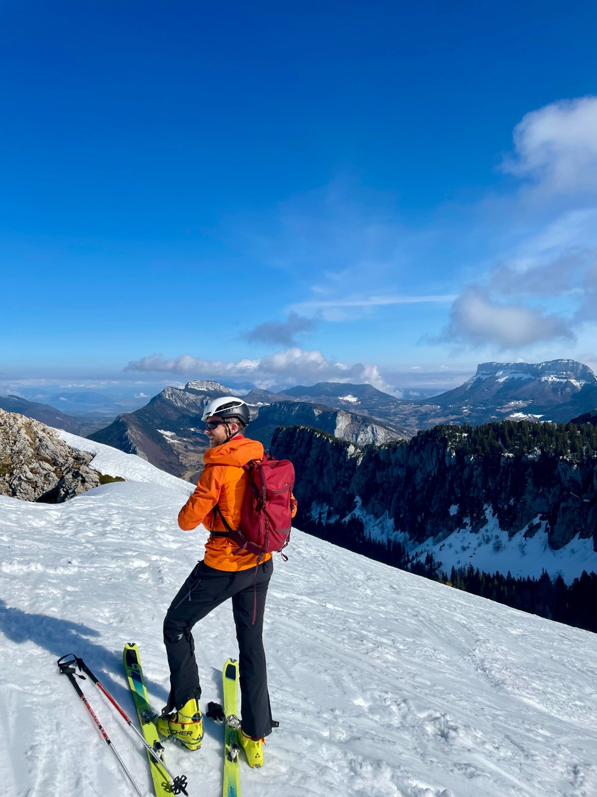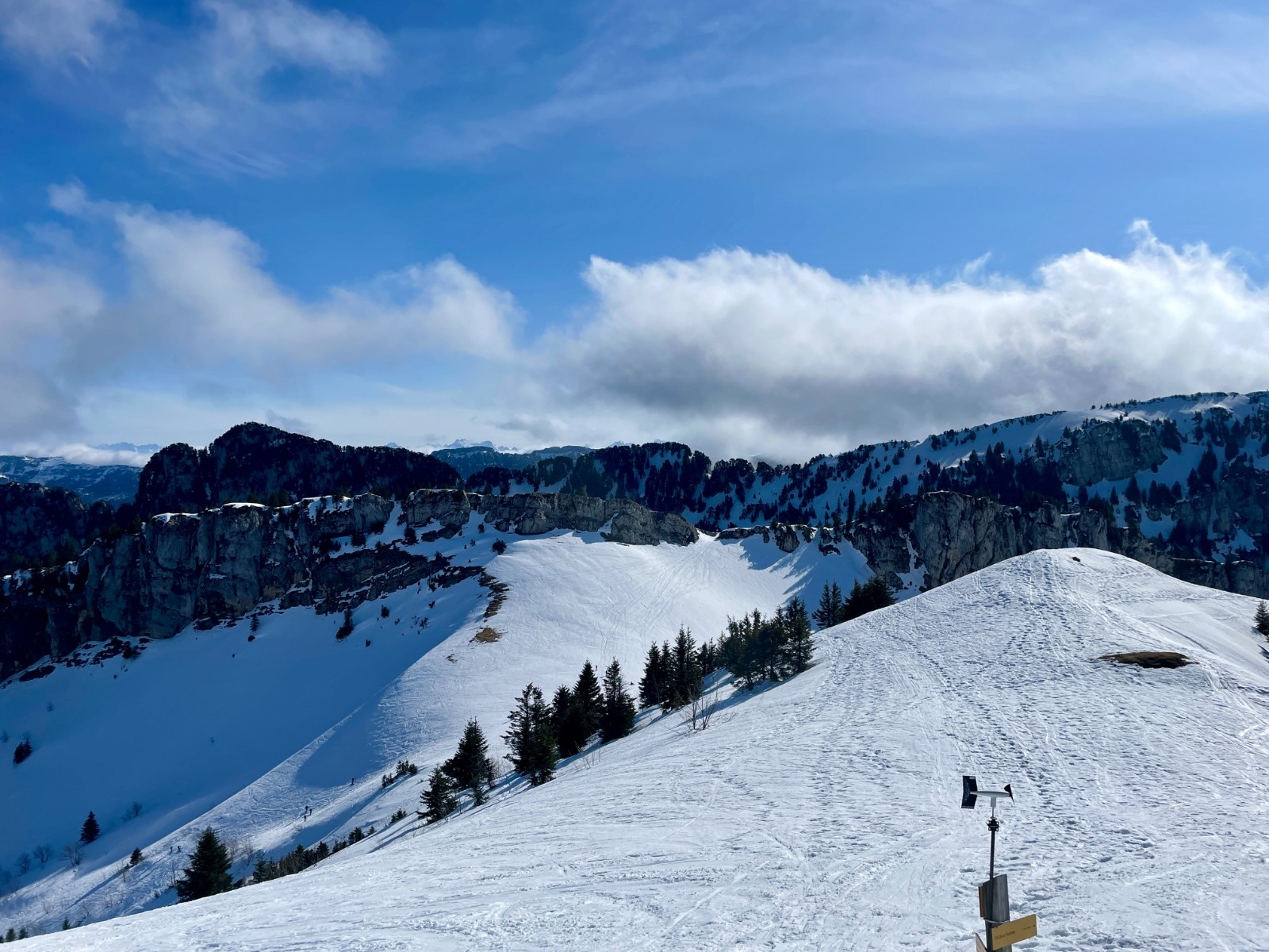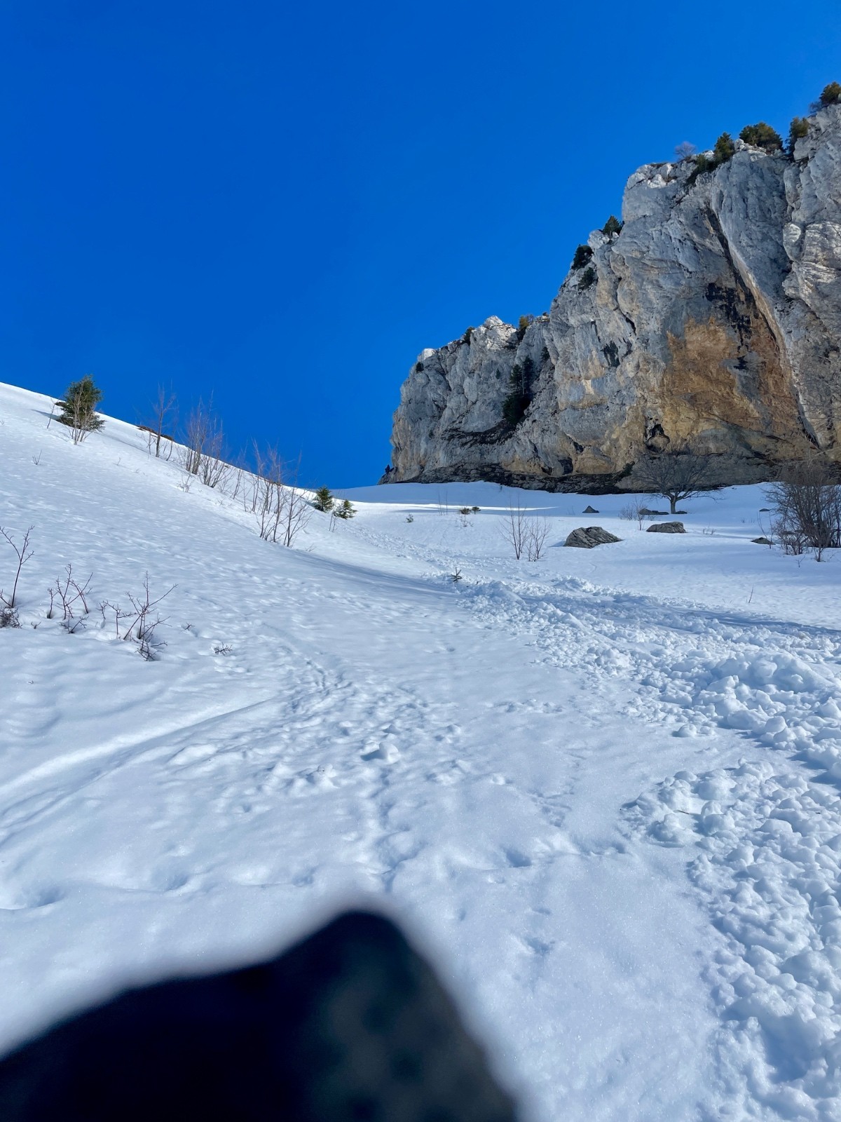 La météo n'était point optimiste hier soir avec une couverture nuageuse bien présente entre 1400m et 2000m la sortie dans un autre massif est abandonné et me rabat sur la chartreuse sur de l'itinéraire bien connu. Peu de voiture au départ sa devient rare à la Ruchère le weekend. J'attaque la monté derrière un skieur qui est une centaine de mètre devant moi, la neige est dur mais accroche bien, à la sortie de la forêt la neige est vraiment dur et les peau n'accroche plus bien on met les couteaux. Je rattrape le skieur devant moi qui part sur le même itinéraire, on se suit plus ou moins jusque dans la monté du grand Som, bien gelé les couteaux font leur boulot. La face est au soleil reste dur mais il y a de bonne trace, on finira la montée ensemble jusqu'à la croix, un skieur descend et la neige est très bruyante il faudra être vigilant. Petite pause au soleil, la descente se passe bien c'est dur mais sa grip bien finalement, j'avais prévu de remonté direct depuis Bovinant mais le compagnon du jour lui continu la descente en direction du pas du loup, je décide donc de le suivre pour le reste de la sortie, une première pour moi de passé par le pas du loup. On remonte jusqu'au col de Léchaud la neige reste dur même au soleil mais doit être bien molle plus tard dans la journée, méfiance tout de même dans les pentes herbeuse, des coulé sont présente jusqu'à l'herbe ! On a évoqué la possible descente du couloir Ouest du petit Som, mais au vu des condition décrites hier et qu'il n'avait pas encore vu le soleil on finit de descendre jusqu'à la Ruchère par l'itinéraire classique.