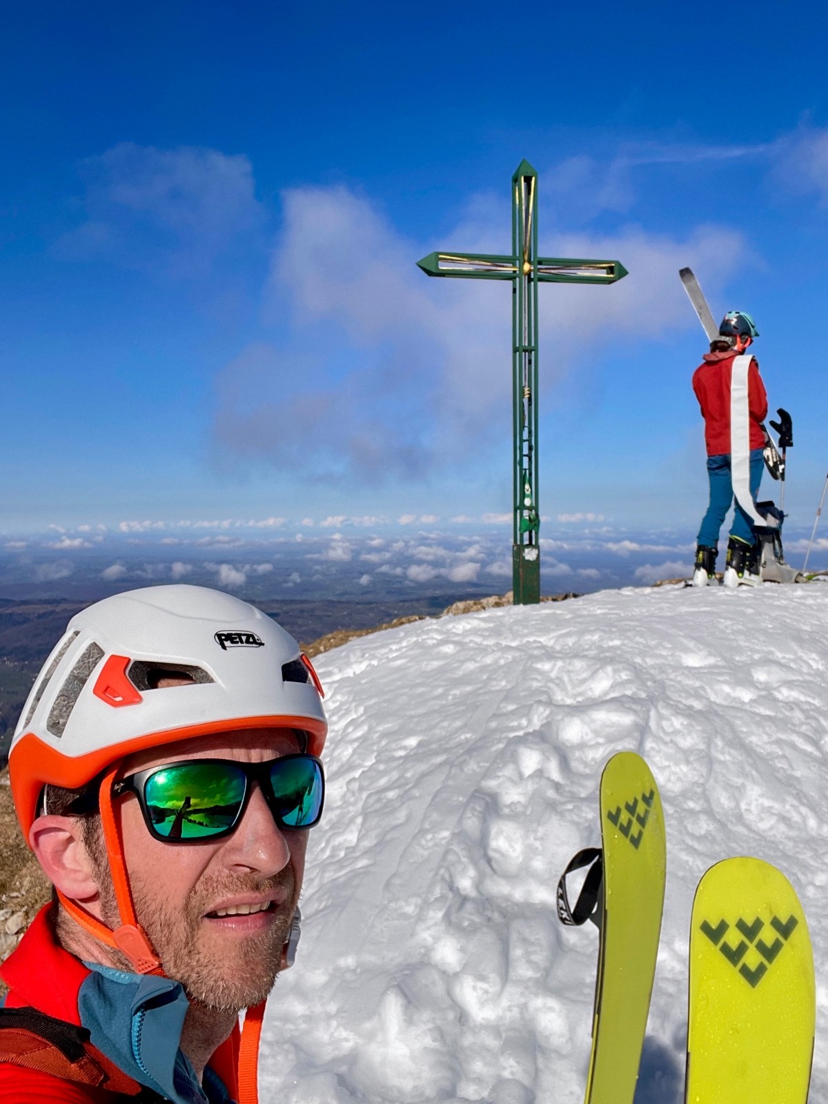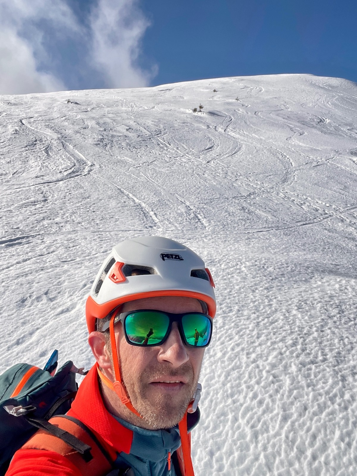 Conditions pour le ski : grosse couche de neige bien dur de partout qui ne se sera pas réchauffé même au soleil, couteaux bien utiles sur quasi toute la montée