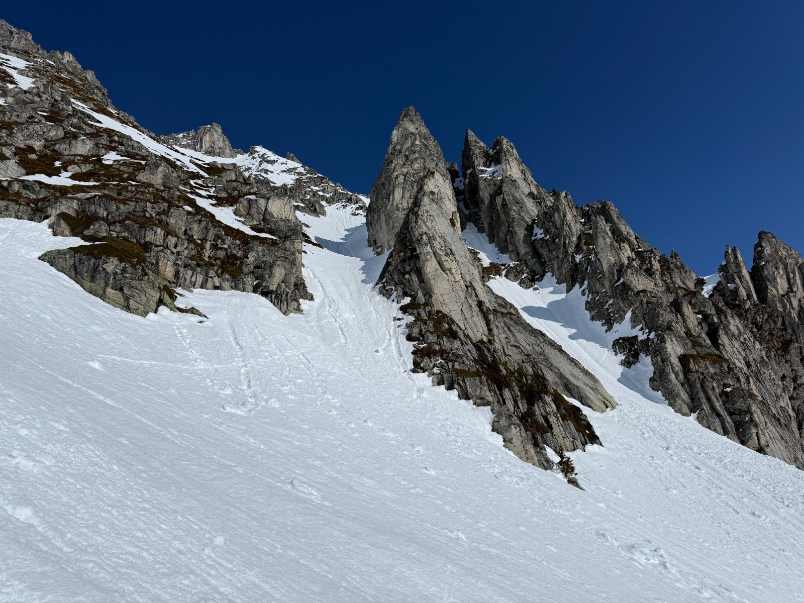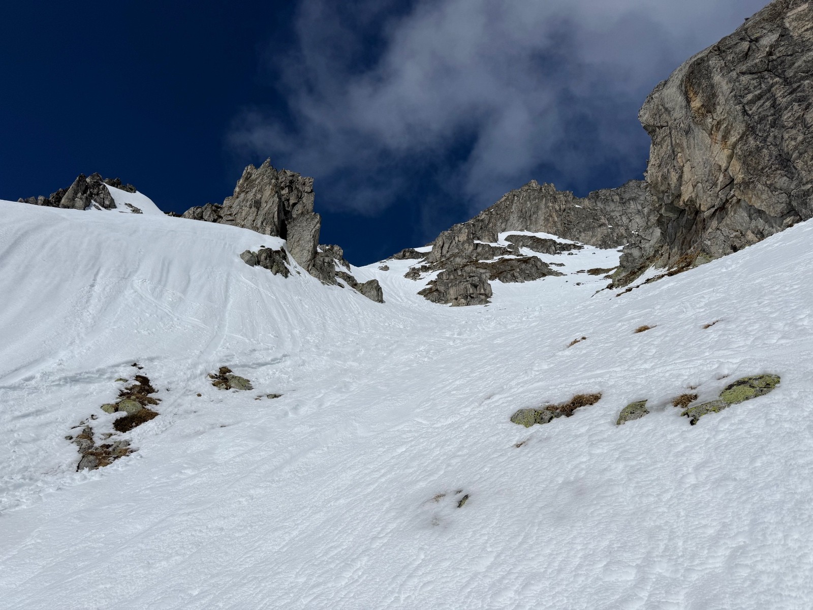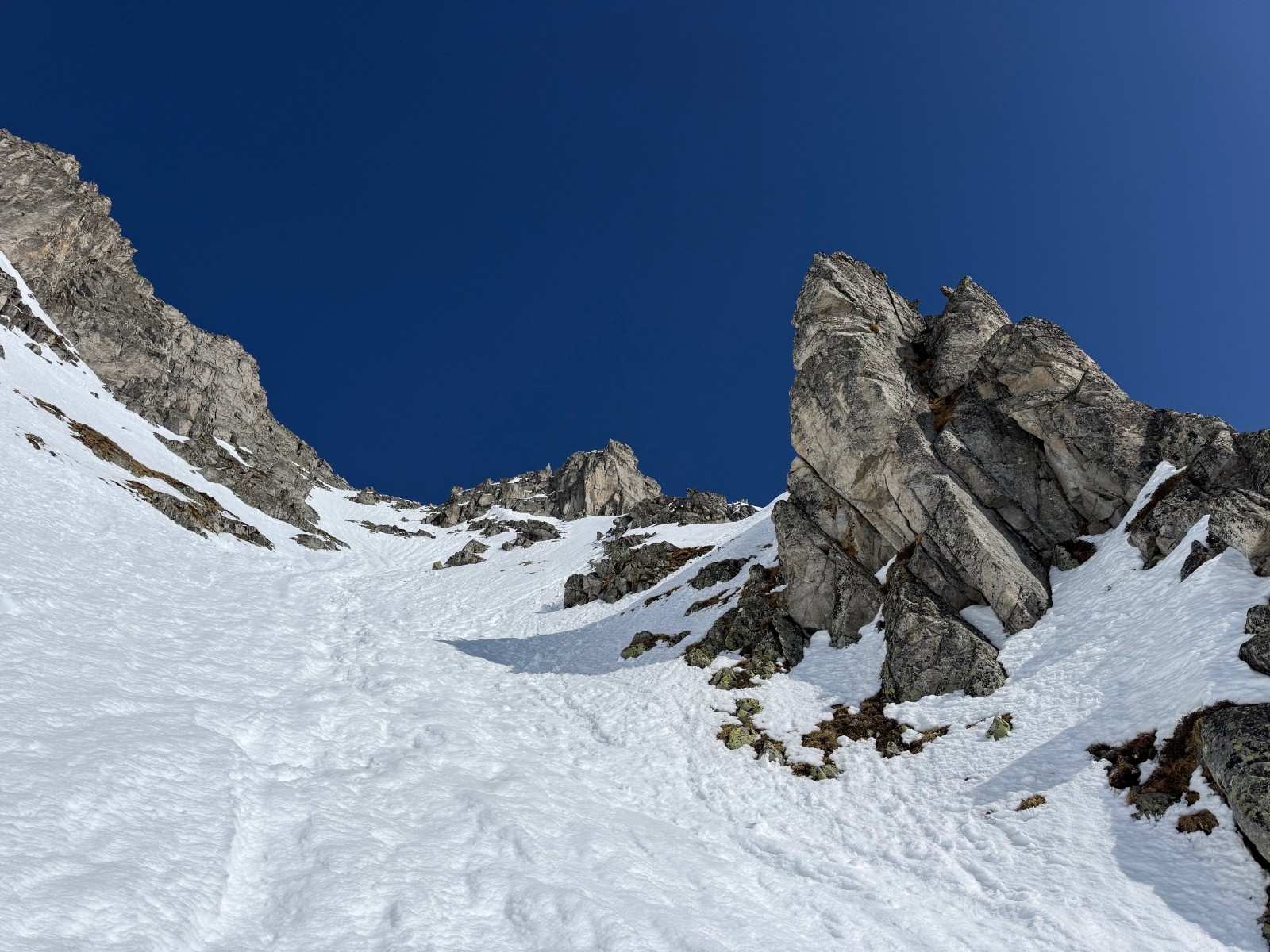 Belle ambiance entre les rochers et ça sort au plus haut actuellement. Crampons pour l intégralité du couloir et piolet pour le final.
