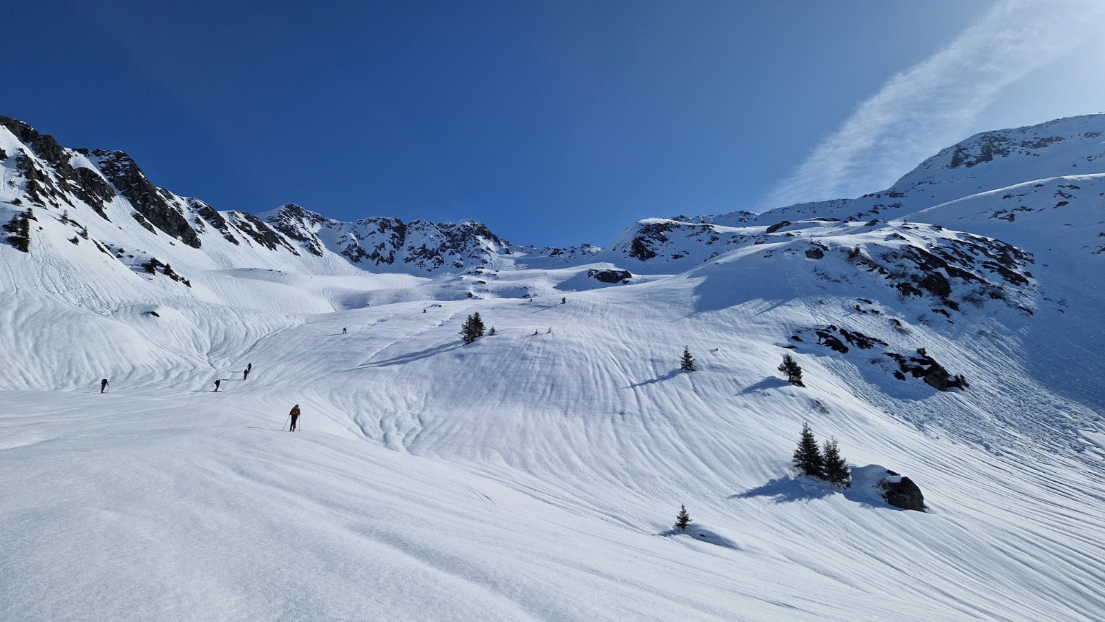 Conditions pour le ski : bonnes en haut en cherchant la poudre tassée. neige pourrie en profondeur après la venetier, on est resté prudemment sur la piste forestière après un test non concluant... le chemin passe bien, mais il faut se méfier (pas de croutage fin de journée)