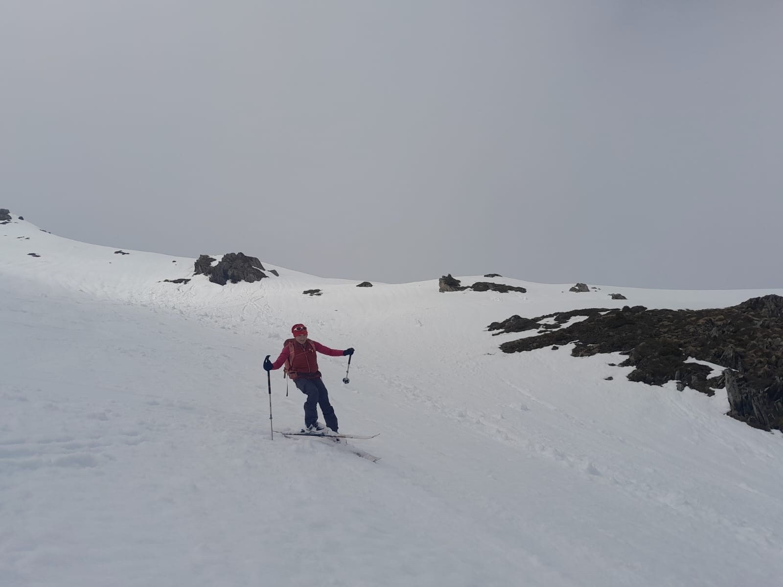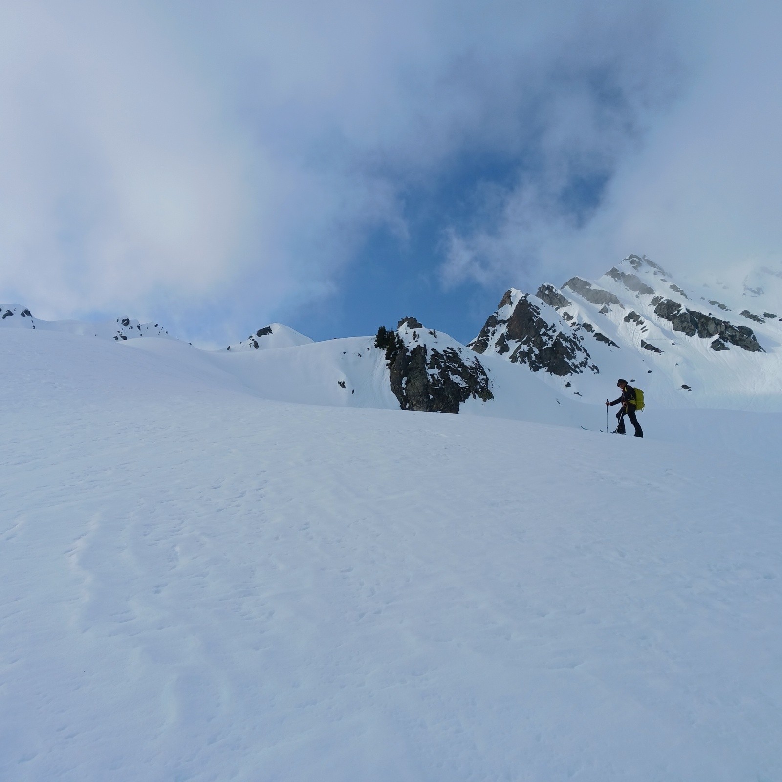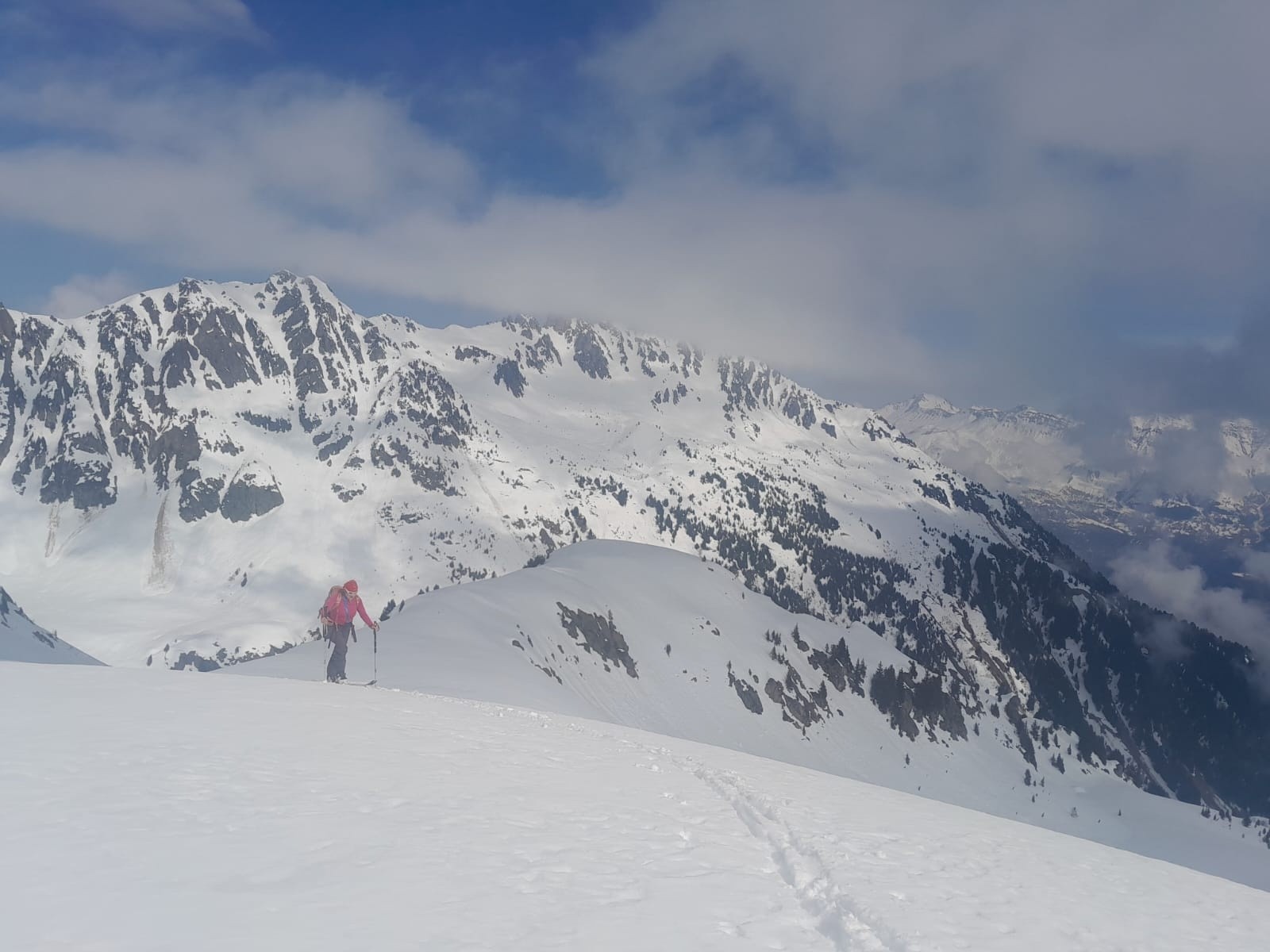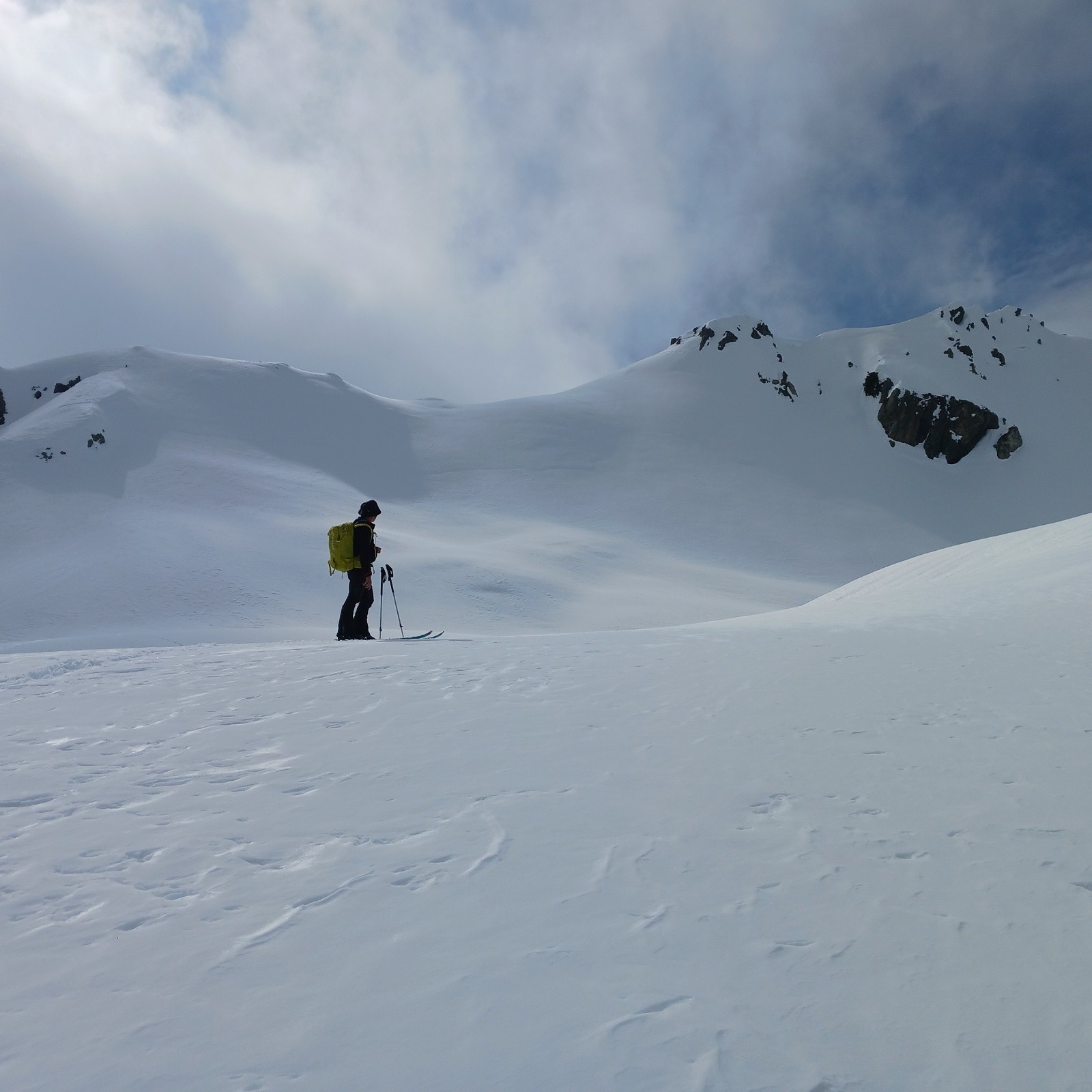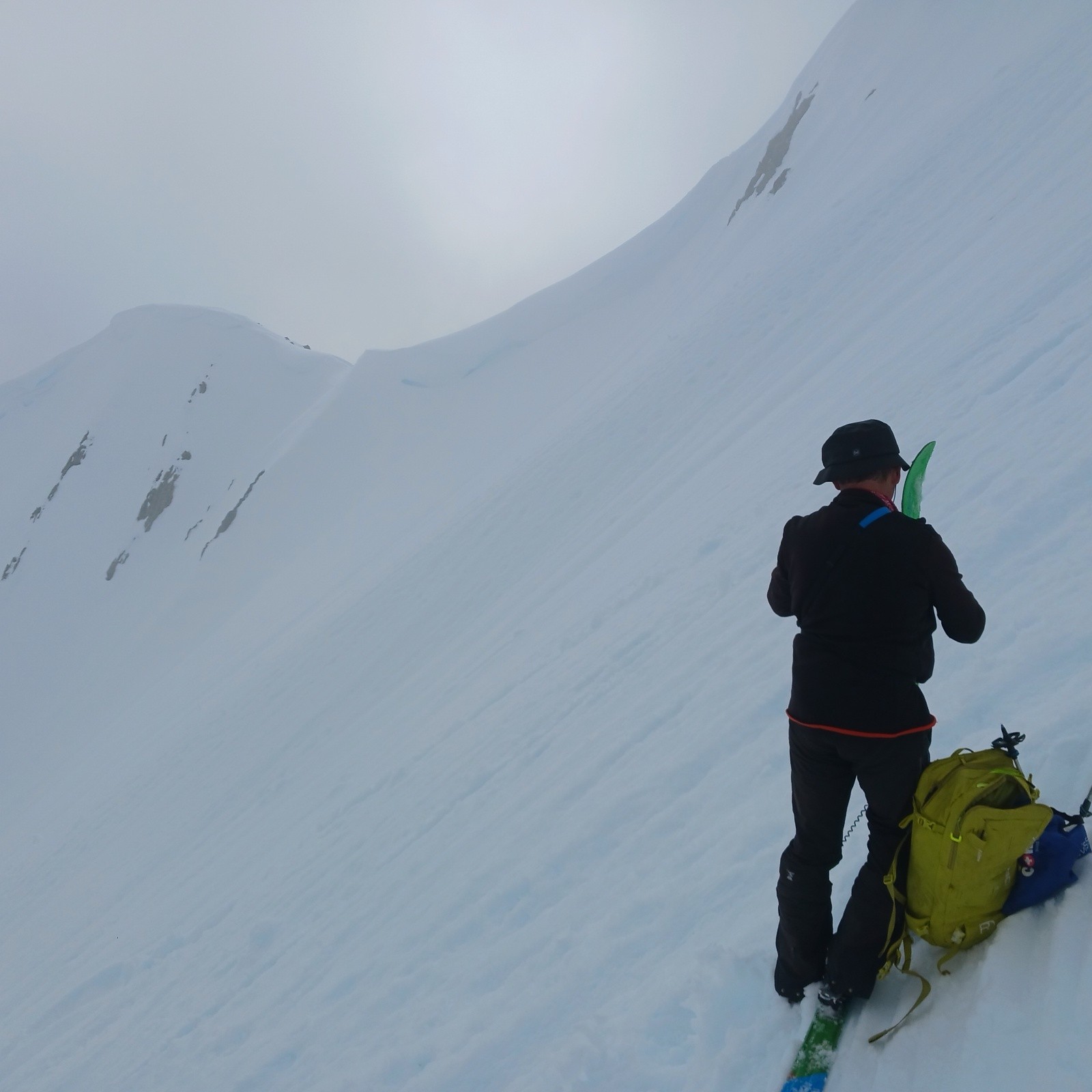 Conditions nivo et activité avalancheuse : Nous nous arrêtons 50m sous le sommet:Corniche monstrueuse à gauche et possible plaque à vent sur l'arête de droite. Sinon, rien vu bouger. Ca n'a pas beaucoup purgé dans le secteur.