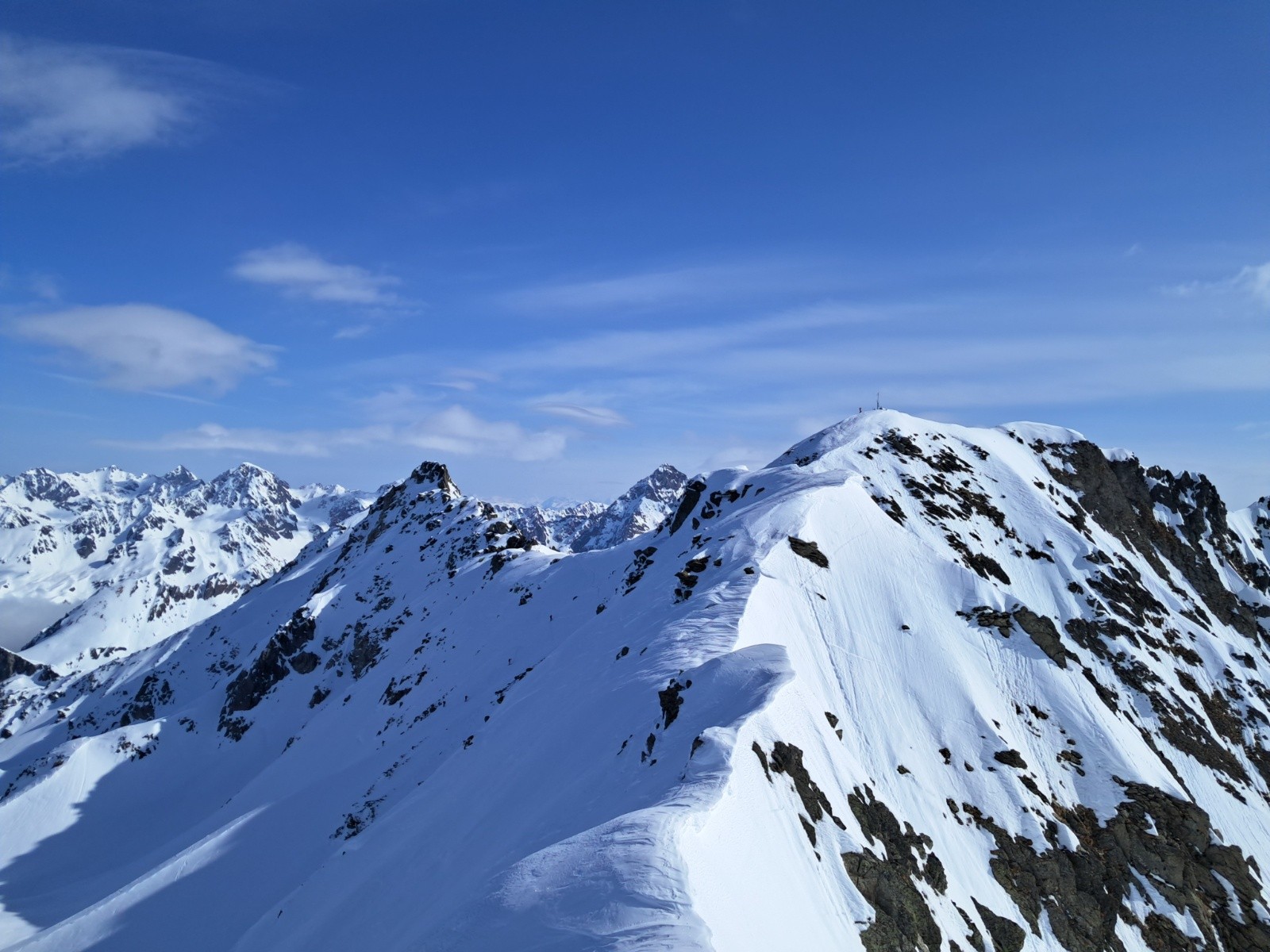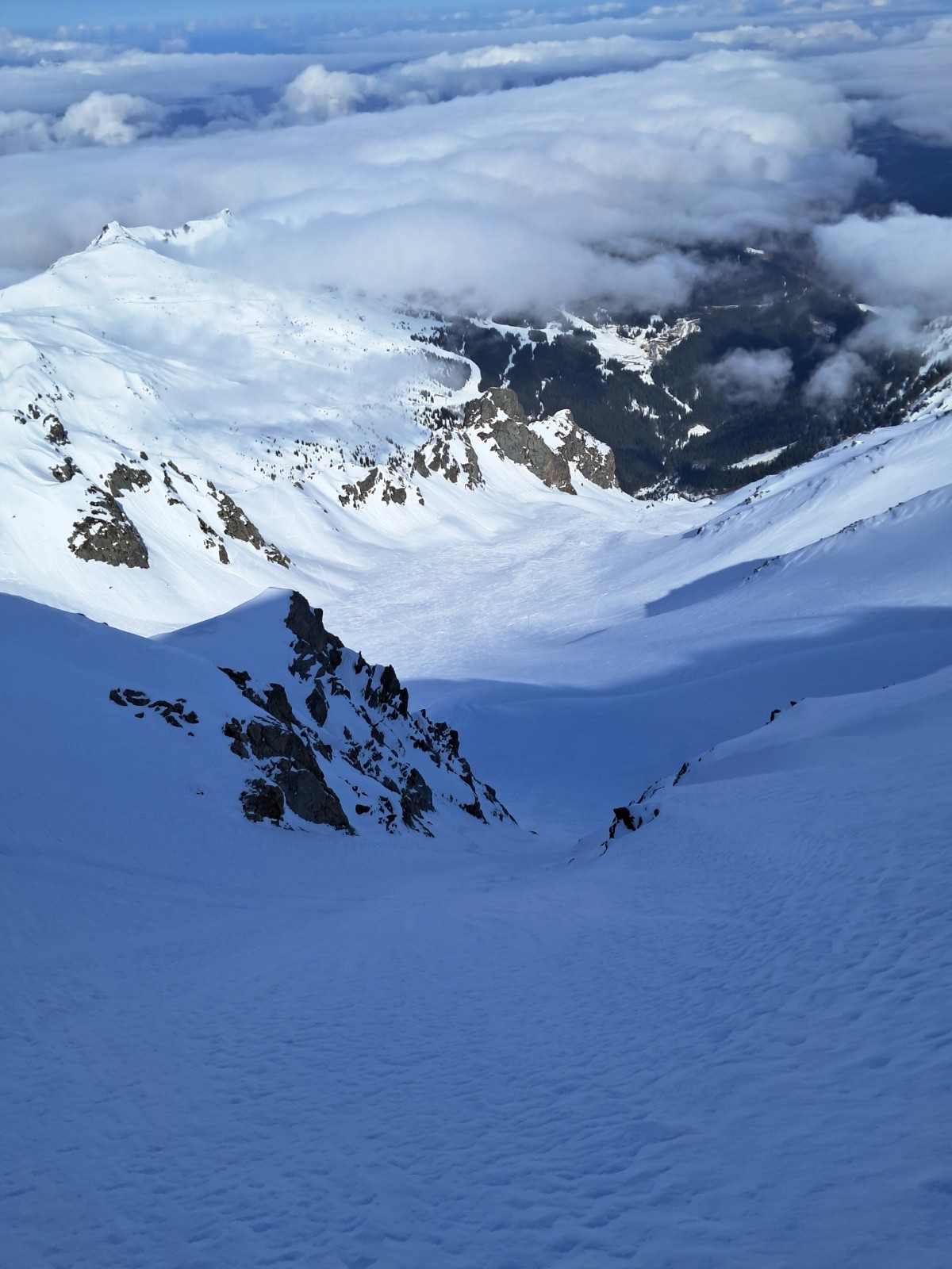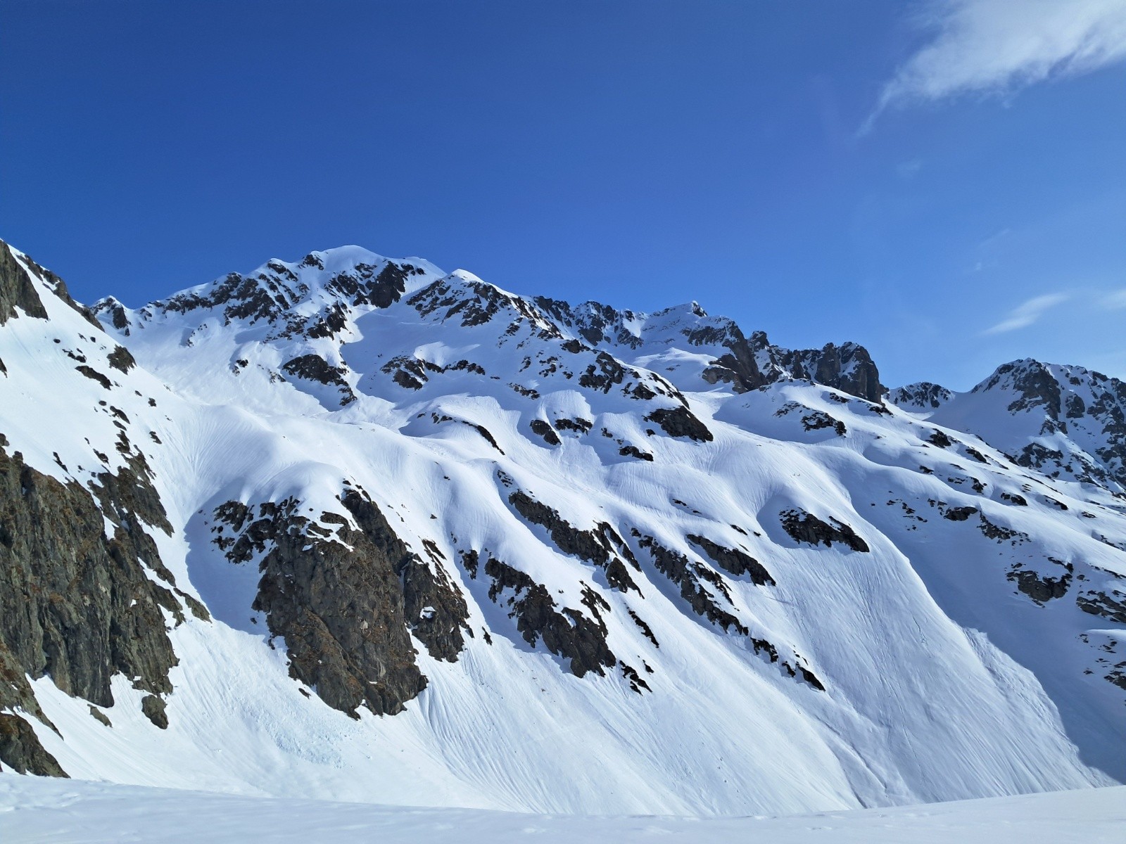 Conditions nivo et activité avalancheuse : seulement du sluff dans le couloir N, et des grosses cassures bien visibles dans les faces SE à SW. Toute la face W des illettes est partie et laisse beaucoup de rochers apparents.