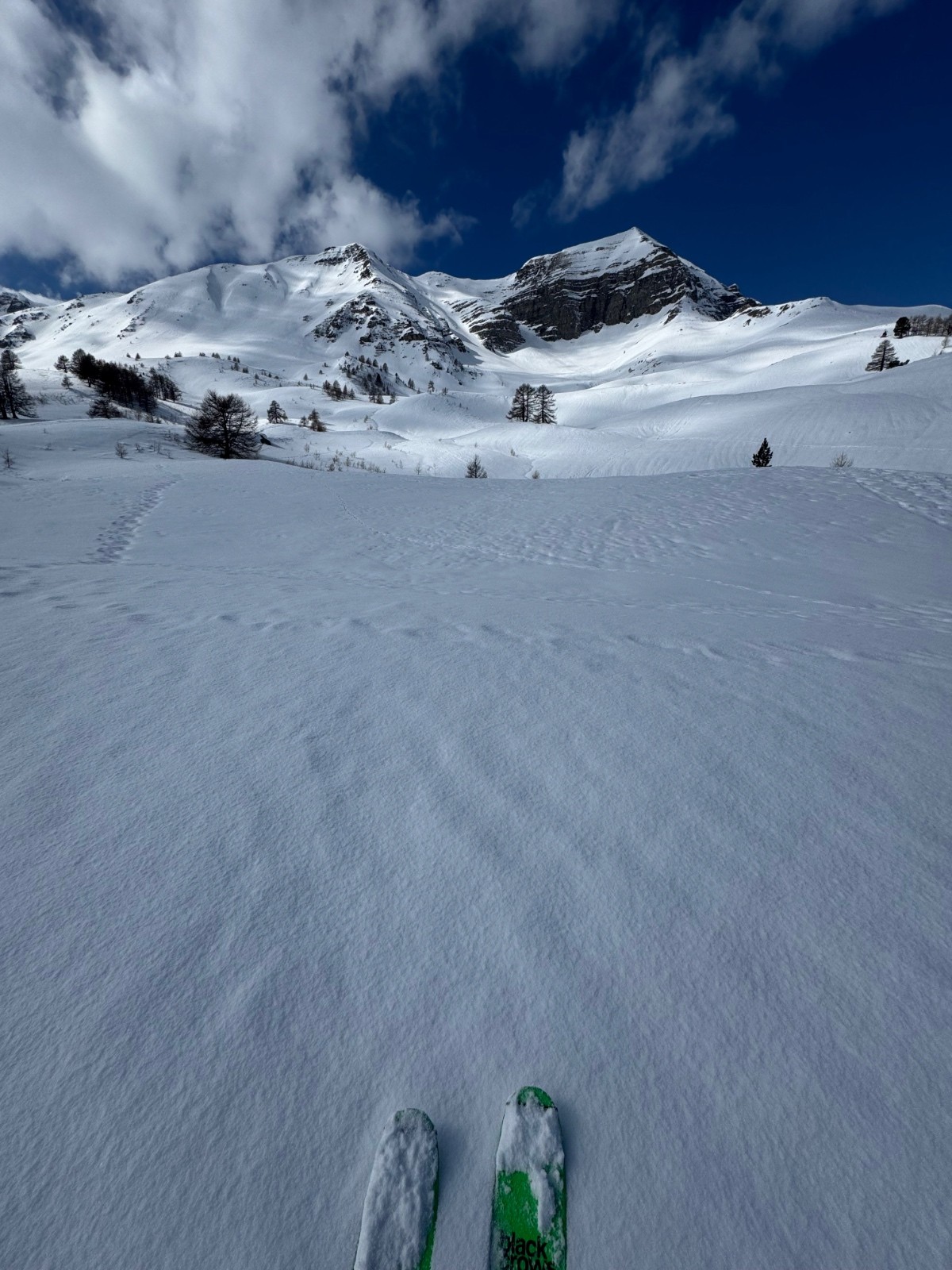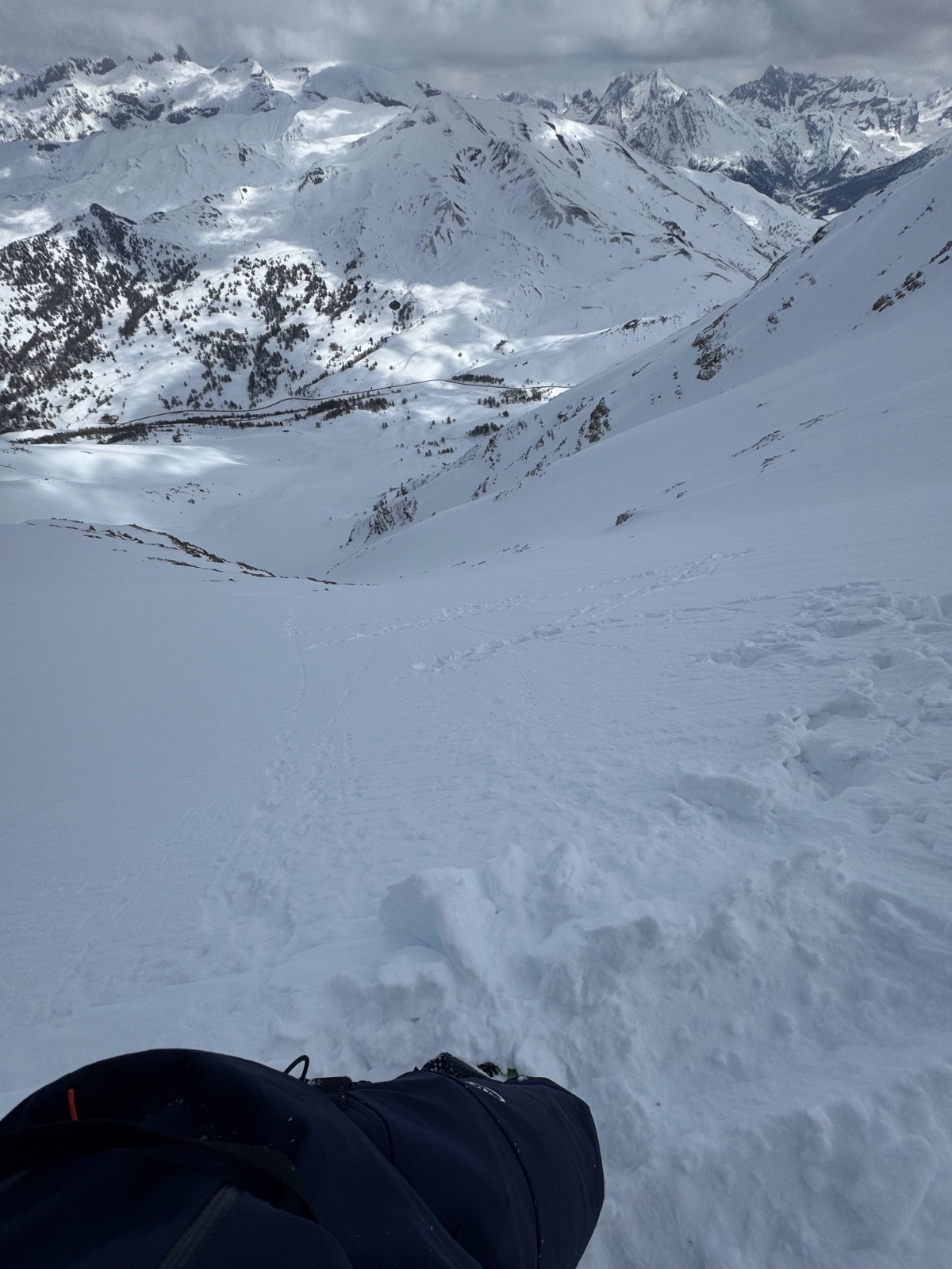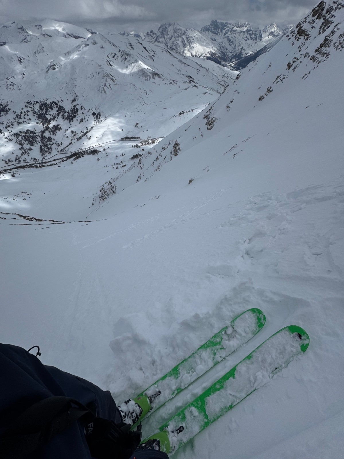 Conditions pour le ski : super neige pour la descente, plus compliqué pour monter tout droit dans le couloir