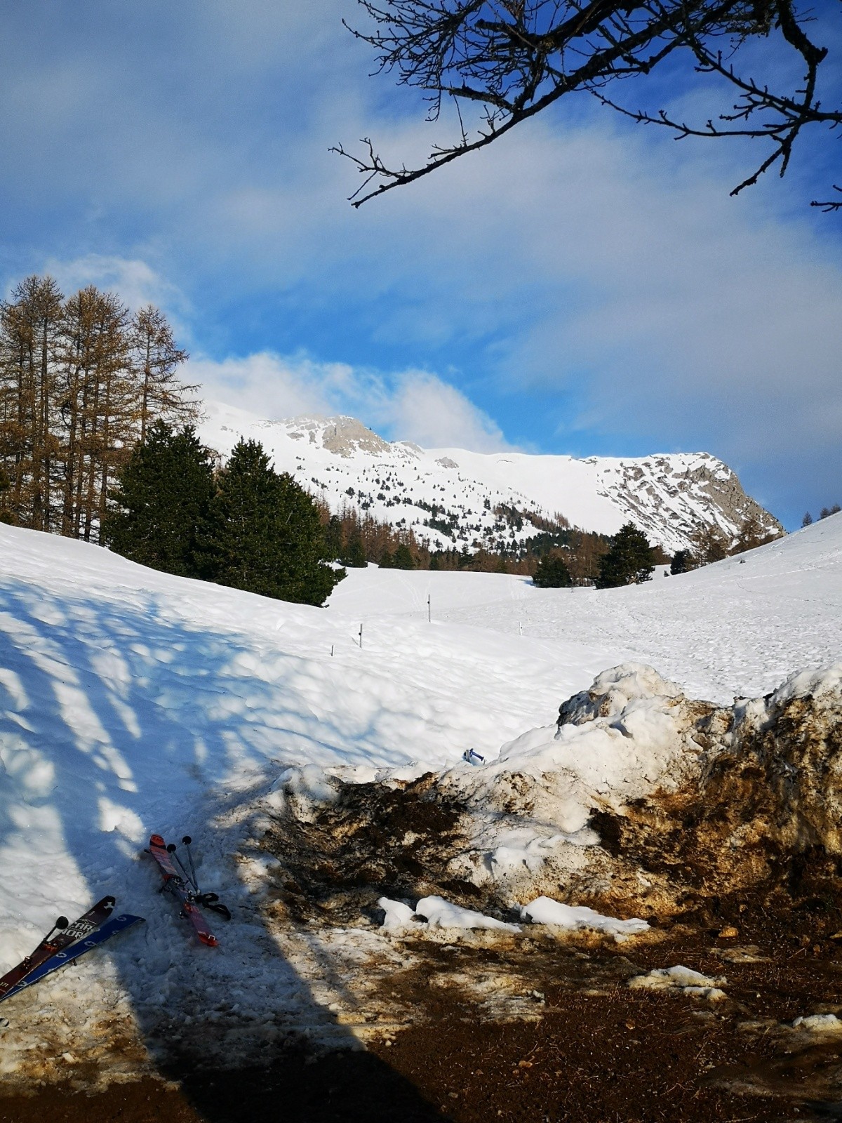 Conditions pour le ski : petit regel matinal puis chauffant progressivement, neige à poils courts couloir/combe de l'avalanche au dessus Laye, de +en+ mou sous 1800 dès 9h45! Bonne moquette pente Moutty et lourde en forêt très bon dans le champ retour cerisier en dehors des traces raquettes piétons skieurs😂