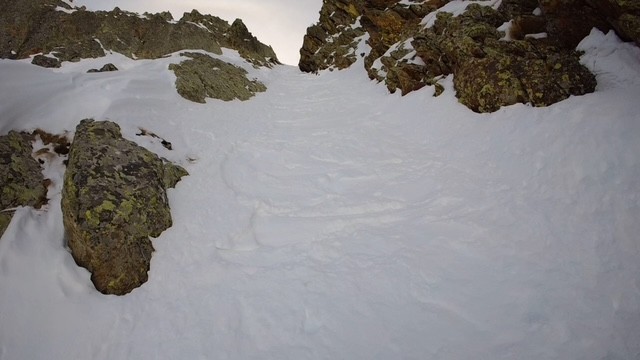 Conditions pour le ski : La neige est vite transfo, ça monte sans problème jusqu'au pied du couloir.