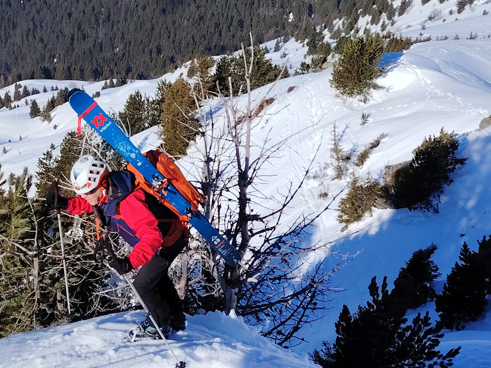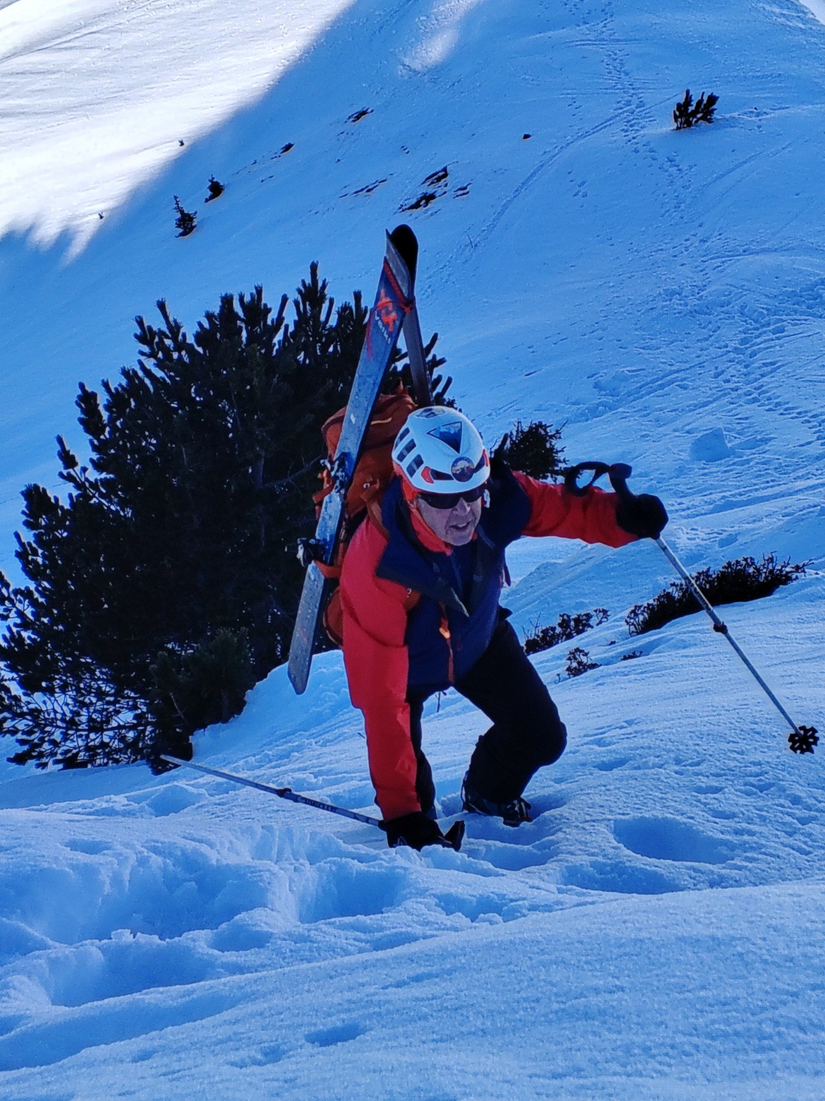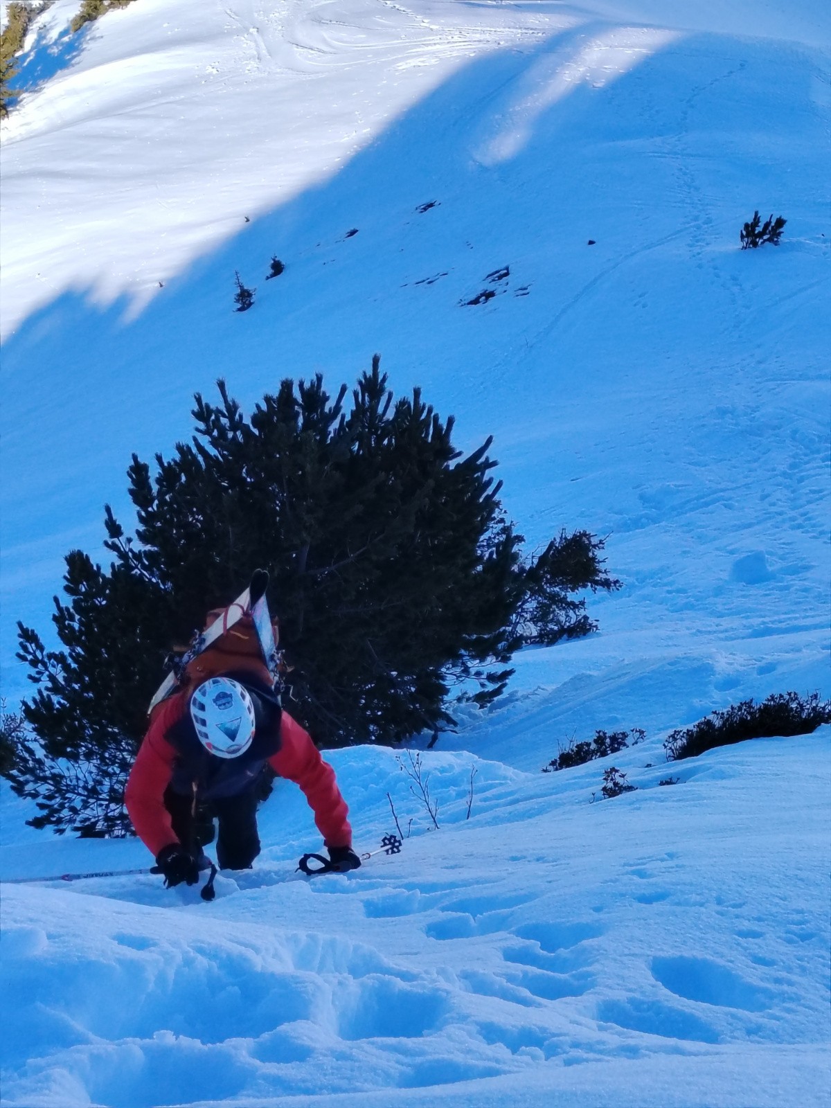Itinéraire suivi : super collet, col de claran, déchaussage pour remontée sur l'arête sommitale,petit charnier, Descente par couloir nord-ouest raide étroiture 40, puis remontée col de claran, chemin des crêtes, Descente par la piste.