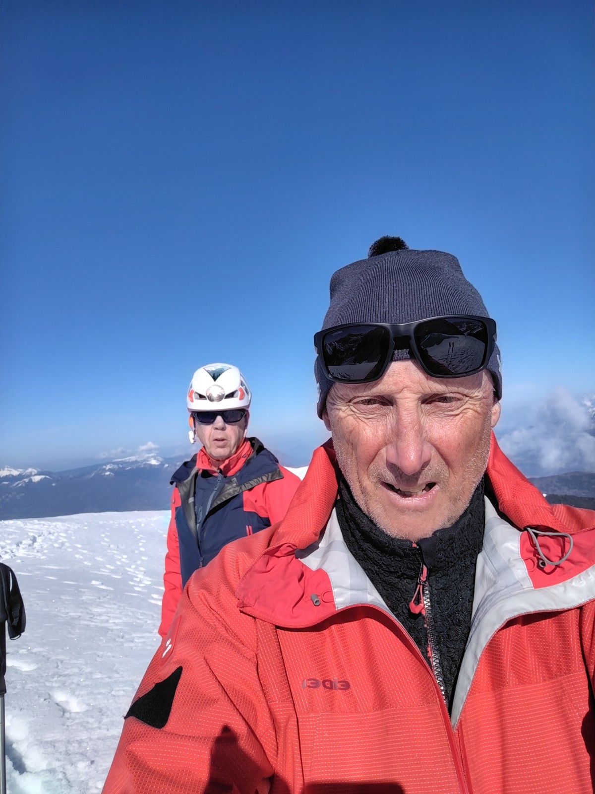 Conditions pour le ski : regel jusqu'au sommet. Descente en neige croutée dans le couloir, puis neige decaillée sur remontée au col, neige dure sur piste