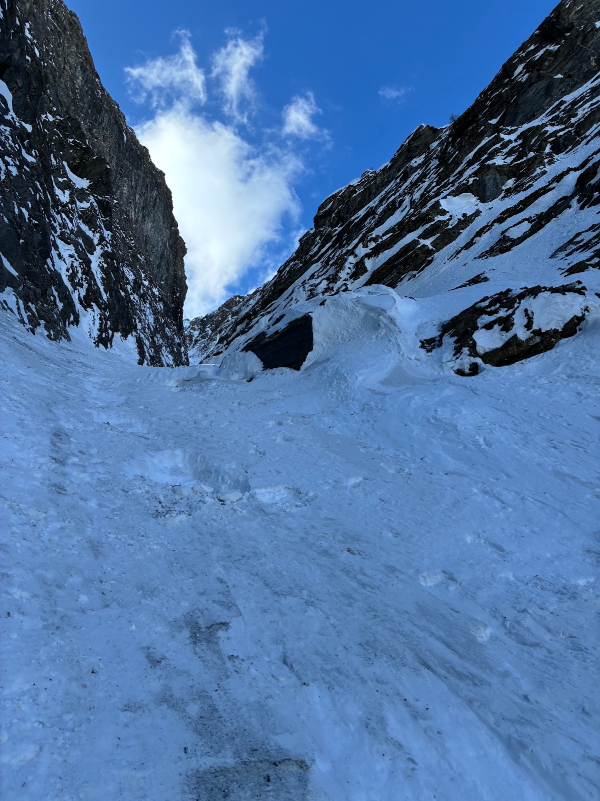 Le toboggan final est mystique,en neige béton ce jour avec des passages commençant à s en glacer également .(2 passages précédents et coulées ayant lissé le tout ),le bas et la sortie avec des boules et neige béton mais pas gênantes en allant chercher les côtes ,la sortie étant un peu plus large .retour sur la route jusque à bonneval neige lourde et humide mais ça passe jusque au parking .bonnes grosses coulées sur la route .retour à pied jusque à la bifurcation et retour en stop jusque aux echines ,merci jolie damoiselle toute sympa et charmante .