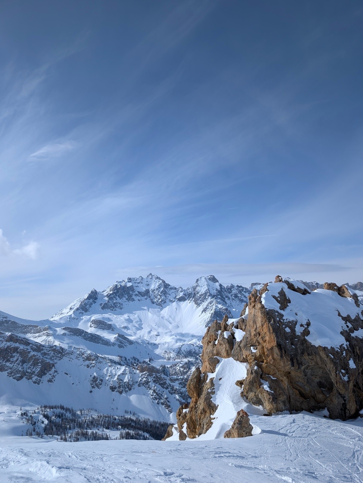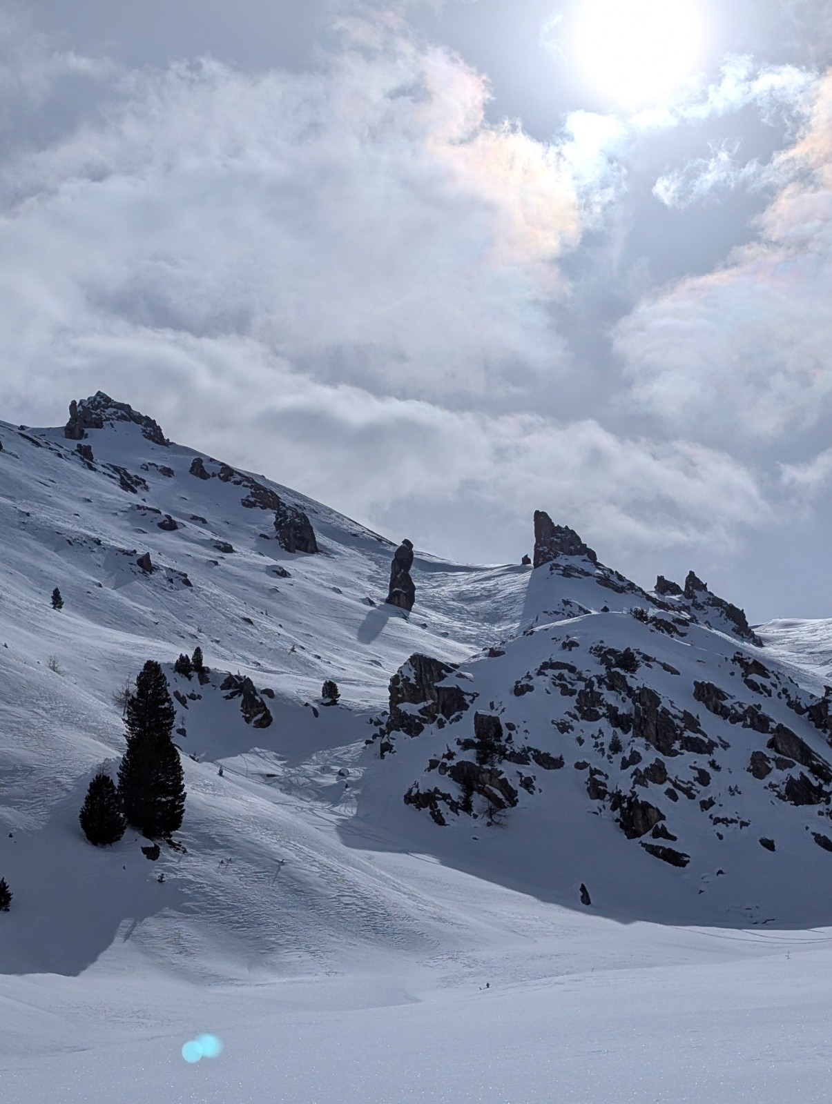 Conditions pour le ski : neige bien gelé mais pas besoin de couteaux pour l'instant,je pensais que ça allait decailler avec le soleil mais rien du tout béton jusqu'en haut .