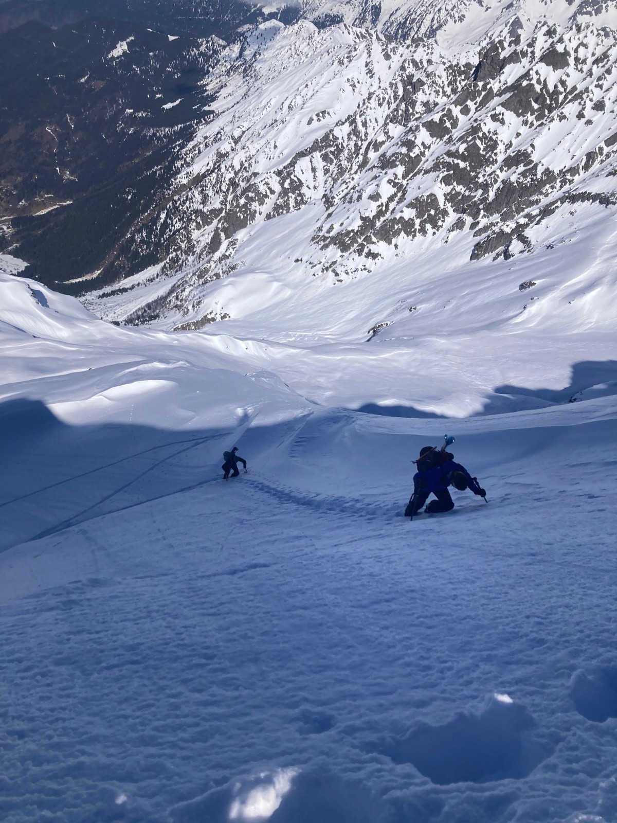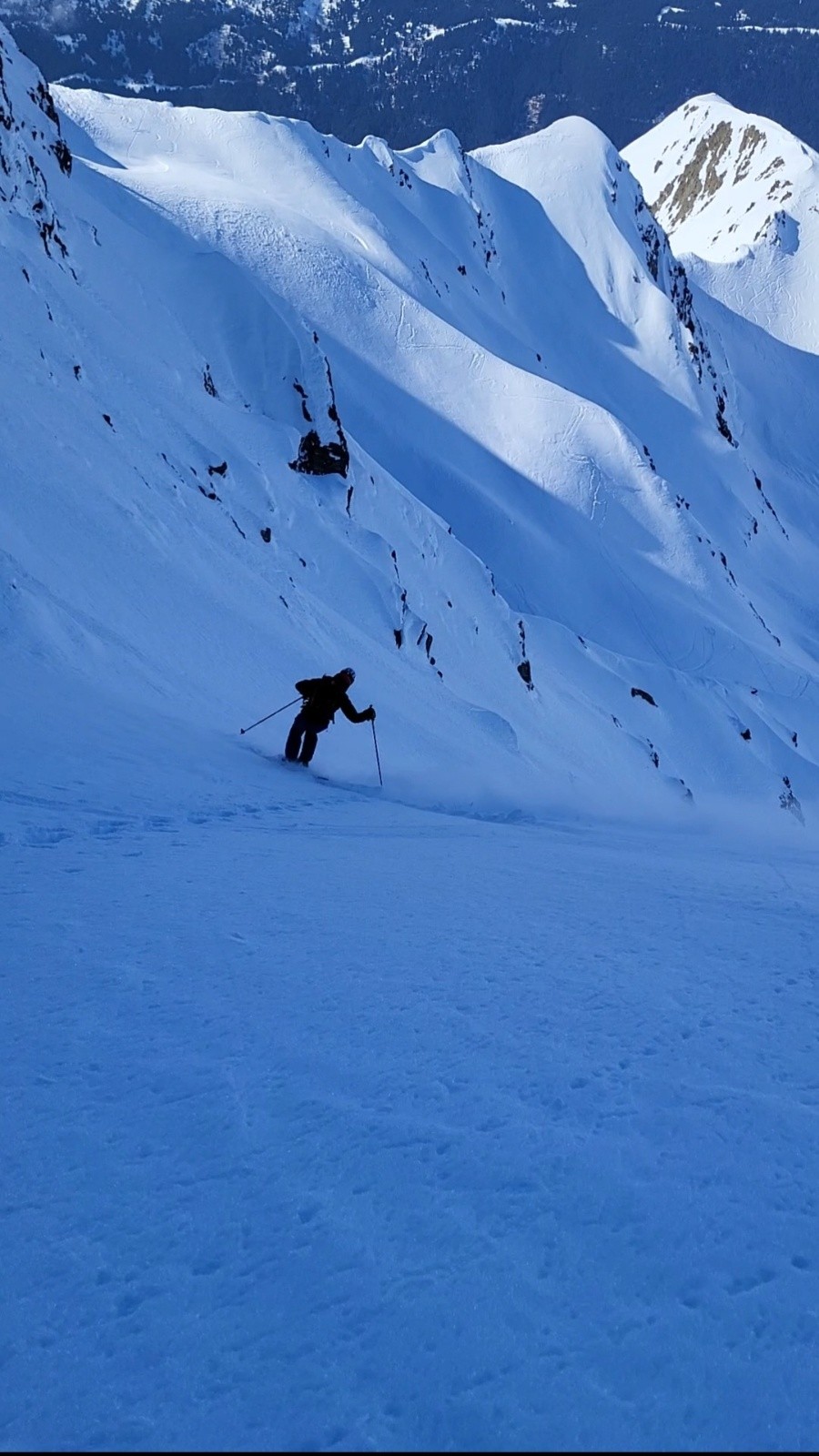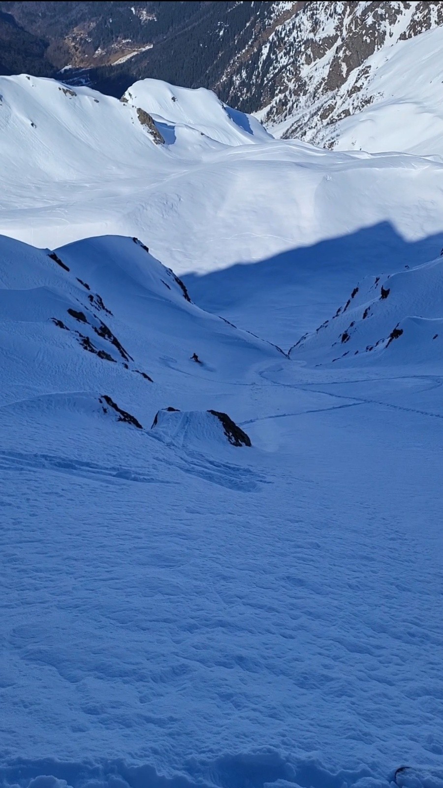 Conditions pour le ski : Neige froide dans le couloir et sur le plateau / croutée & boulettes dans les pentes avant et après le refuge / transfo après la forêt jusqu'au parking