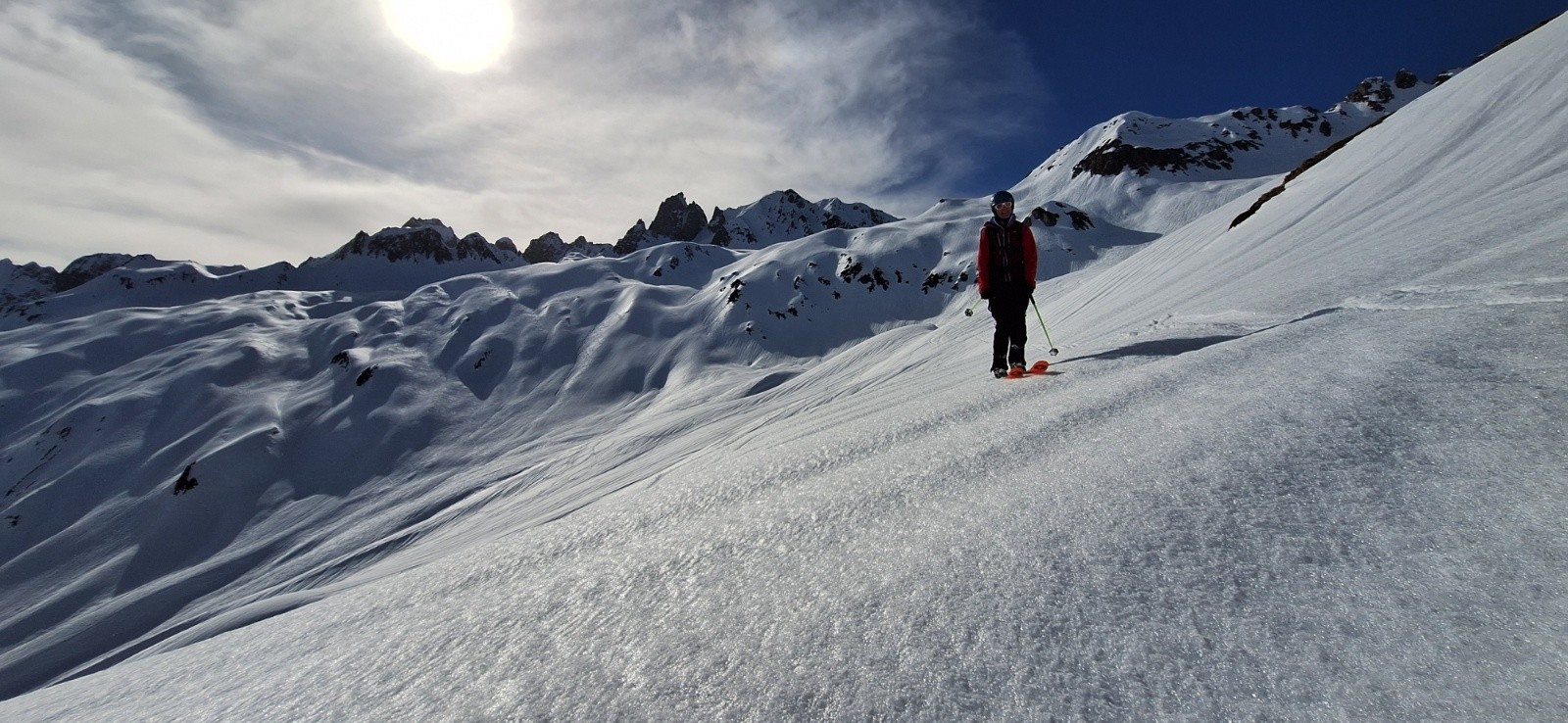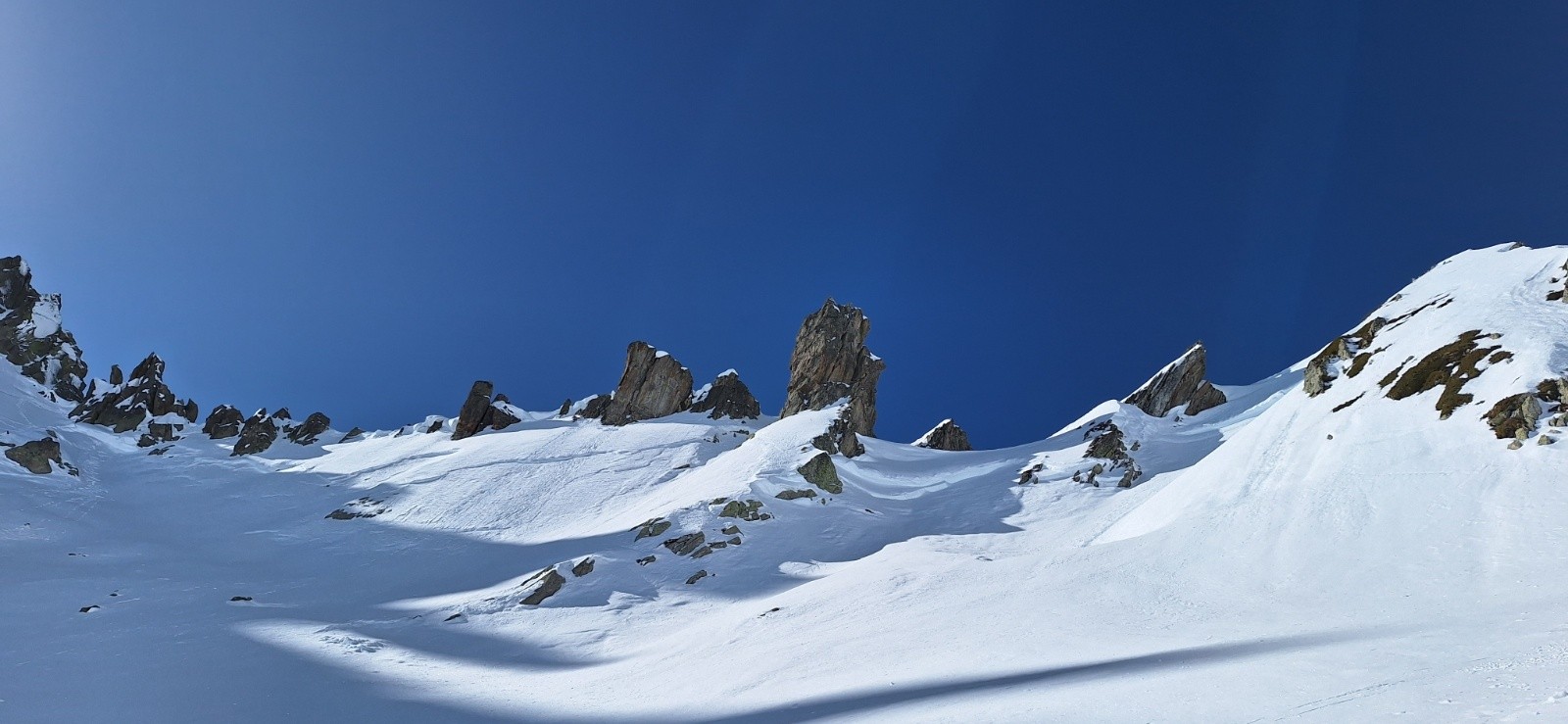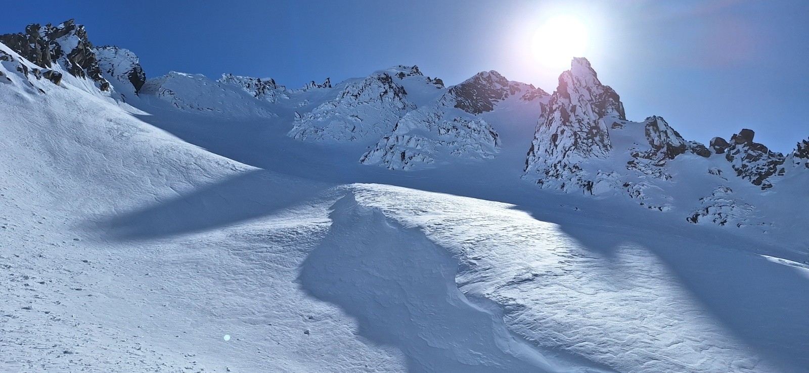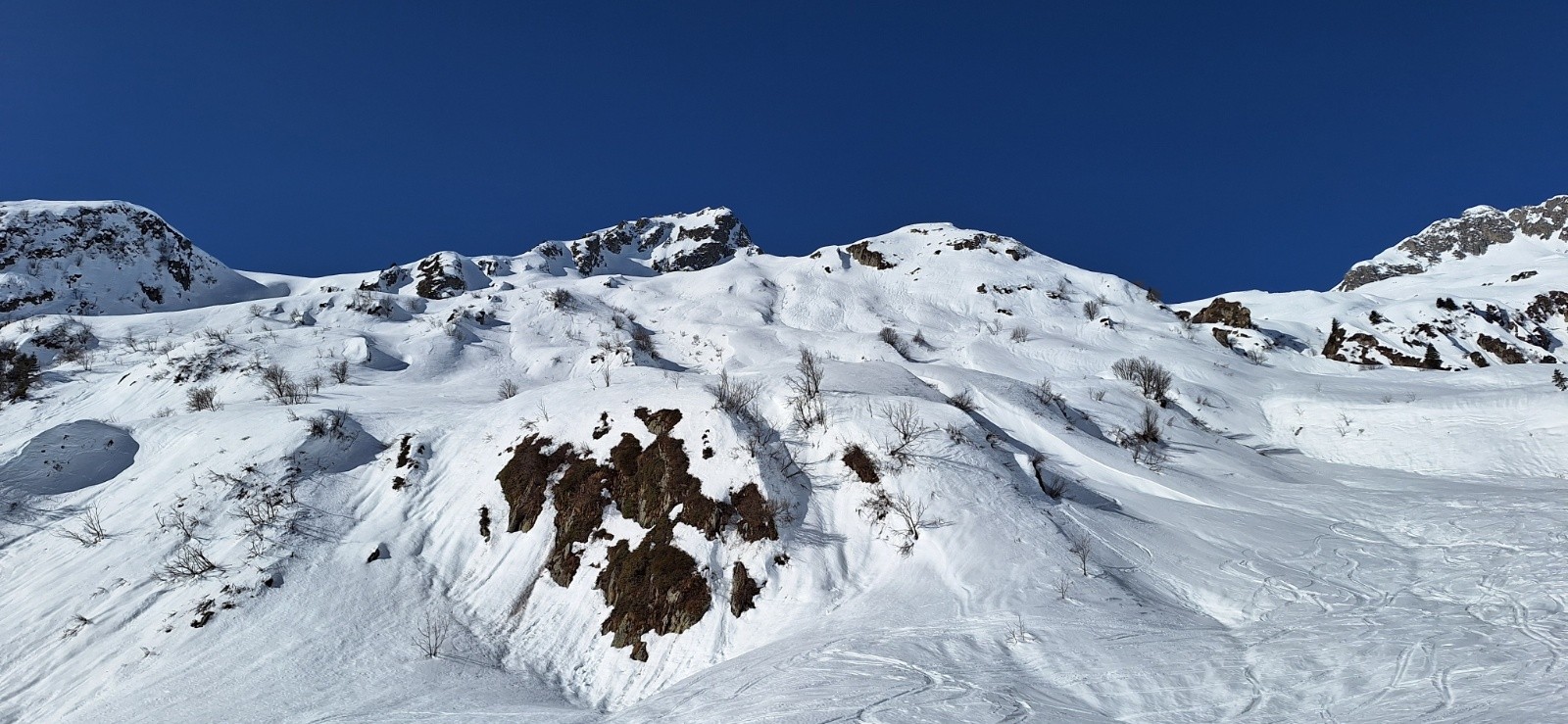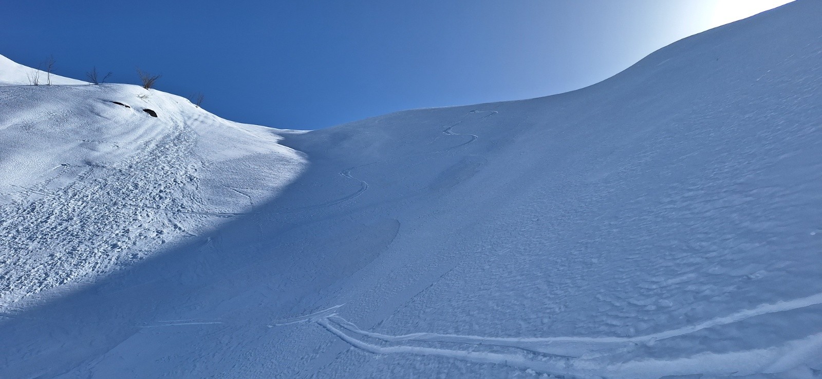 - Descente du Col de St Jacques en neige légèrement cartonnée au sommet puis poudre.