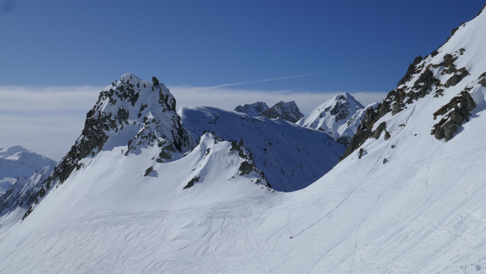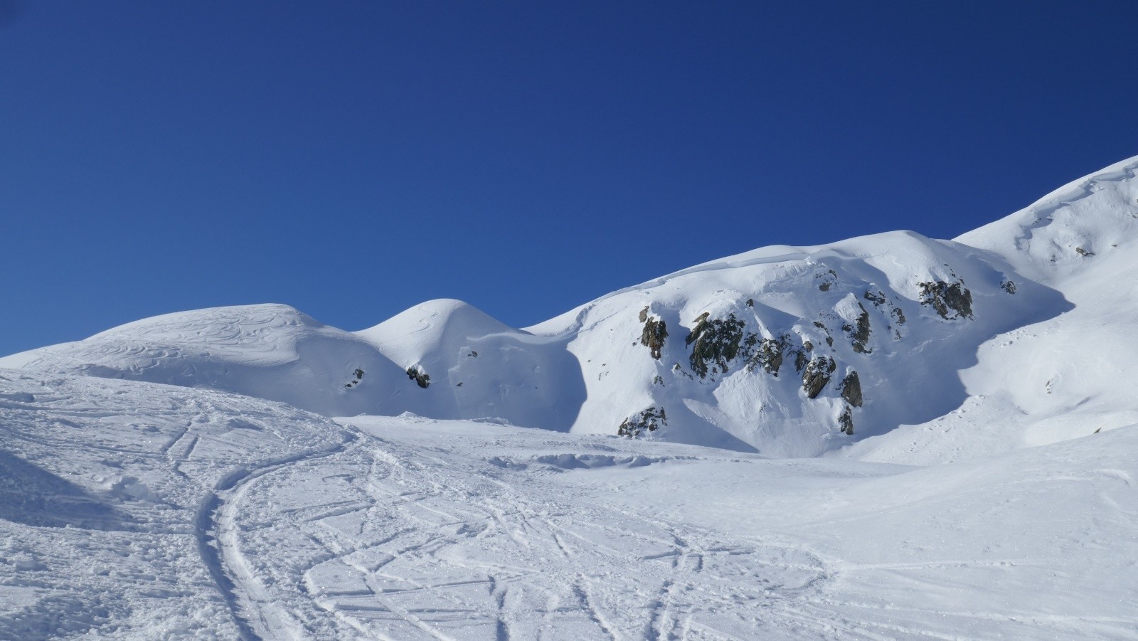 En versant ou contre pente qui ne voit pas du tout le soleil, on trouve des restes de poudreuse (mais rare sur l'itinéraire)