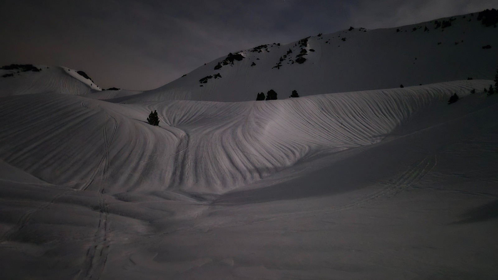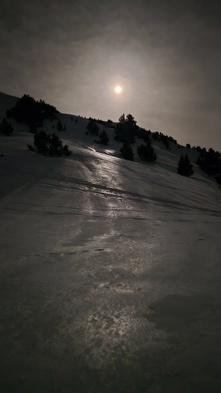 Pas croisé grand monde, etonnament fait du ski plus que correct il reste plein de zone lisse. Une belle soirée.