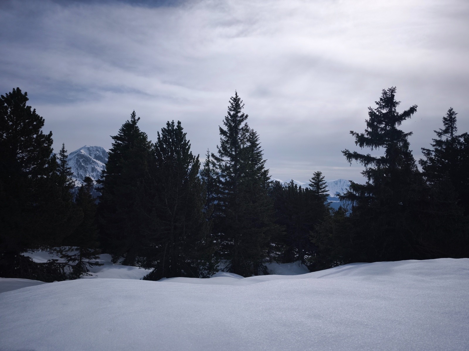 Conditions pour le ski : Plutôt bonne, pas trop ramollie, pas collante, juste un peu dommage le léger jour blanc, pire sur la seconde descente. Les montées n'ont pas zippé sans pour autant dérouler les skis sur des œufs.