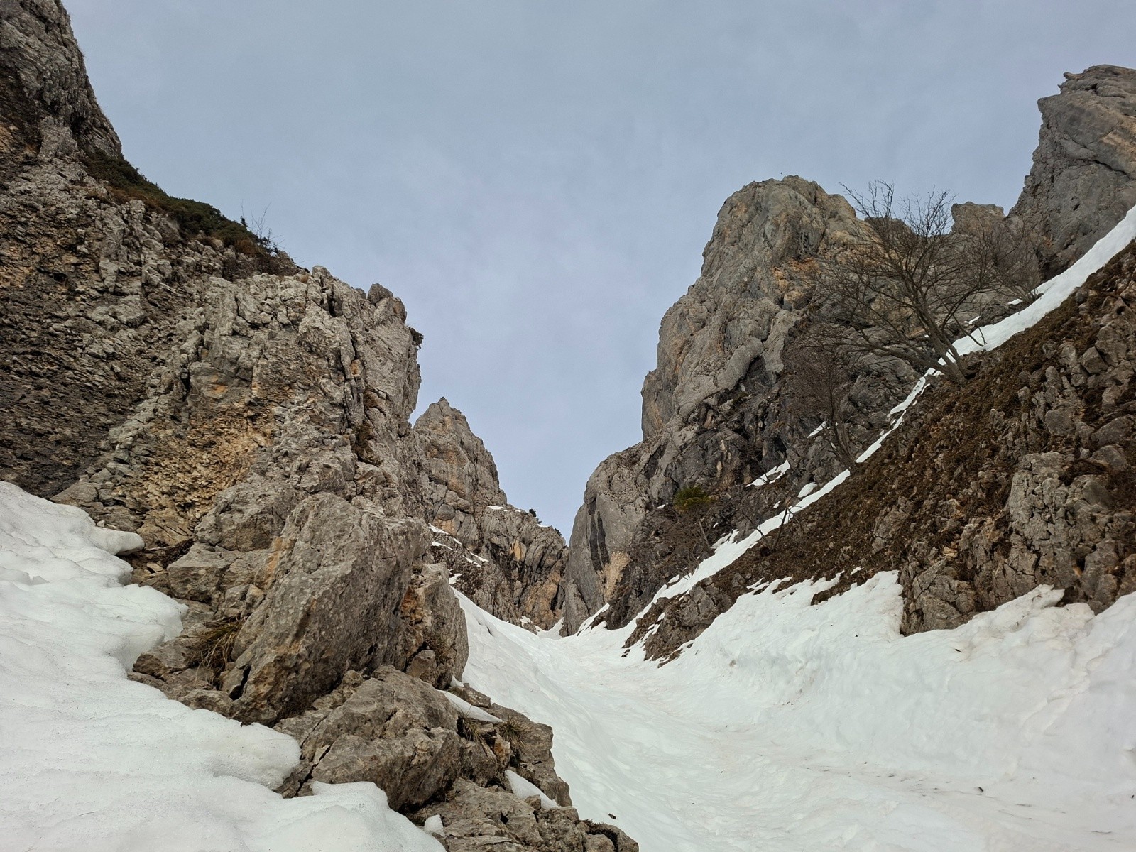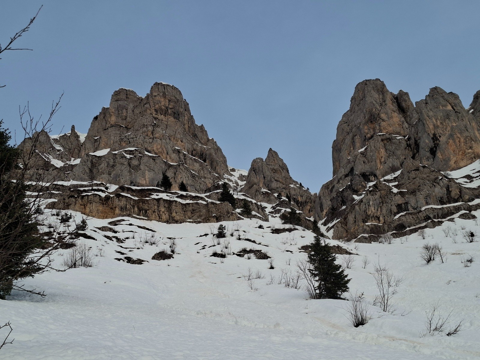 Bref, pas de bonnes conditions pour le ski ; la meilleure zone était la forêt de feuillus (avec les résineux, peu de neige au sol) en neige déjà très souple à 8h30.