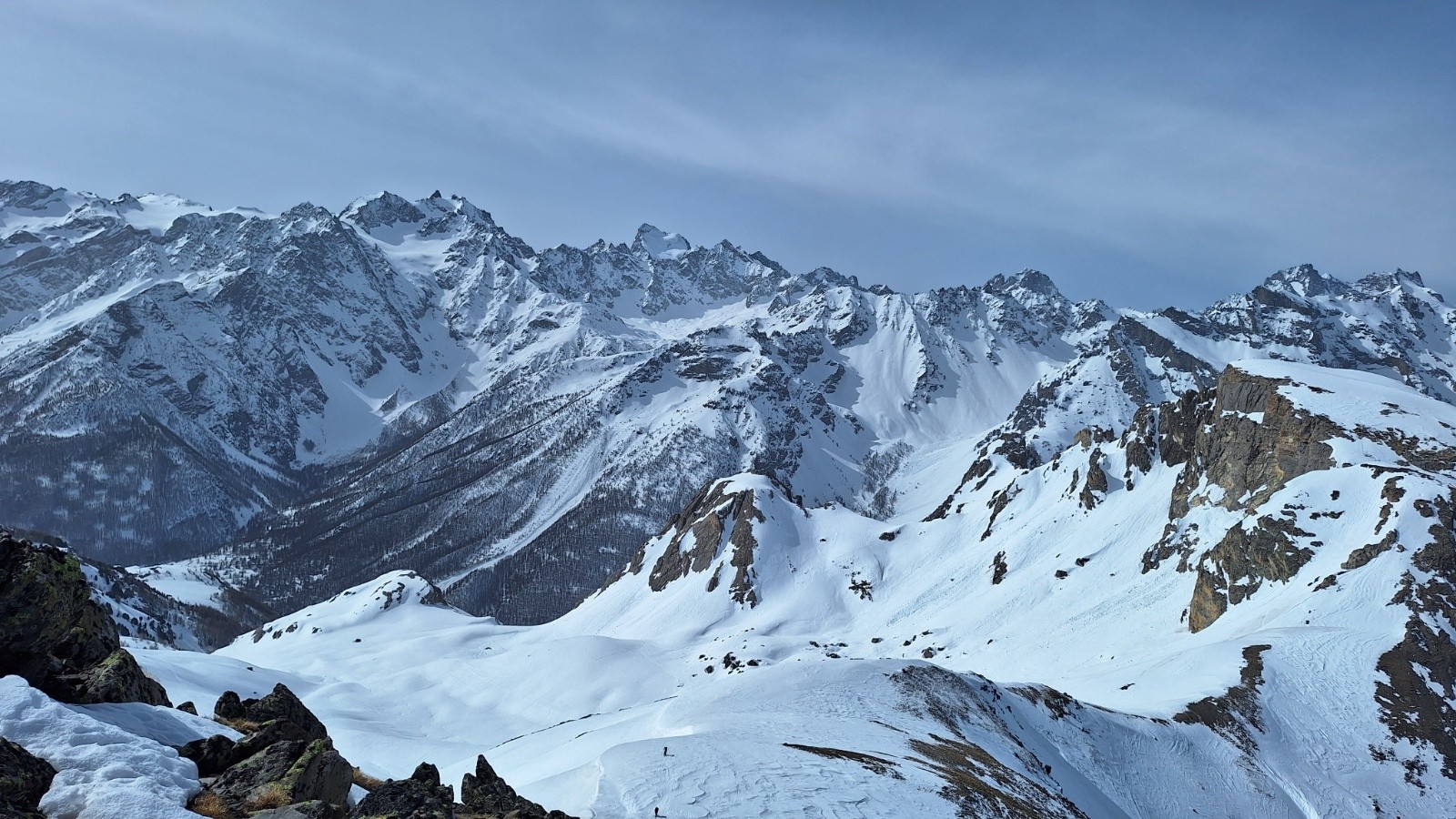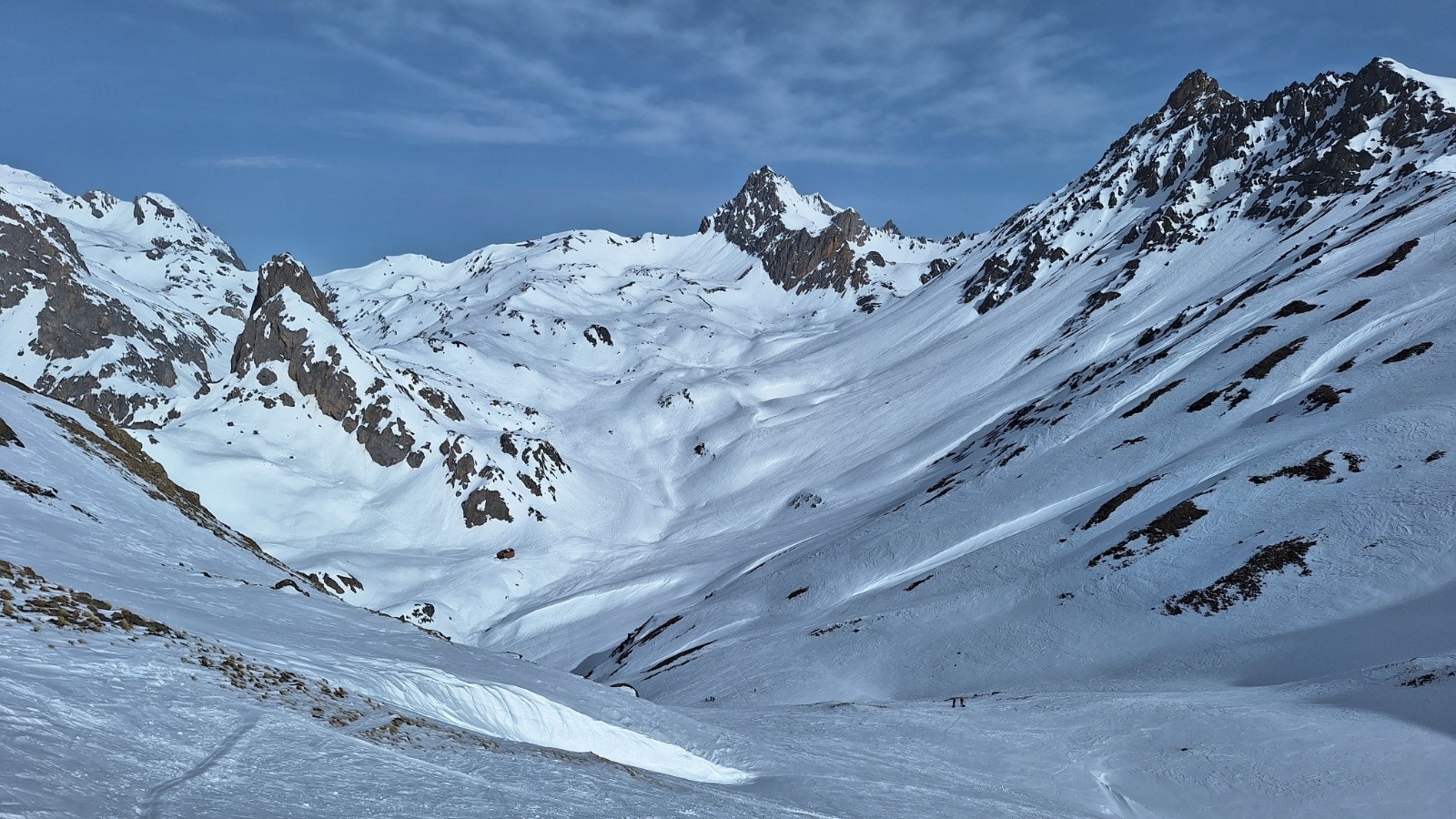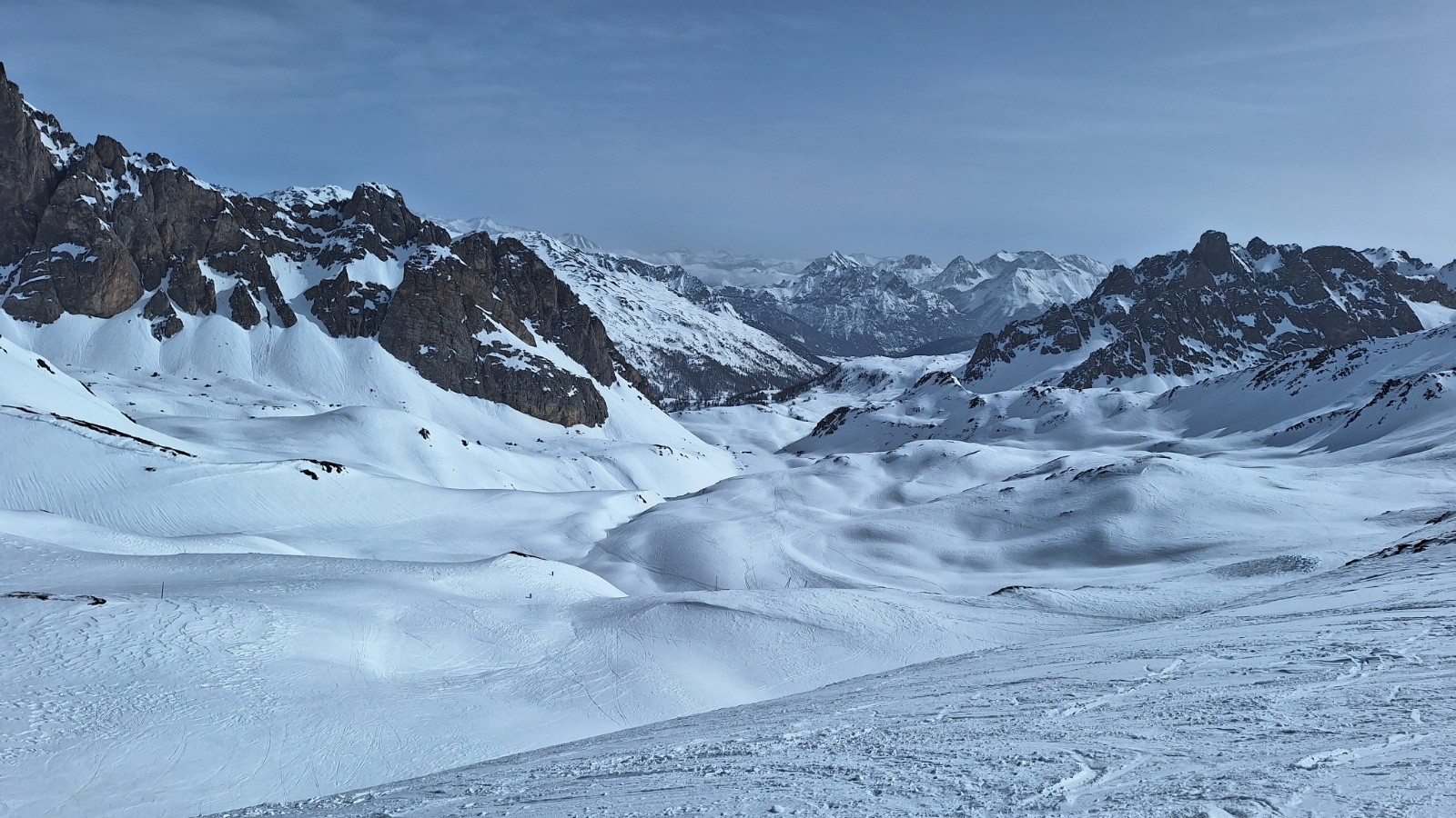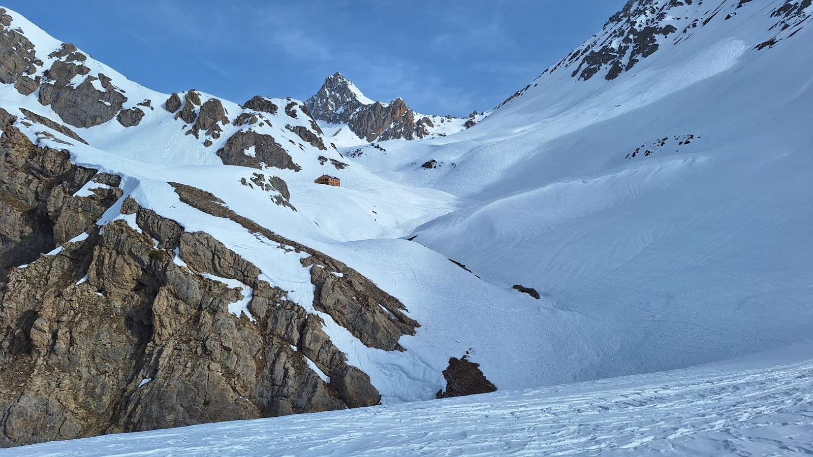 Conditions pour le ski : neige dure sous le Crete, poudre tassée agréable sous le col de l'Aiguillette, Neige béton immonde à skier sur la descente orientation ouest. La faute aux multiples traces de raquettes, au sable du Sahara qui maintenait une température plus fraîche que prévue.. et mauvais choix pour l'orientation.