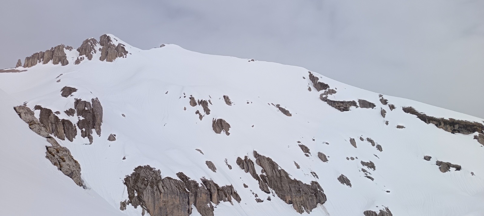 Conditions pour le ski : Très correctes sauf les 200 premiers D- sous le sommet (trafole gelée), puis transfo sympa mais la neige est rarement lisse avec le nombre de passages des jours précédents.