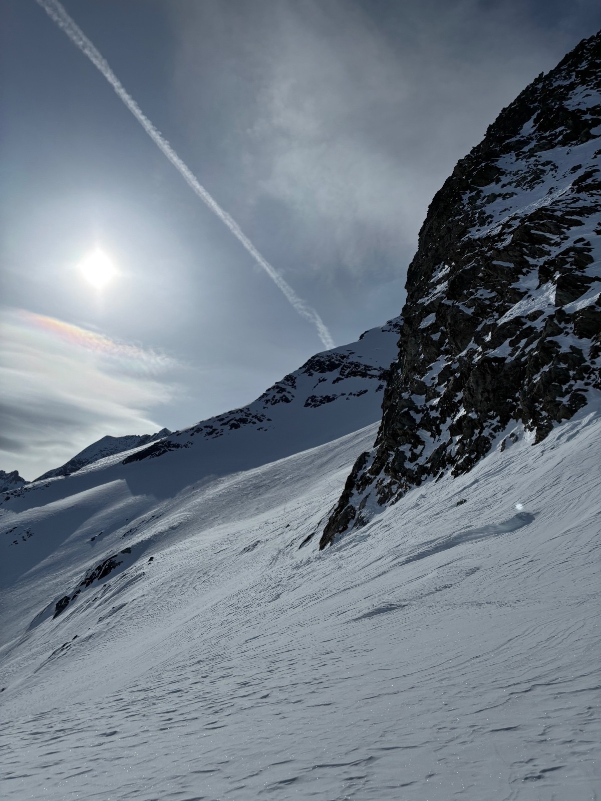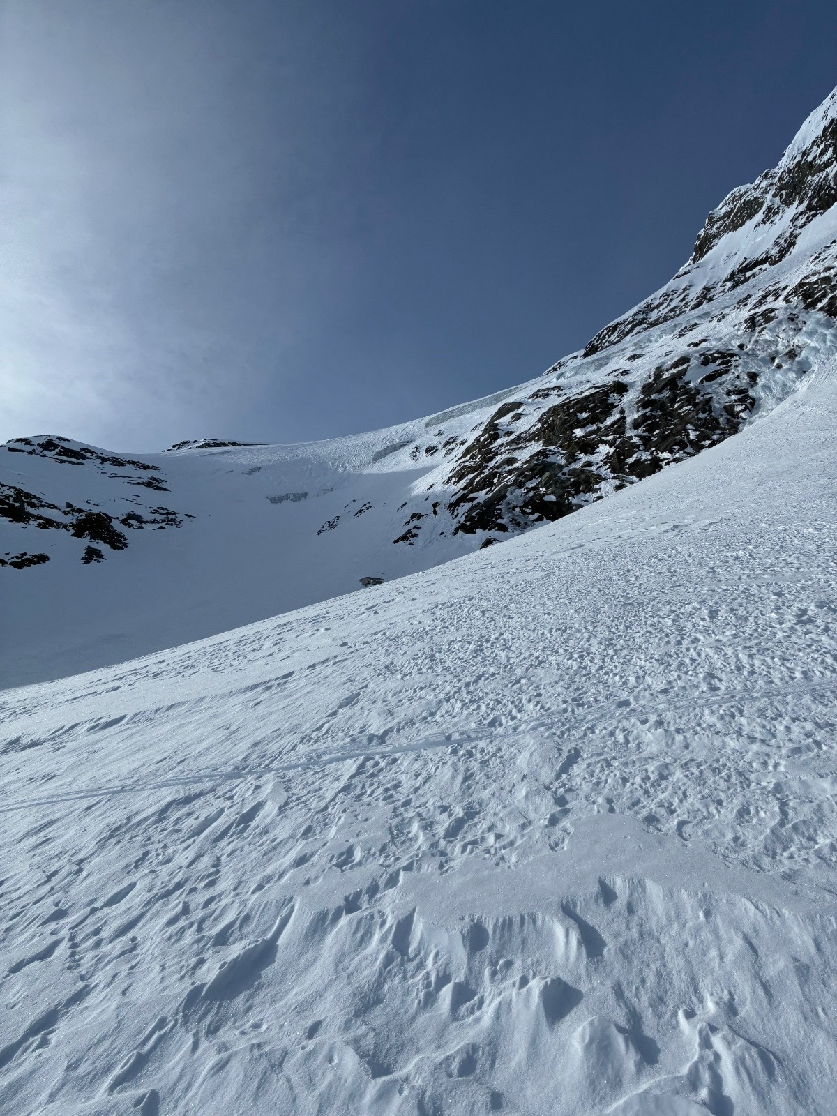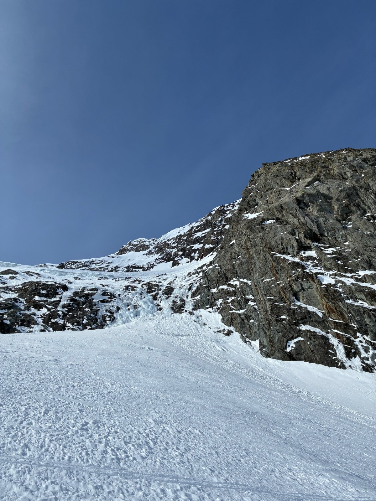 Haut (Sommet - 3000m) : Neige ancienne un peu ventée, compacte. Un peu physique à skier sur le haut du glacier.