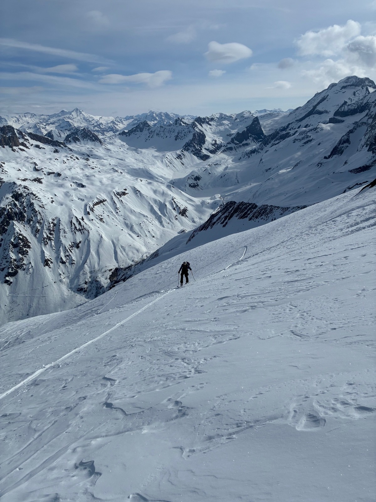 Le "Gavage" : Entre le bas du glacier et le refuge des Gouilles, c'était le meilleur créneau. Neige poudreuse ancienne avec un léger clapot, mais très fluide.