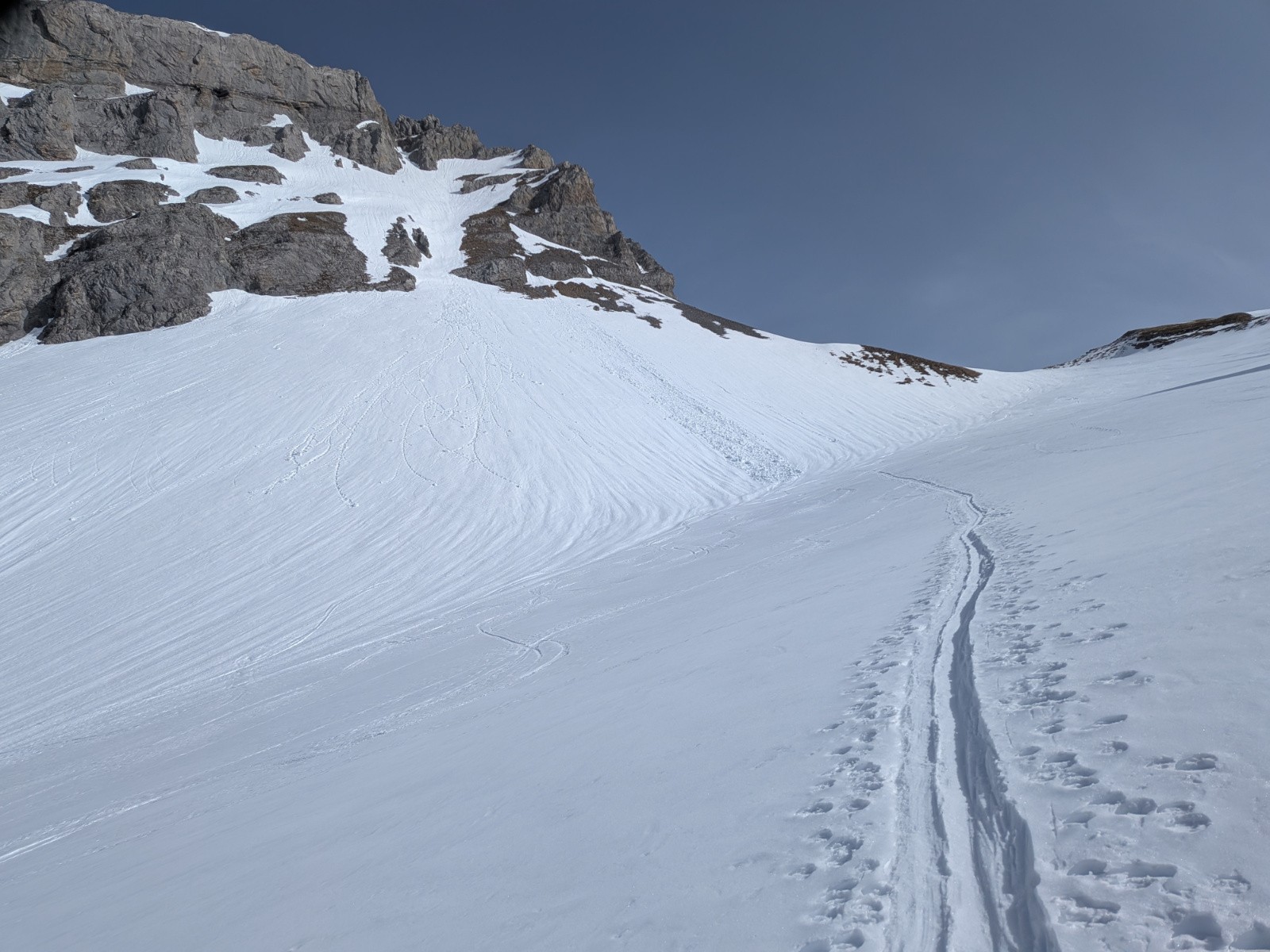 Descente agréable vers 13h dans une neige qui a déjà pas mal chauffée au soleil