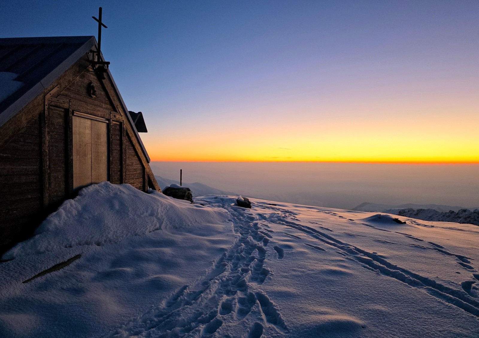 On fait les 300 premiers mètres skis sur le sac malgréles 5cm tombés pendant la nuit. Apres le raidillon de départ, traversee enchanteresse dans une forêt sans trace autres que renard et lapin au pied du Viso immense au loin qui dechire les nuages. Le paysage prend de l ampleur. Long cheminement entre les differents cols avec plein de requins partout. L impression d un paysage lunaire recouvert de neige avec des signes cabalistiques mysterieux. Apres le col de Gallardo, on est un peu trop confiant, le brouillard dense de la fin de journée et les pièges du relief nous font perdre un peu de fierté et pas mal de temps pour arriver a Quintino Sella. Journee absolument seuls en montagne encore ûne fois. Le Refuge Quintino Sella est massif et sans charme mais il est fermé. Le petit local d hiver lui est sympa, sans poêle mais avec au moins 12 ou 15 couchettes et des couvertures.On partage la nuit avec 3 jeunes français sympa venus écumer les couloirs du Viso.