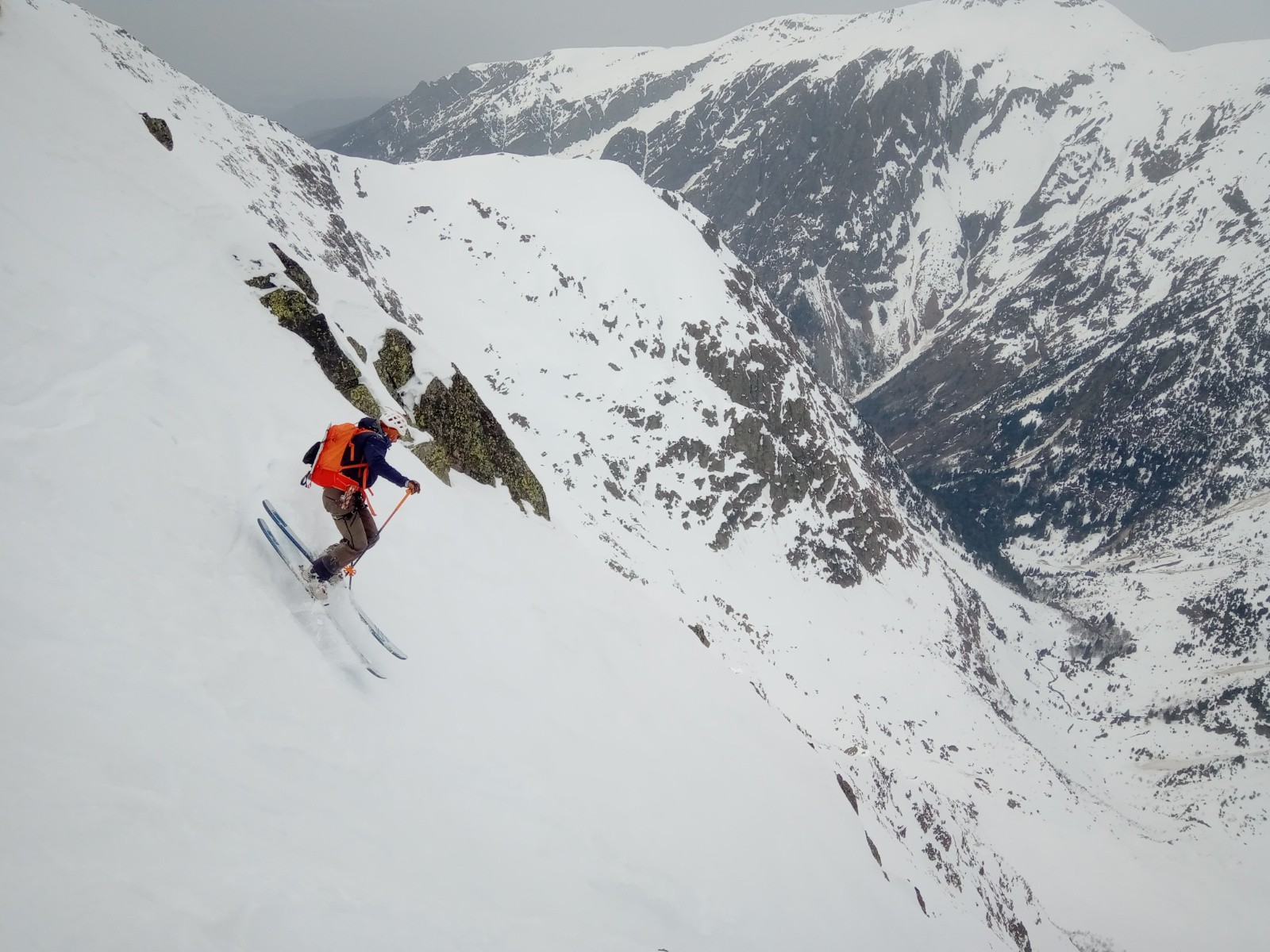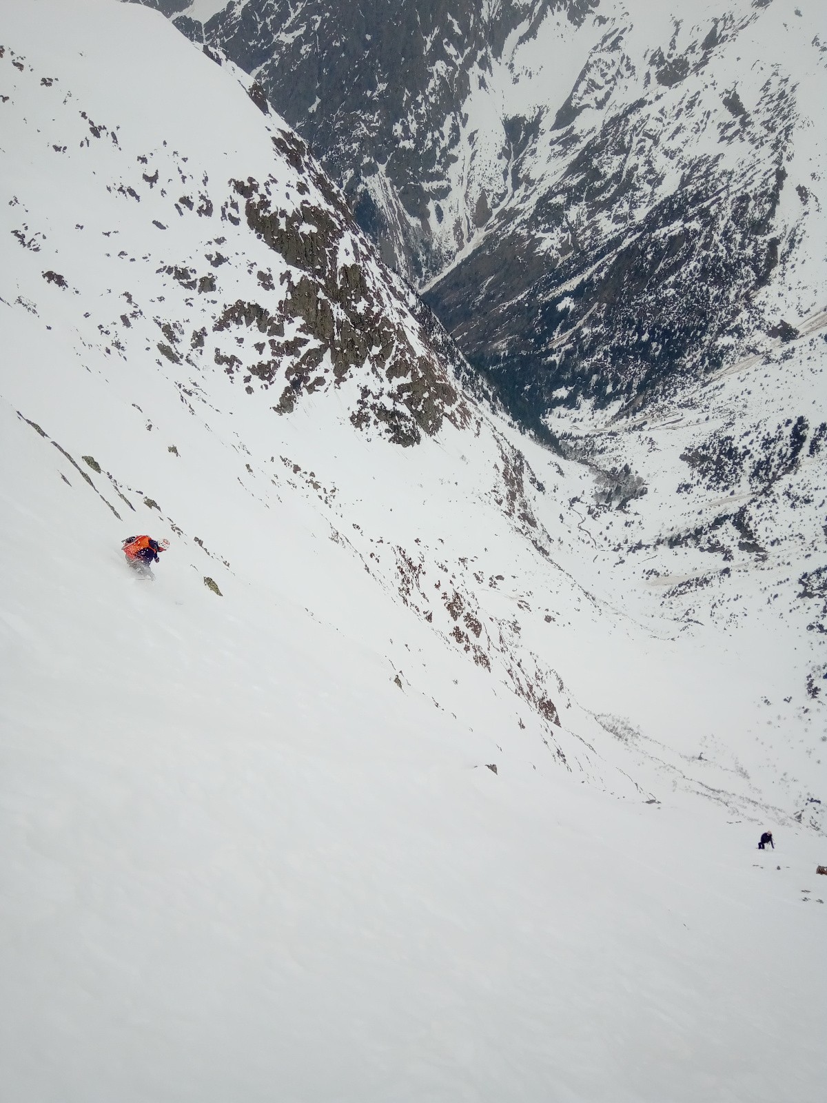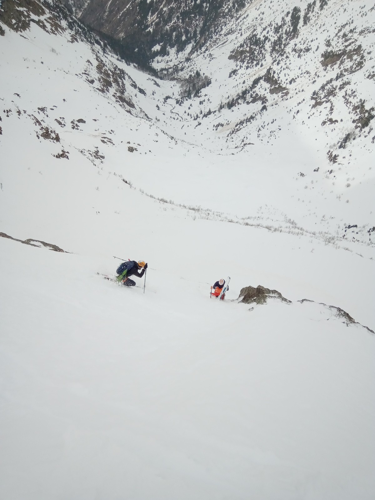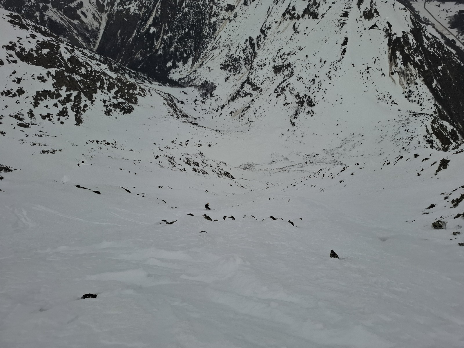 Conditions pour le ski : Dans la face voir CR, dans le vallon neige frittée dure ou neige molle skiante selon la prise au soleil