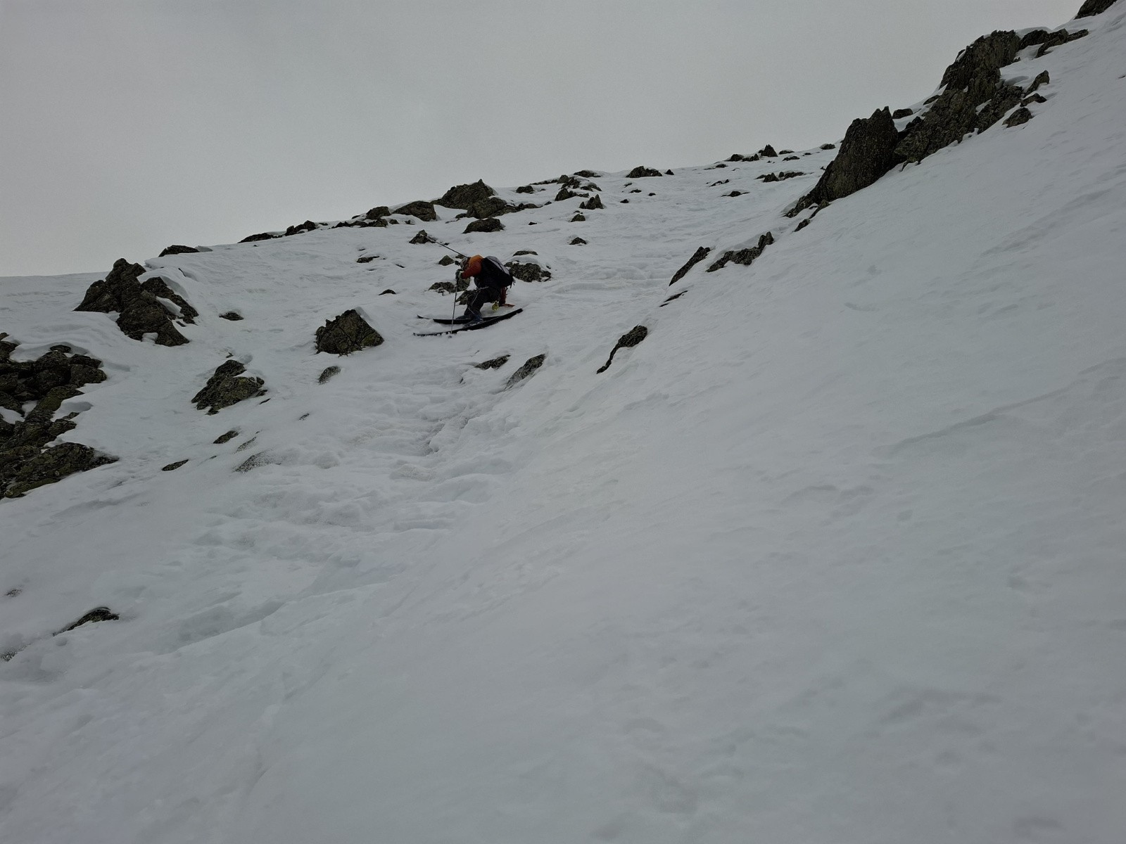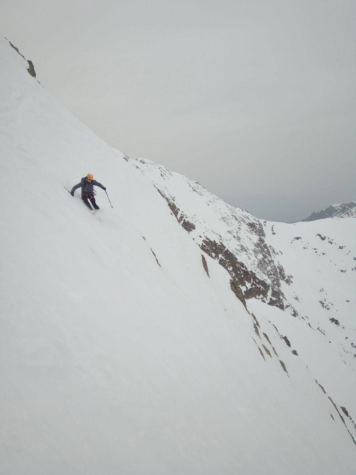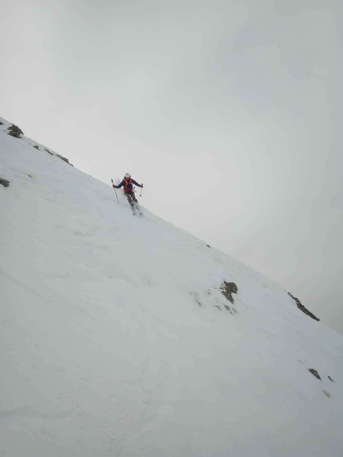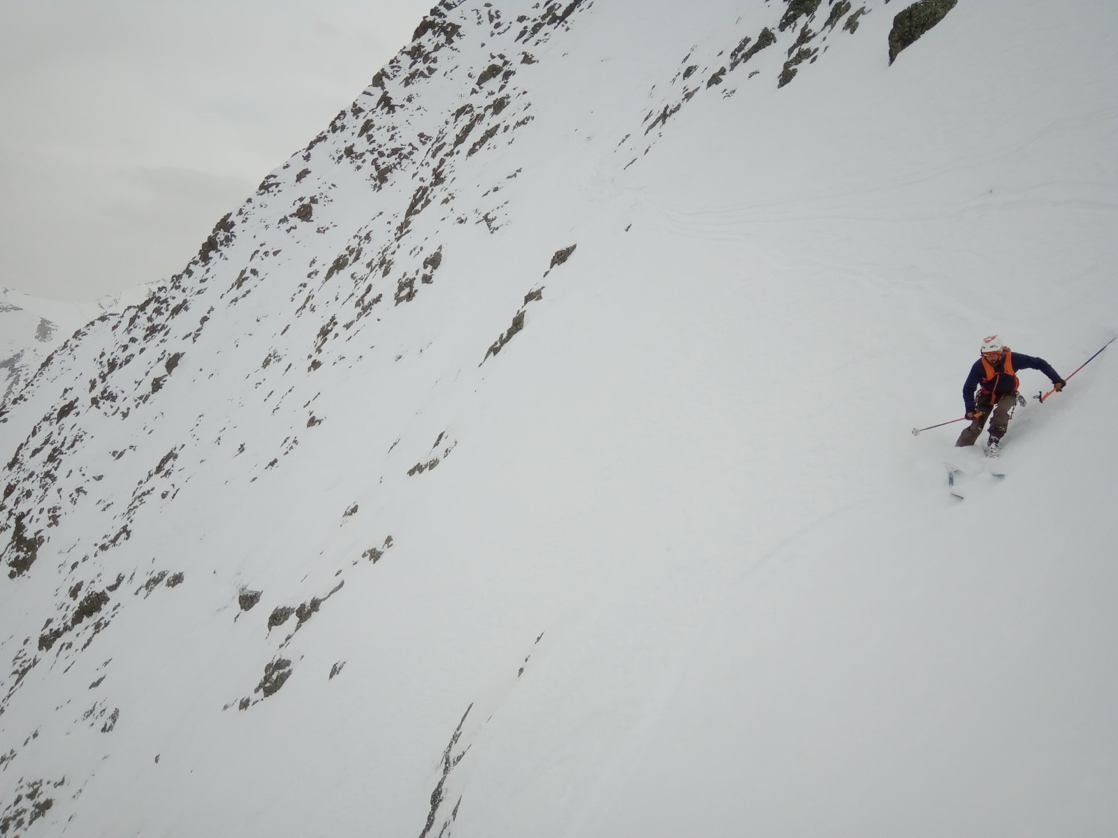 Conditions pour le ski : Dans la face voir CR, dans le vallon neige frittée dure ou neige molle skiante selon la prise au soleil