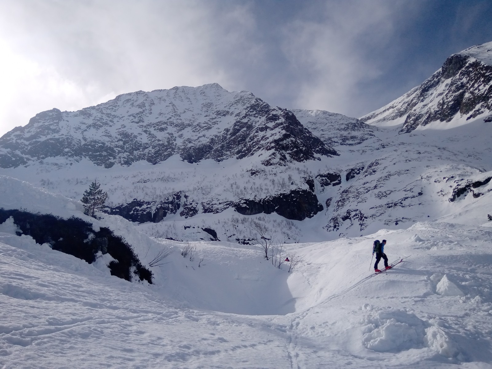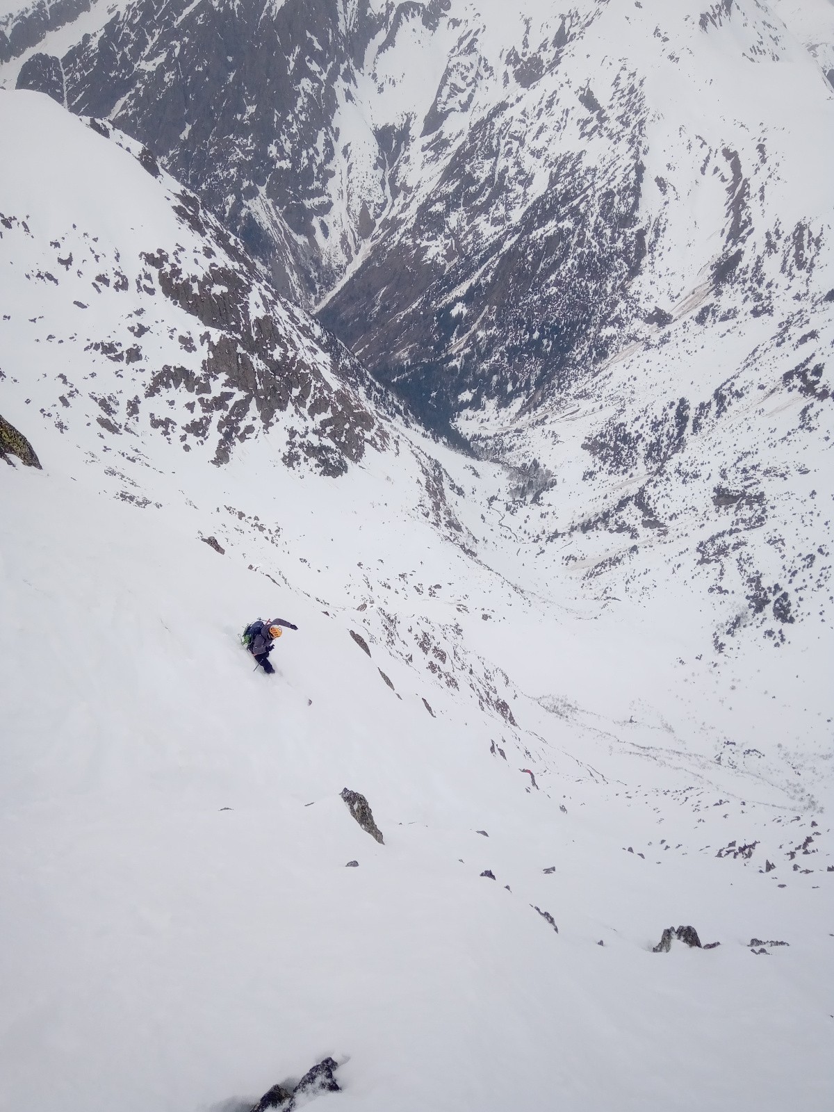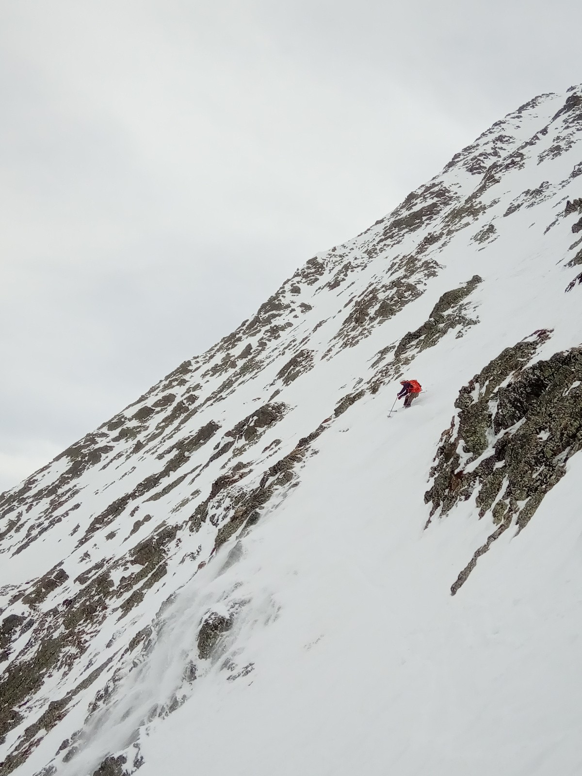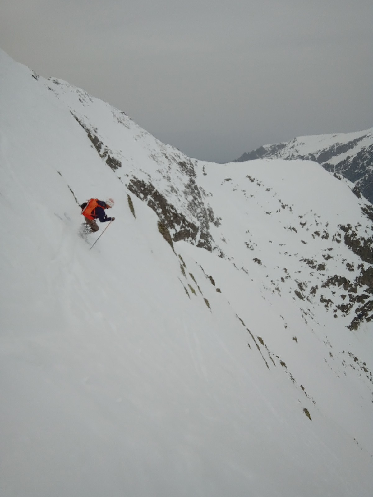 Conditions pour le ski : Dans la face voir CR, dans le vallon neige frittée dure ou neige molle skiante selon la prise au soleil