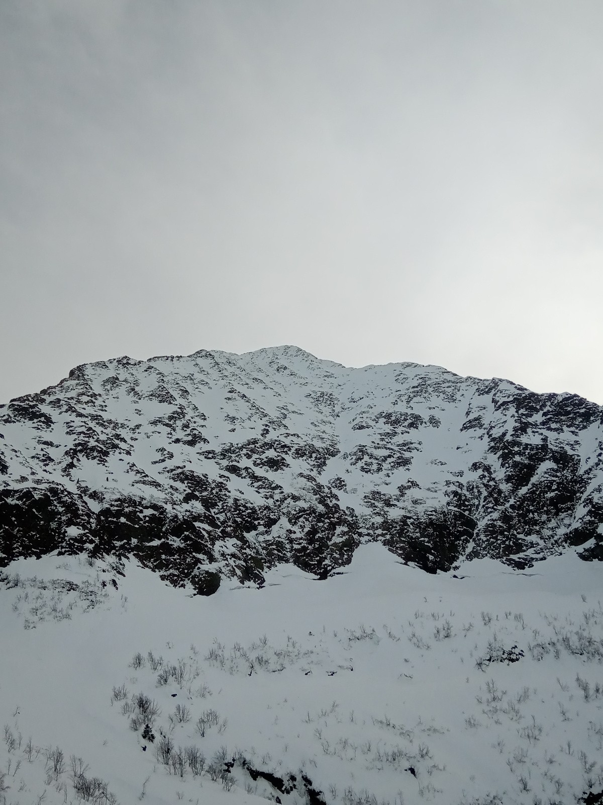 Vraiment la face est belle, mais l’impression que je ne suis quand même pas prêt de revenir ici de si tôt, c’est loin, les conditions sont éphémères, d’autres projets moins aléatoires encore à portée de main… Bref, il aura fallu attendre mars 2026 ! Et surtout une vague photo d’un copain traînant dans le quartier, « t’en a d’autres ? », oui il en a d’autres, et HD, et la face est blanche. Le ressaut en revanche est noir, mais on verra ça plus tard. Des motivés ? Seb et Antoine répondent à l’appel, ils ne semblent pas connaître la littérature de cette face, ce qui les rend parfaitement insouciants et enthousiastes, exactement ce qu’il faut pour équilibrer ma totale certitude de but. Le ressaut est noir et annoncé lugubre par tous les CR, plutôt que de rééditer l’expérience du Vallorin autant y aller directement à vue par la petite face nord ? Un coup de jumelle sur le ressaut depuis le fond du vallon une fois l’approche faite et cette option est immédiatement acceptée de tous.