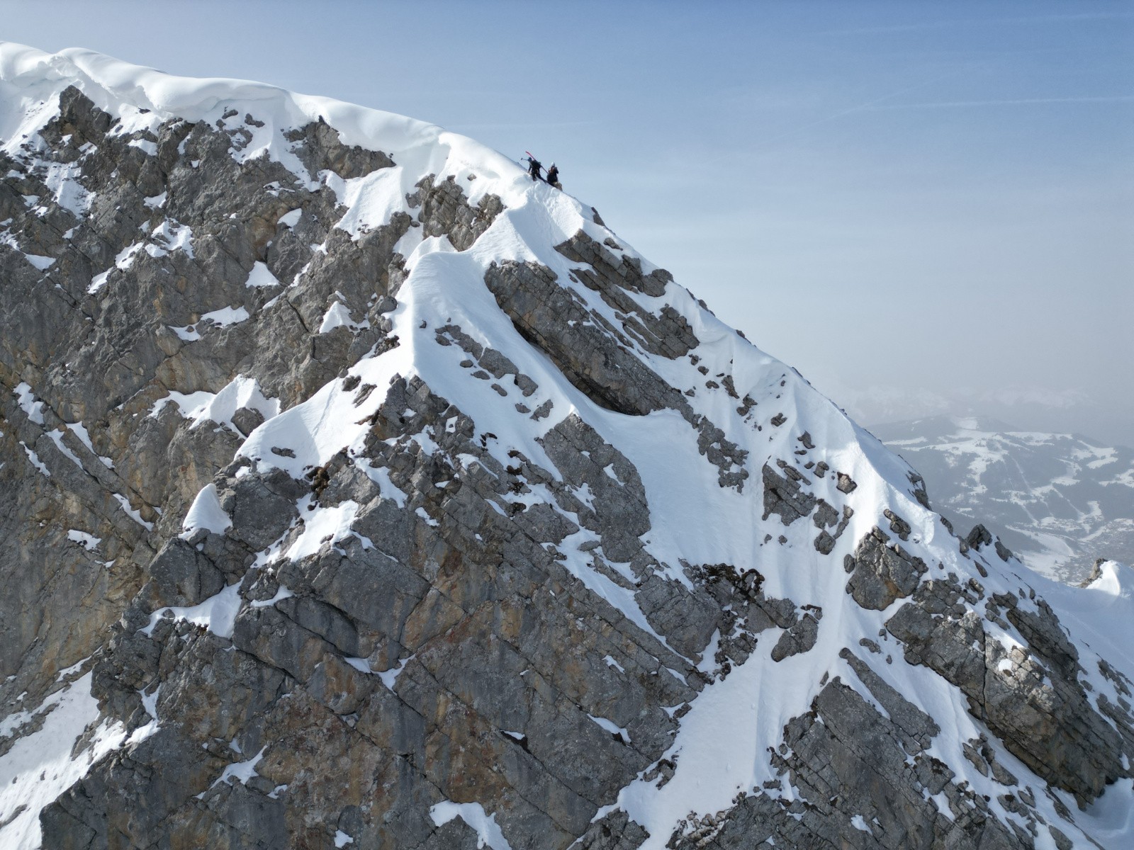 Au sommet, ça tergiverse fort. Je me trompe de couloir d'entrée, un mur vertical tout sec. En fait, on était au bon endroit, mais fallait regarder à gauche, là où ça ne semble pas donner ! Merci le drone.