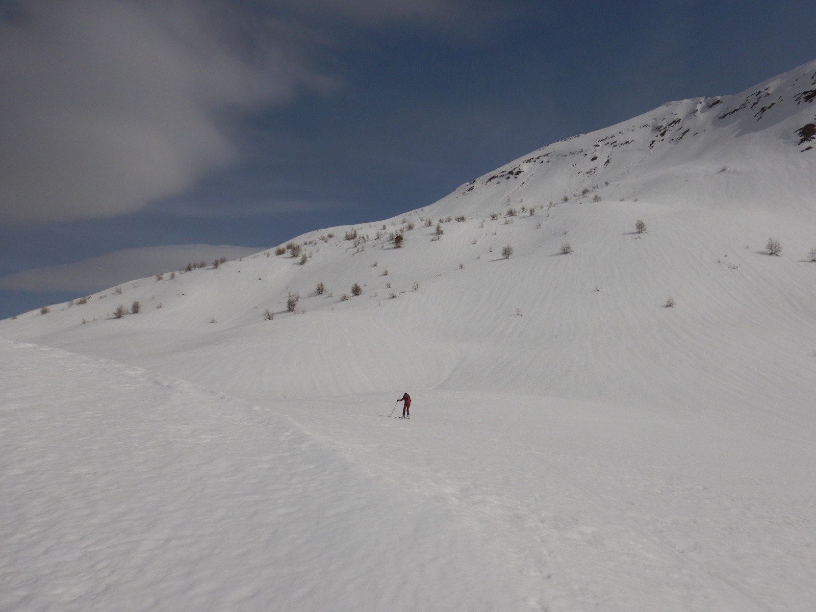 Conditions pour le ski : Neige non décaillée mais bon grip du sommet jusqu'à 1800-1900 m, neige molle ensuite mais quand même portante jusqu'à la voiture, mauvais regel au départ !