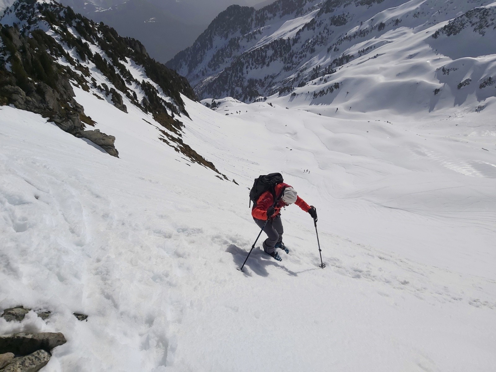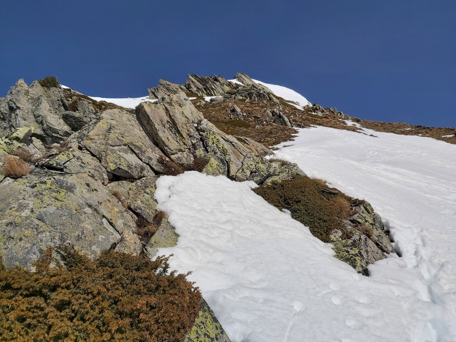 Itinéraire suivi :on a suivi la piste du chalet d'Arpingon puis à la fin de la piste remonter la partie plus raide sous la croix D'Arpingon puis sortir au niveau du chalet, ensuite droit devant jusqu'au sommet de la première partie du vallon en longeant les pentes et rochers du sommet de Pré Charvin puis débouchés dans la seconde partie du vallon de la on voit le sommet continuer jusqu'à rejoindre l'arrête qui descend du sommet remonter celle ci le plus haut possible plus de neige sur une partie de la pente terminale finir à pied, crampons plutôt conseillé