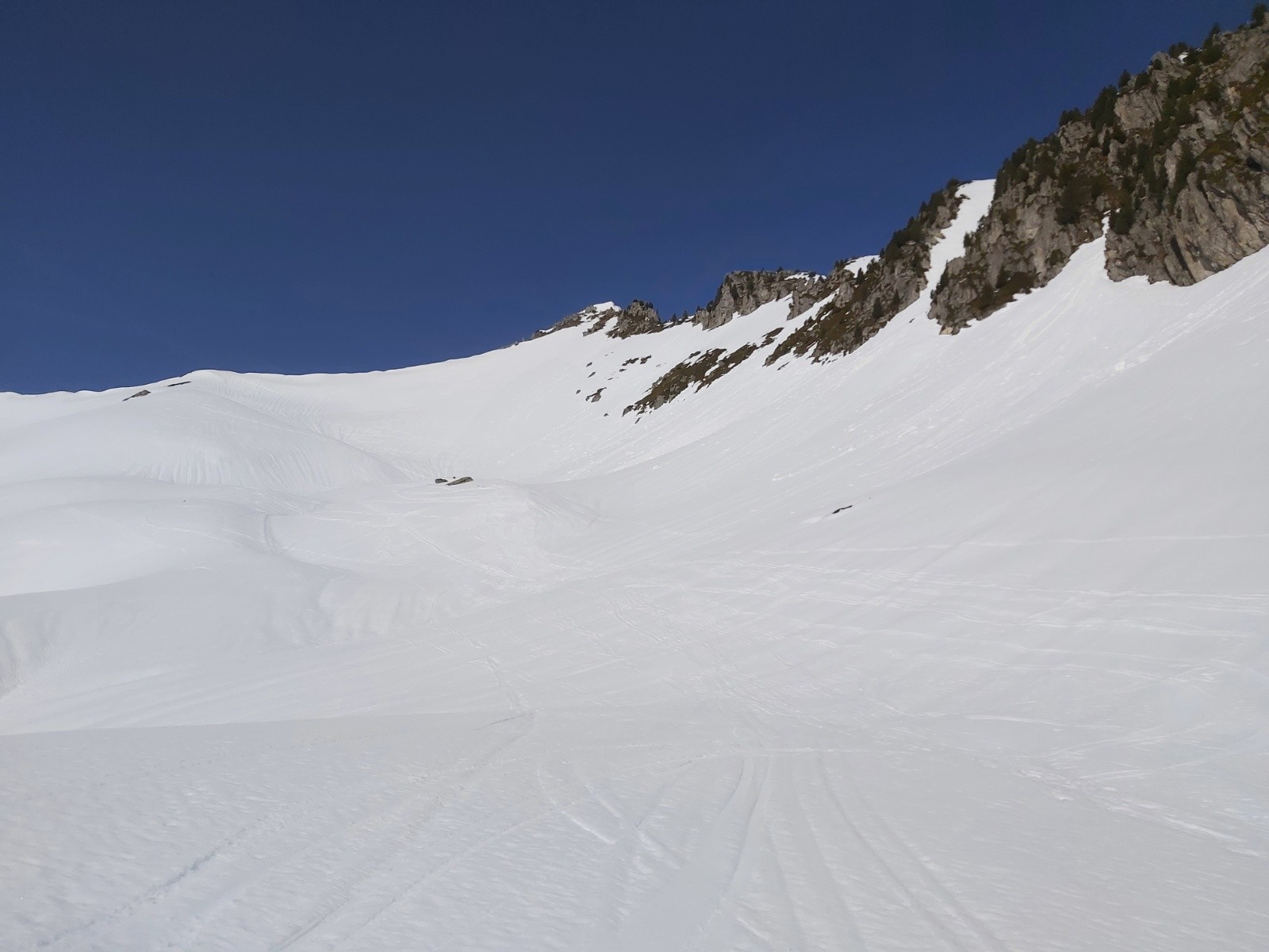 Conditions pour le ski : très bonne du sommet au chalet d'Arpingon puis lourde en dessous