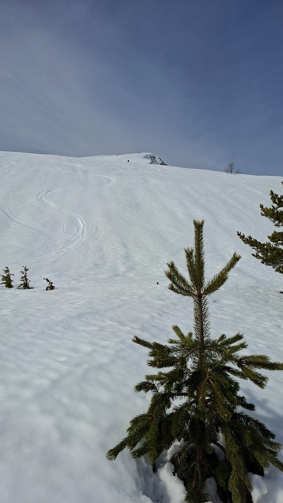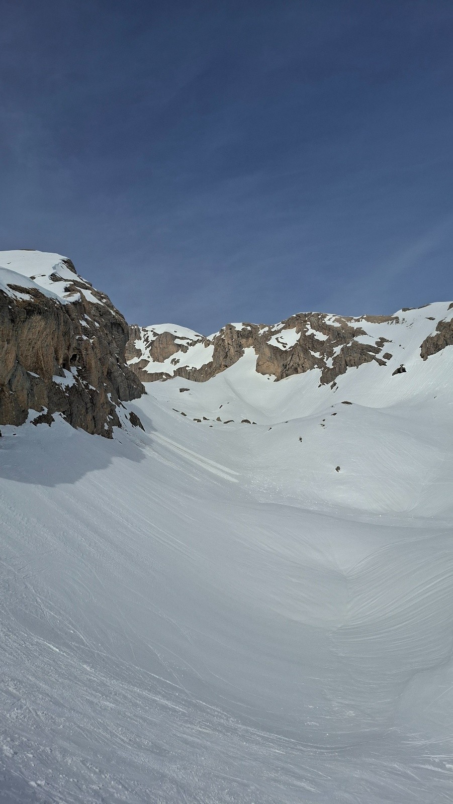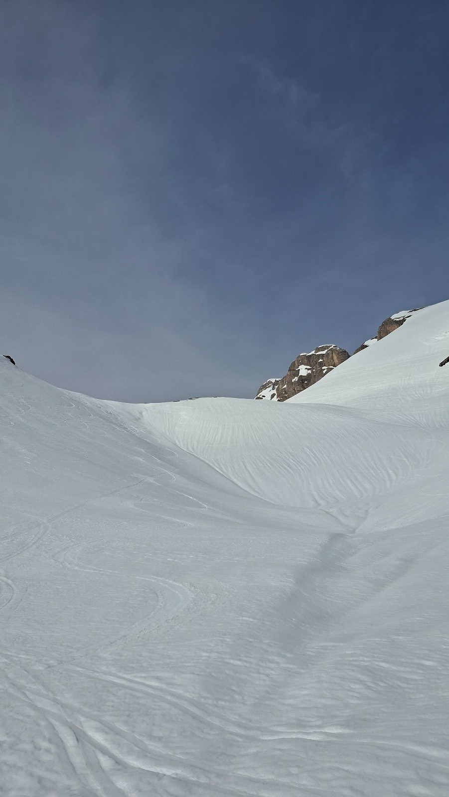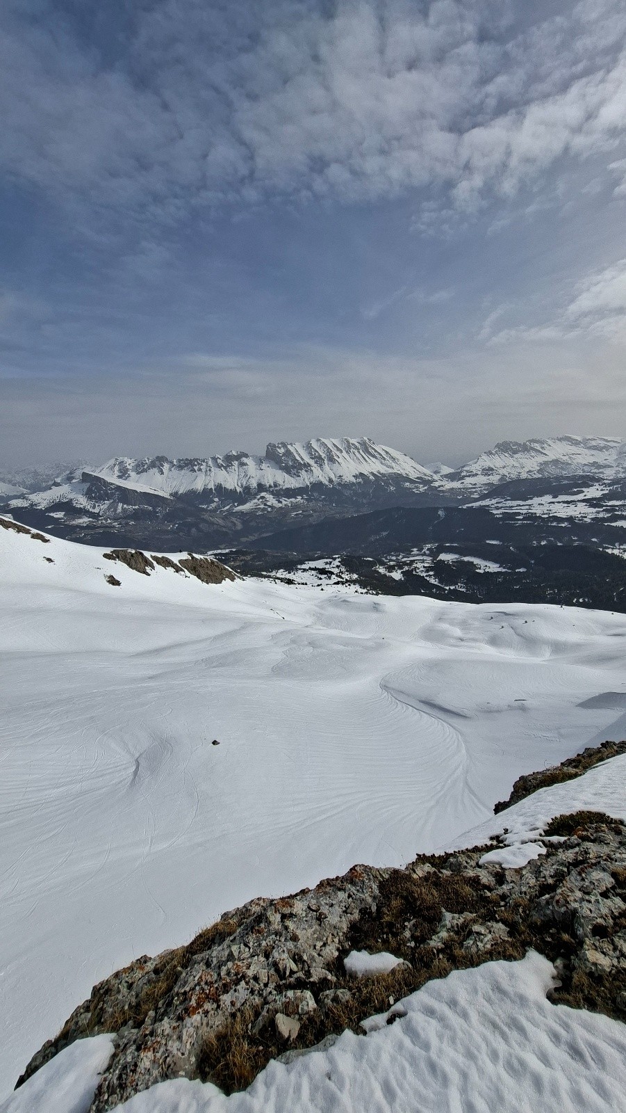 Neige de printemps excellente sauf en haut où c'est resté béton (petite brise).