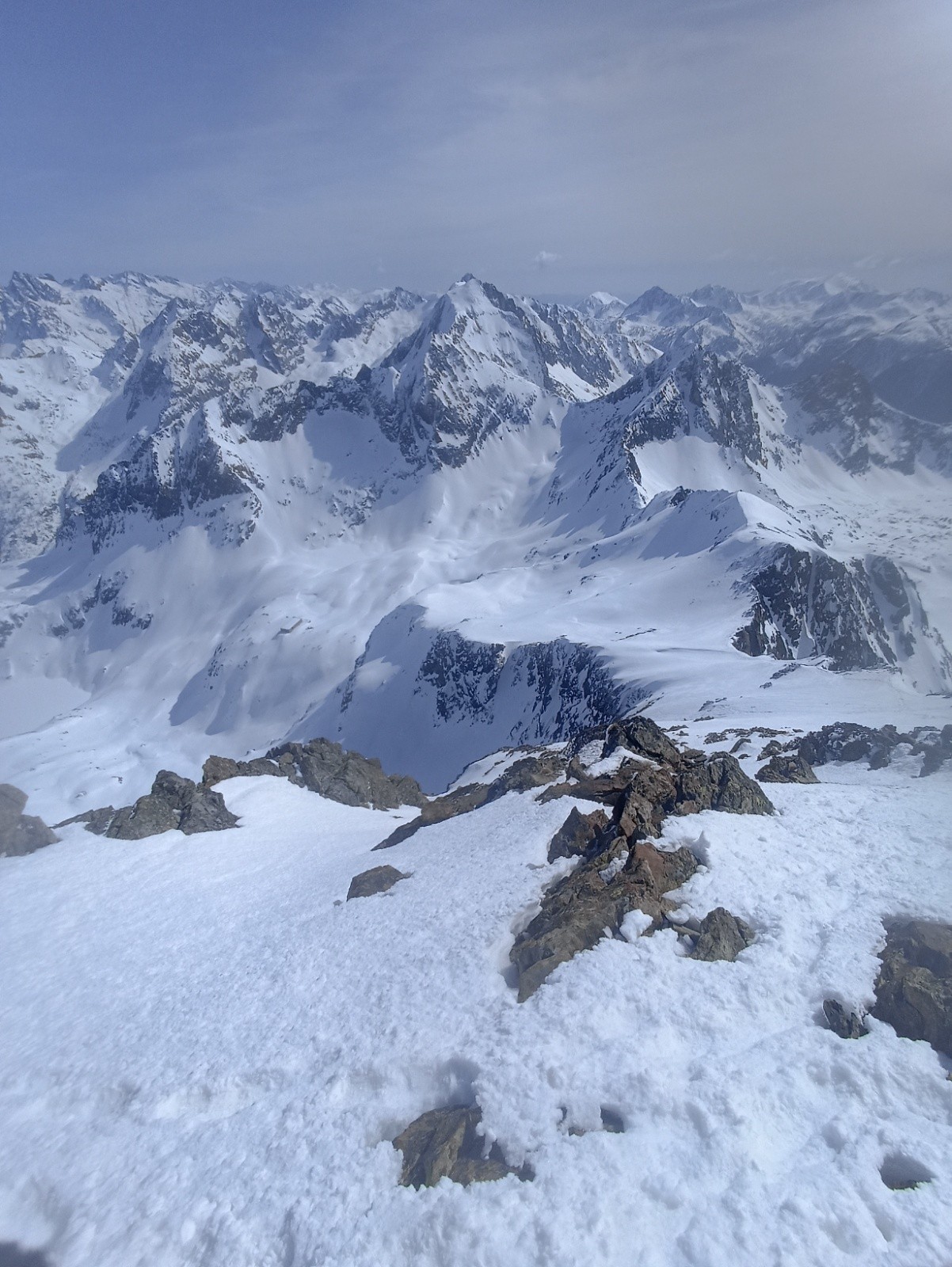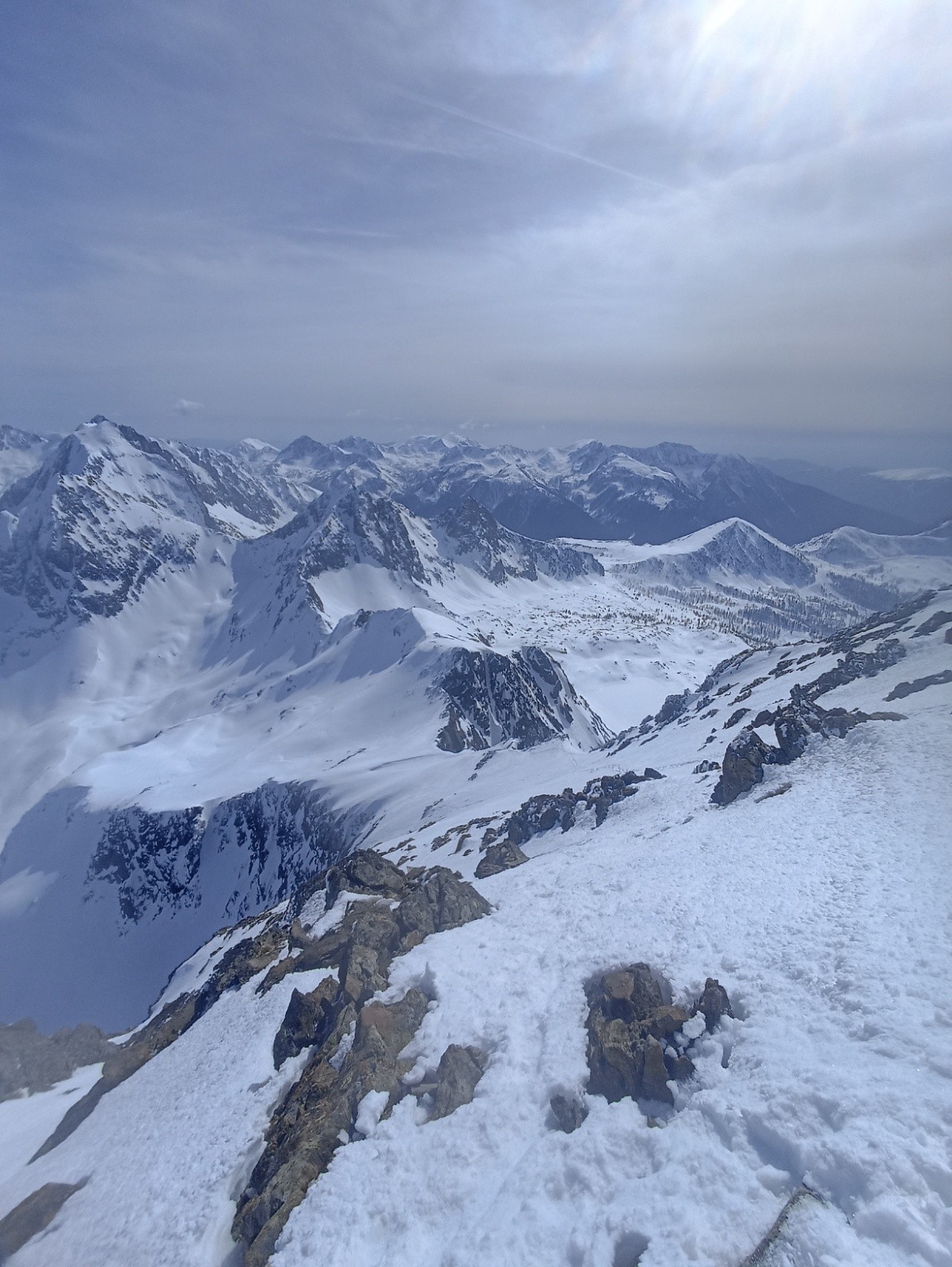 Conditions pour le ski : bonne en Nord où on a 5/10 cm de neige récemment tombée sans cohésion. Est/Sud qui transforment mais tardivement malgré l'ensoleillement (impact probable des particules de sable encore dans l'air absorbant une partie du rayonnement solaire).
