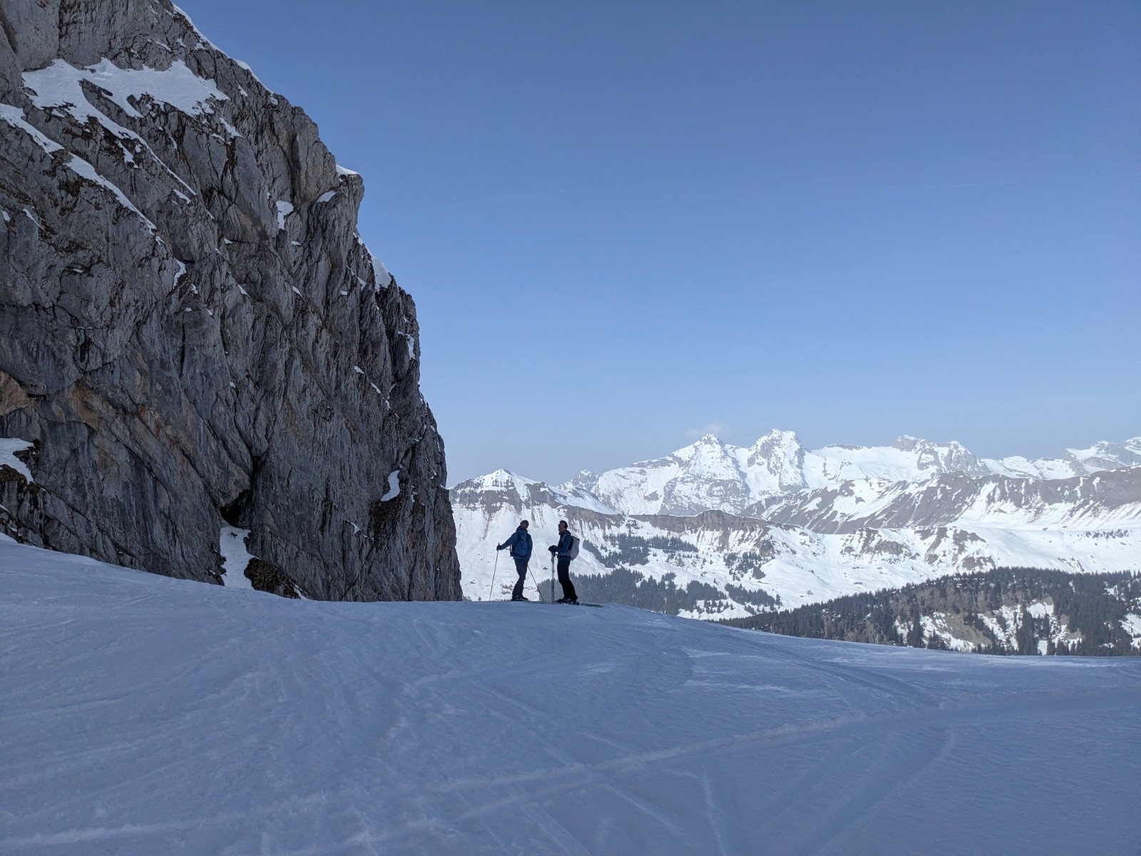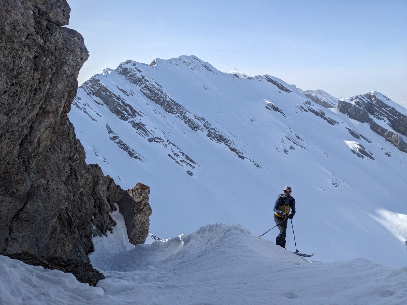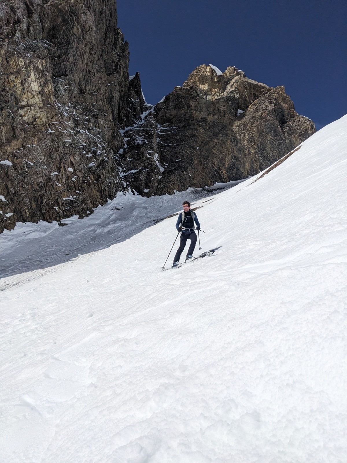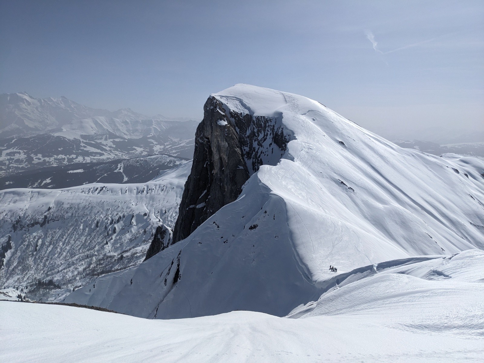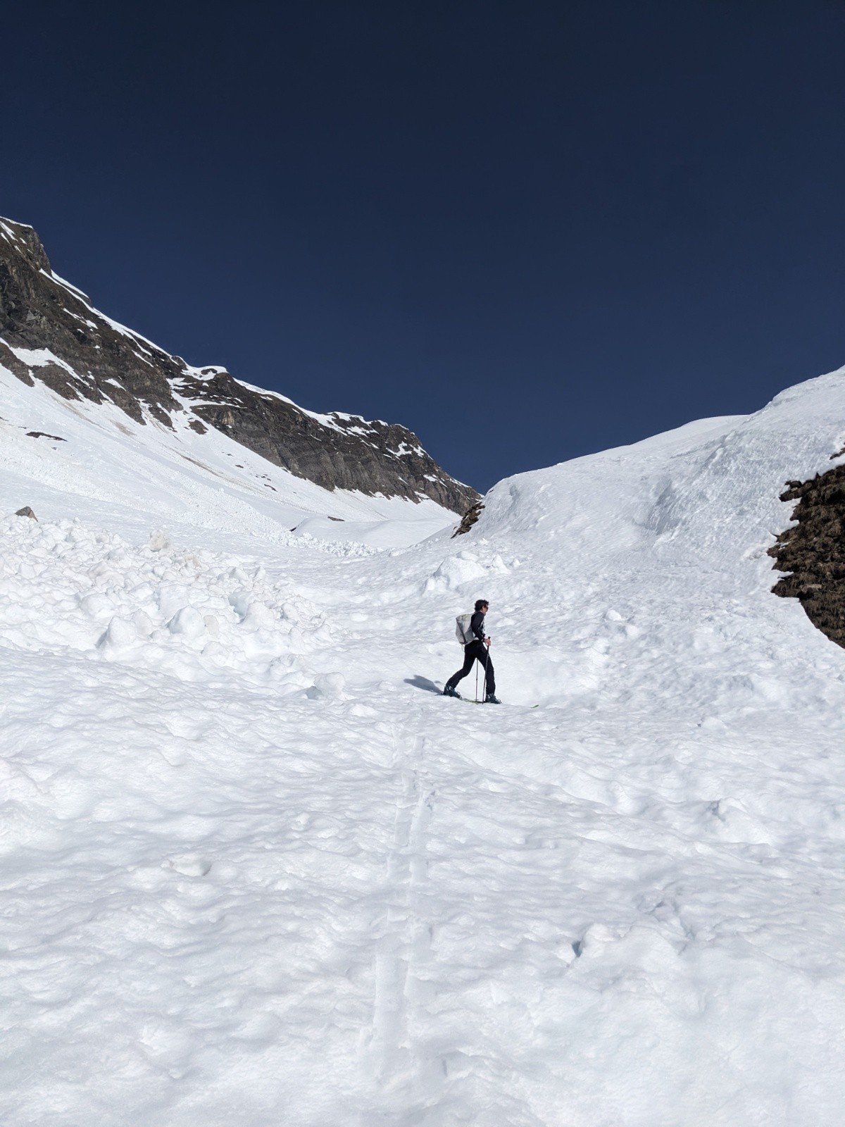 Le retour par le col de la Forclaz et la combe est plutôt bon aussi même si d'impressionnante coulée traverse la combe depuis les pentes au soleil.