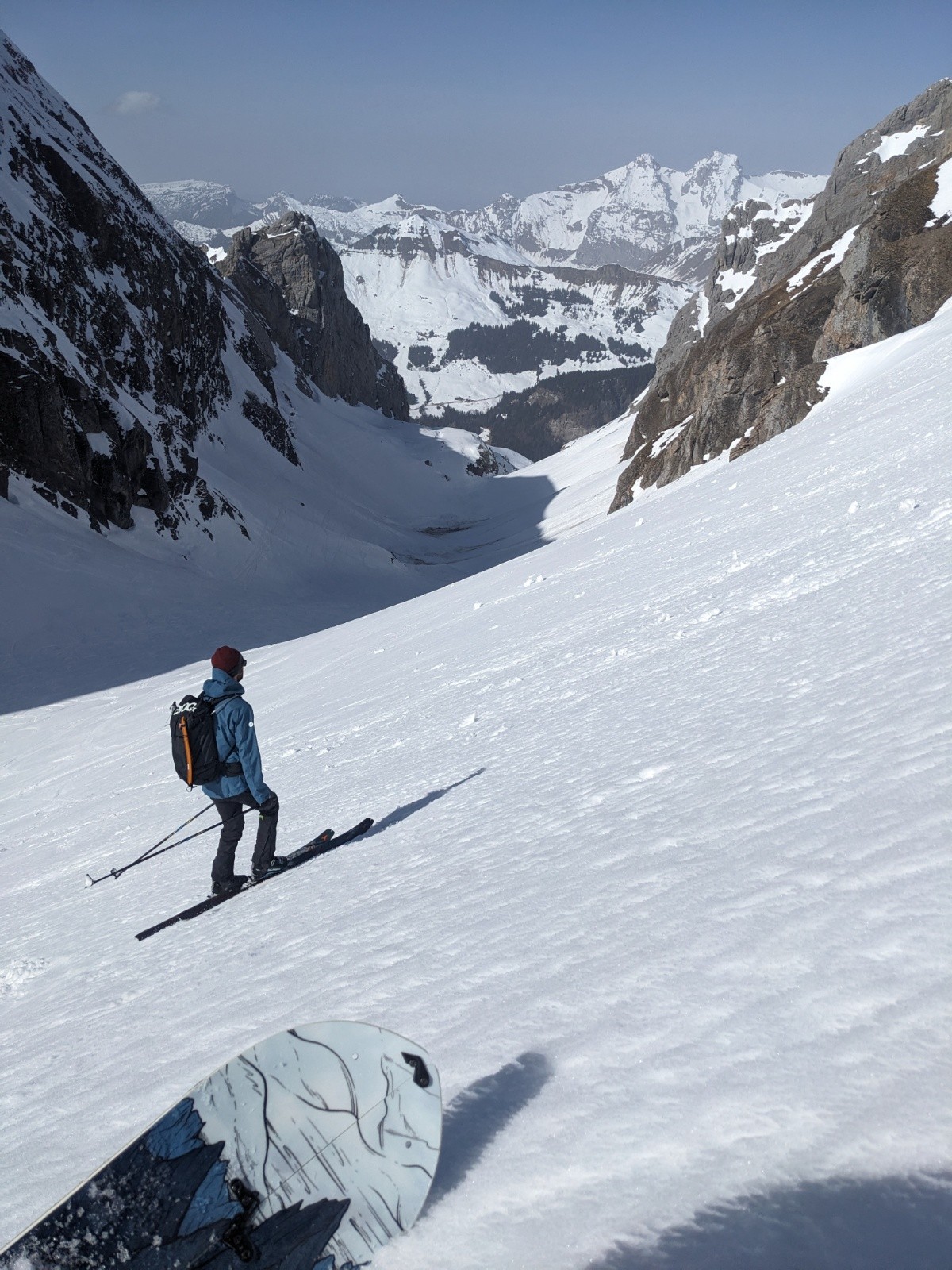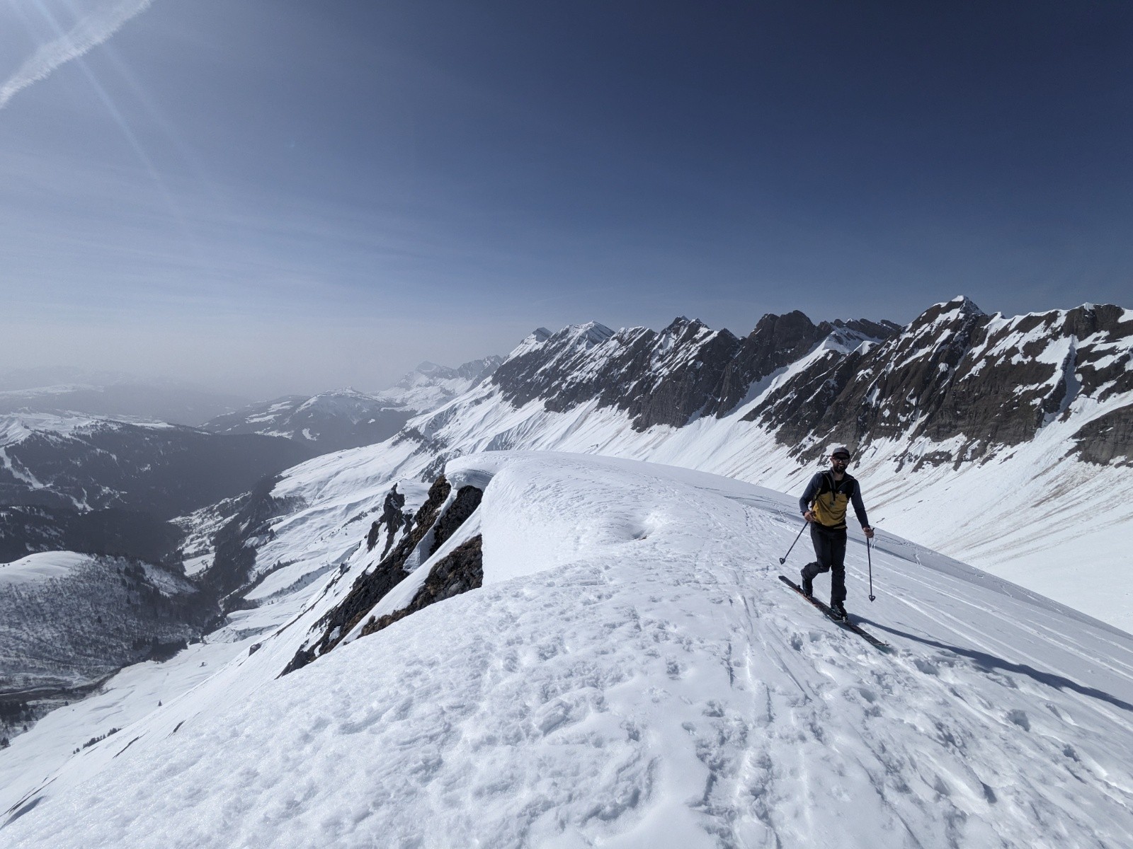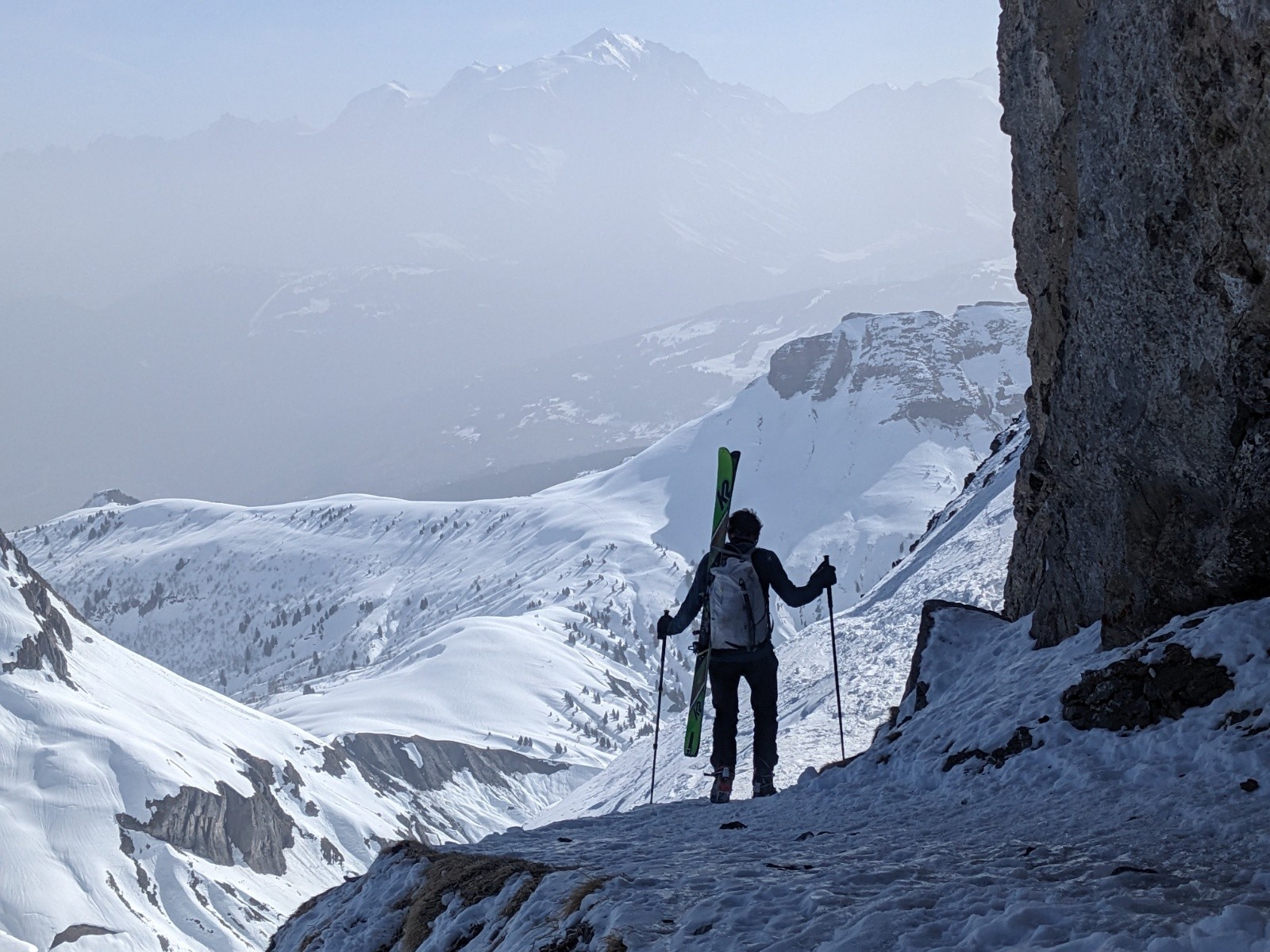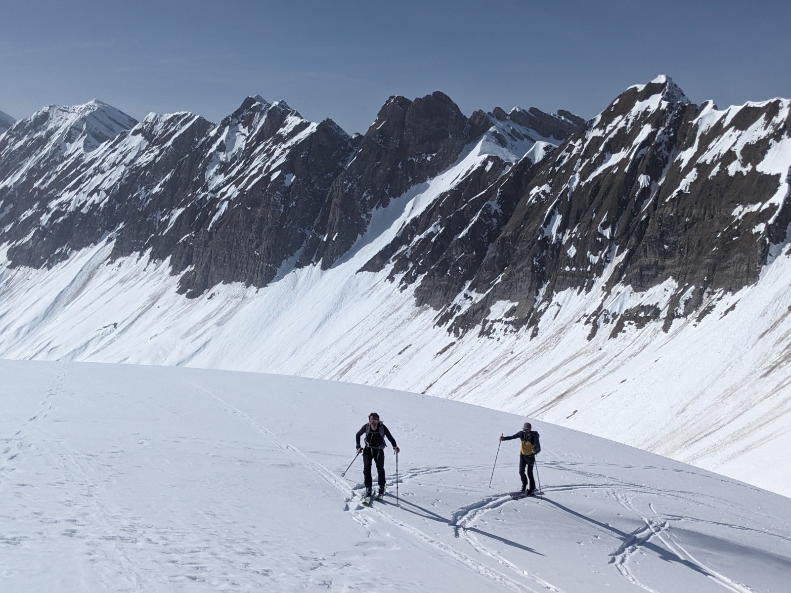 Le retour par le col de la Forclaz et la combe est plutôt bon aussi même si d'impressionnante coulée traverse la combe depuis les pentes au soleil.