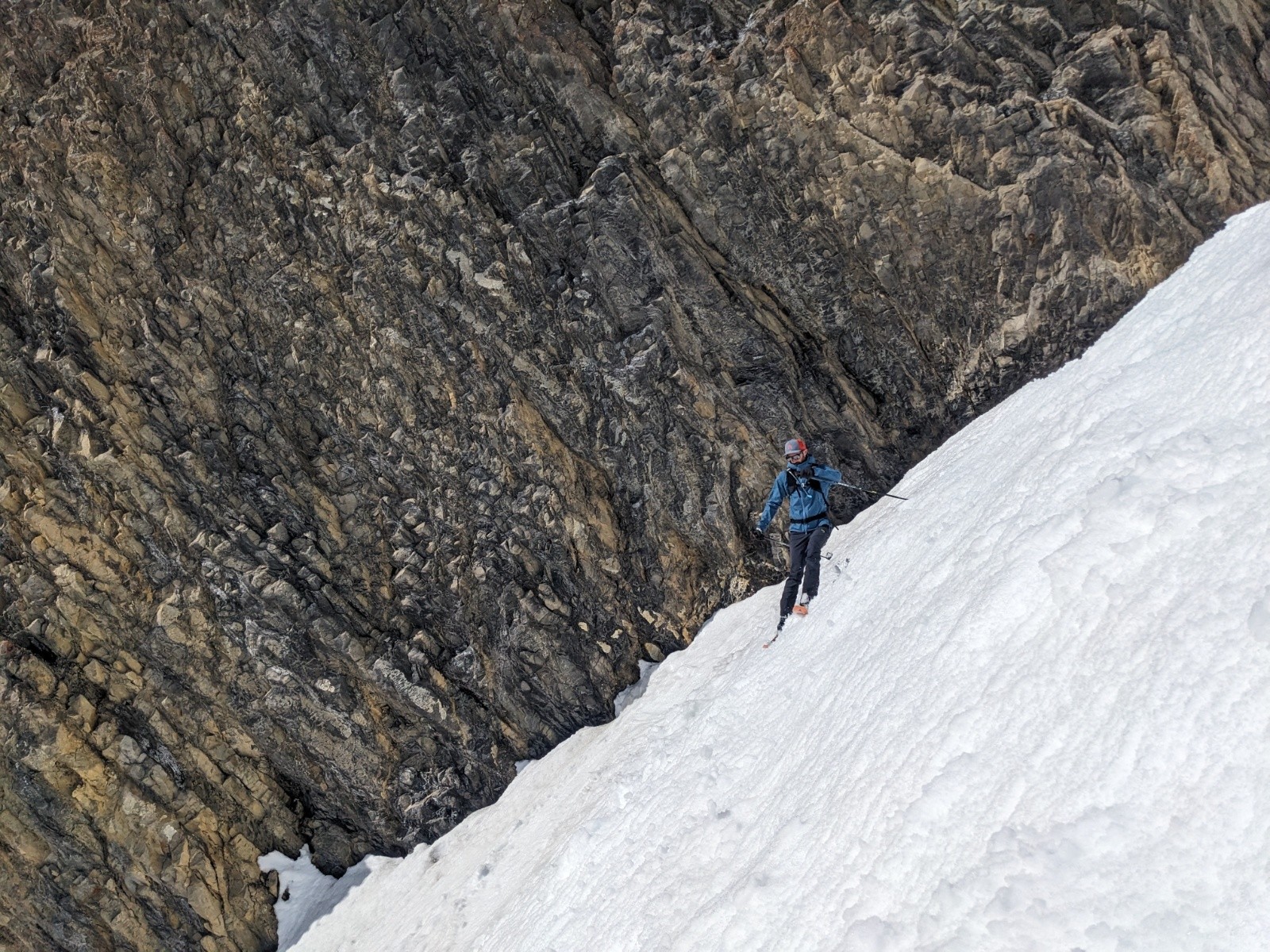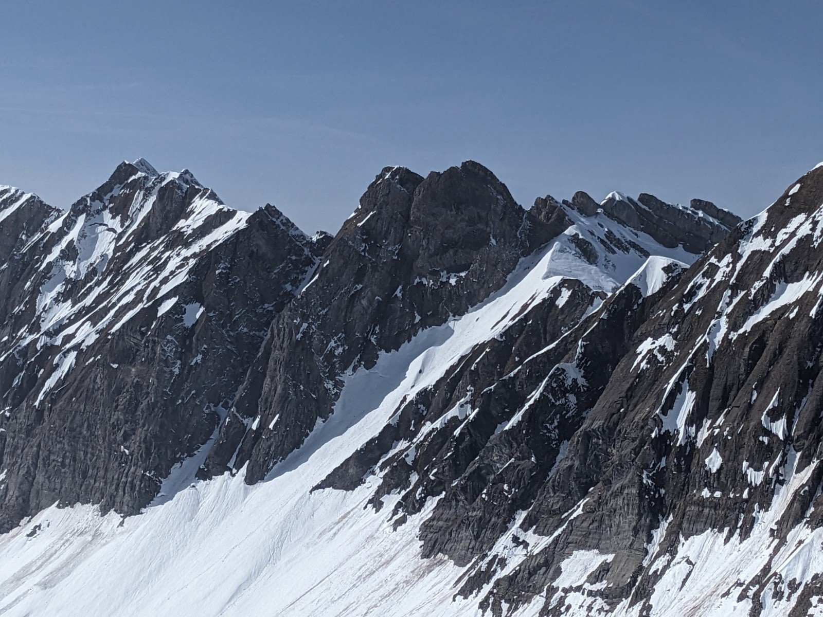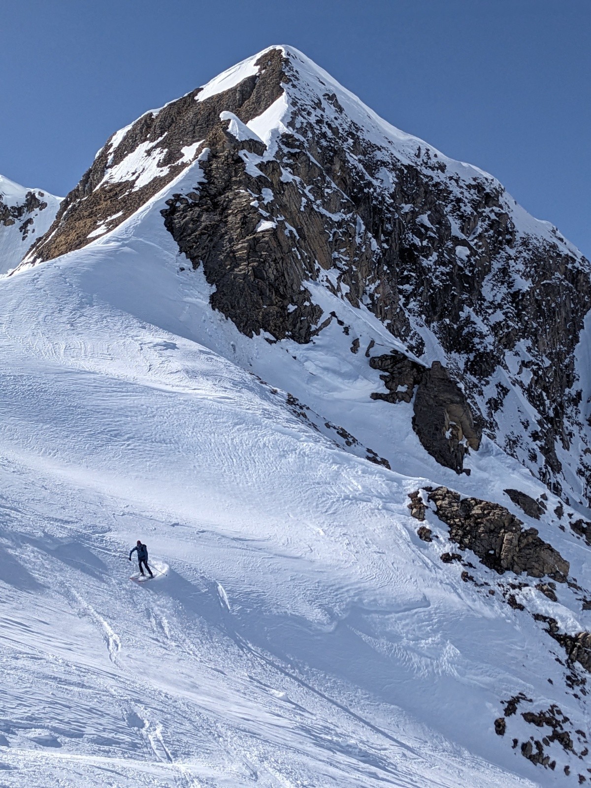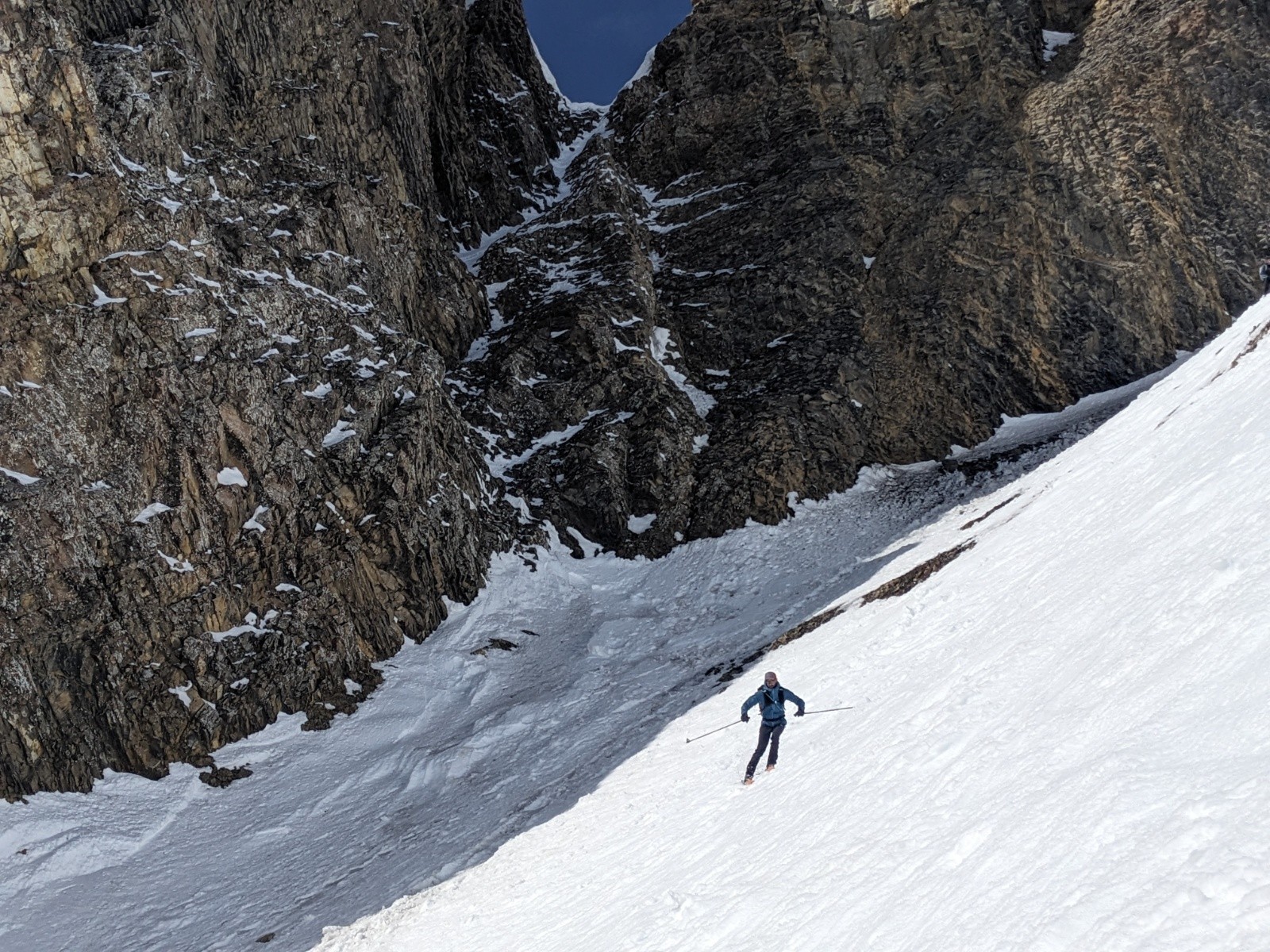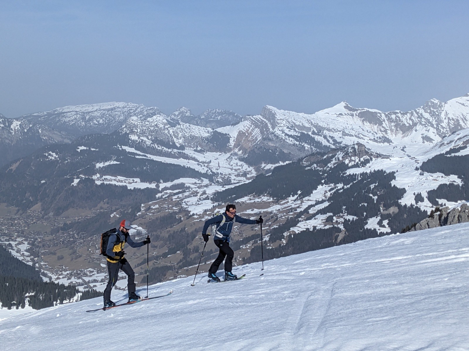 Le retour par le col de la Forclaz et la combe est plutôt bon aussi même si d'impressionnante coulée traverse la combe depuis les pentes au soleil.