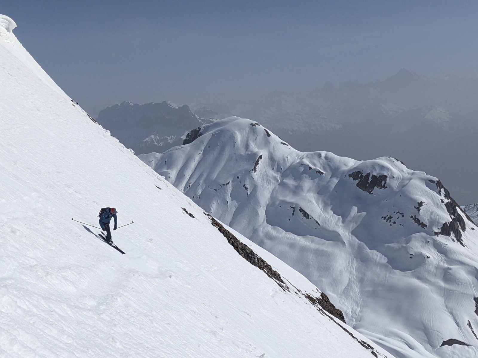 Passage au trou de la mouche et bascule en Est ou c'est plutôt bon a skier/surfer. Remontée bien chaude en direction de Miaz. Cette petite pente était vraiment sympa.