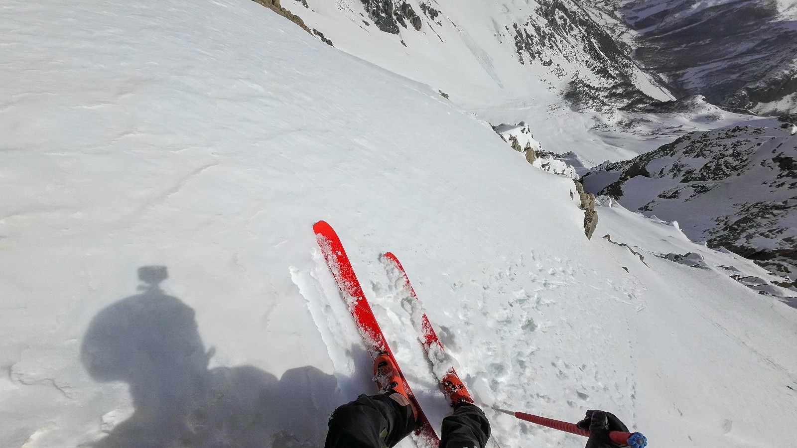 Résultat une nouvelle ligne par la haut (surement déjà skiée hein, mais nouvelle pour nous deux) très sympa, belle ambiance. un peu expo malgré tout. Bien plus recommandable que le couloir classique de gauche.