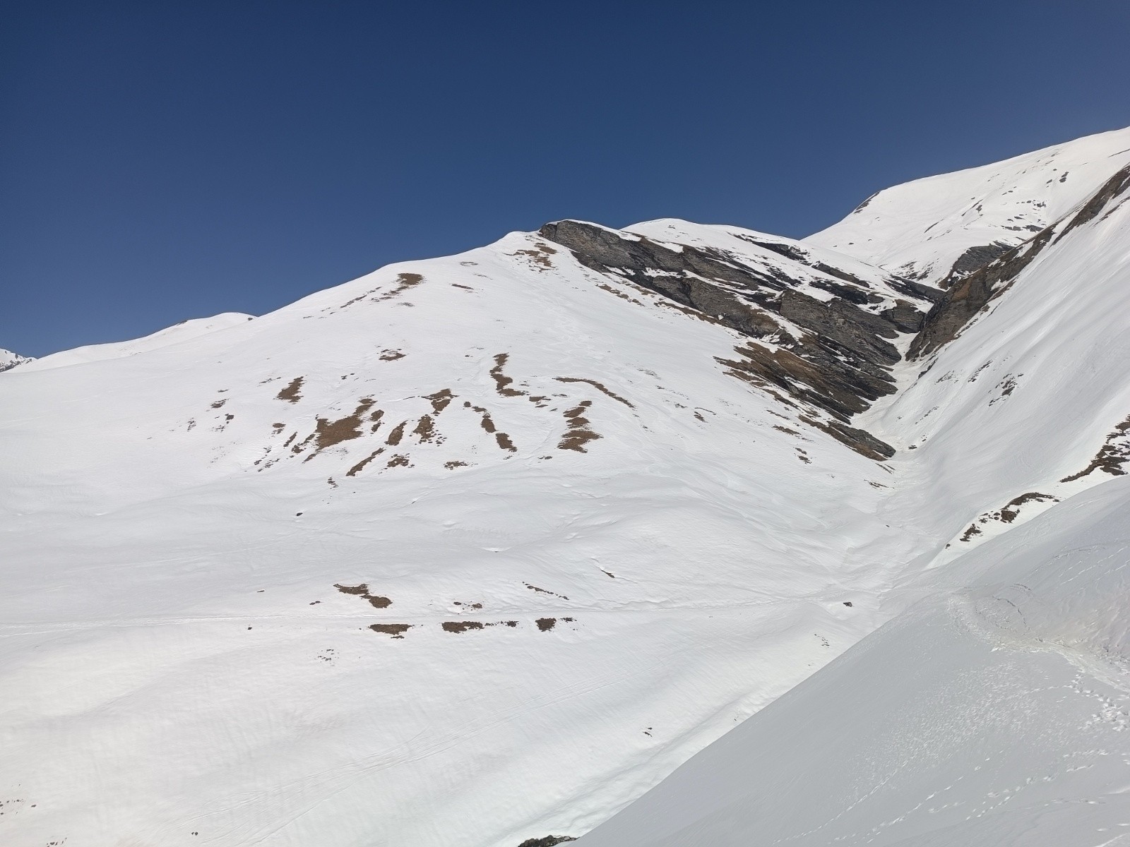 Itinéraire suivi :topo jusqu'à la Petite Buffe, puis on suit l'arête jusqu'au point 2785. Descente dans la pente sud / sud-est à 12h30 dans une moquette à poils courts. La neige ensuite sur la crête est pas encore revenue avec pas mal de relief. On tire ensuite à gauche pour skier la face sud-est jusqu'au gué 1951 dans une moquette à poils un peu longs. Un petit repeautage puis ça glisse tout seul jusqu'au télésiège.