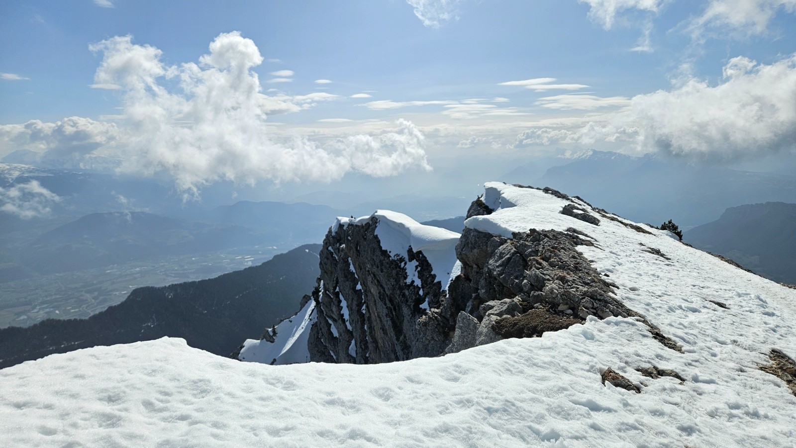 Heureusement le nuage s'en va et j'attend 30min au sommet que la neige décaille.