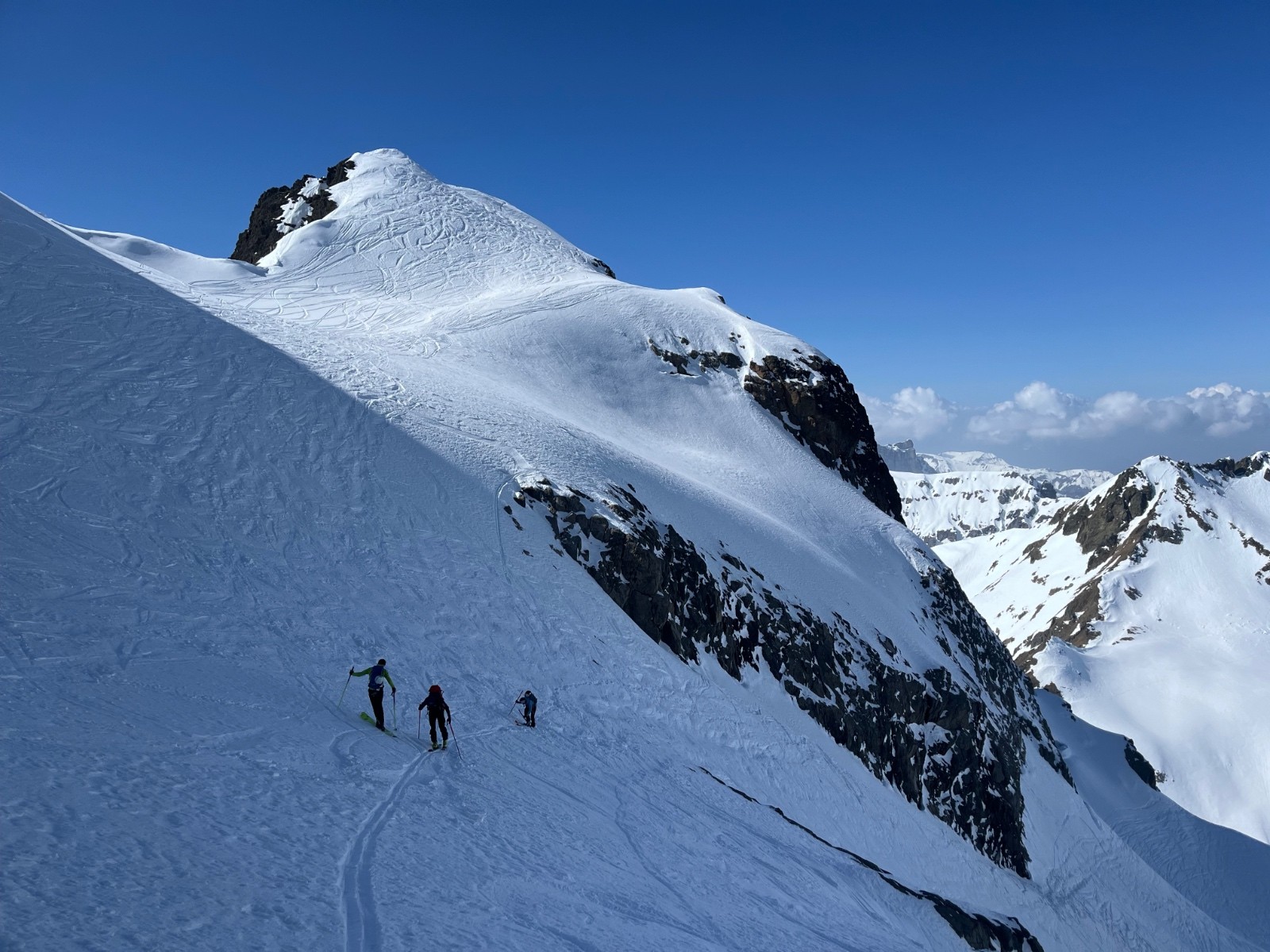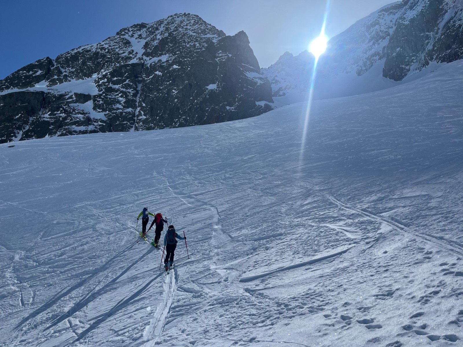 Merci à la (del)phine équipe du jour pour cette virée dans ce versant ombragé et silencieux du vallon de Bérard. En face, pèlerinage dominical dans la fournaise de la VN du Buet, mais nous serons seuls à remonter ce glacier.