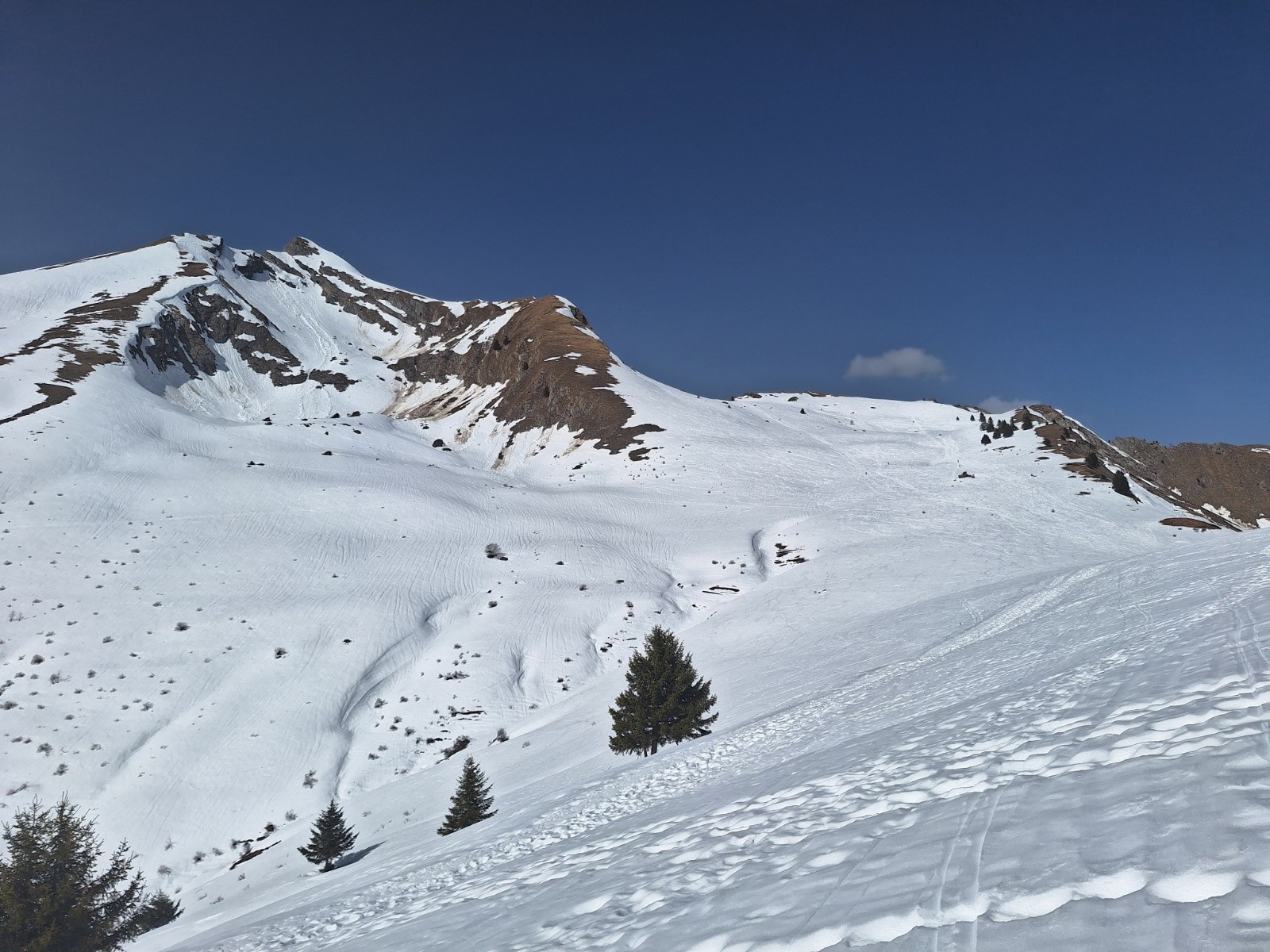 Col de la Bolire : neige dure, trafolée