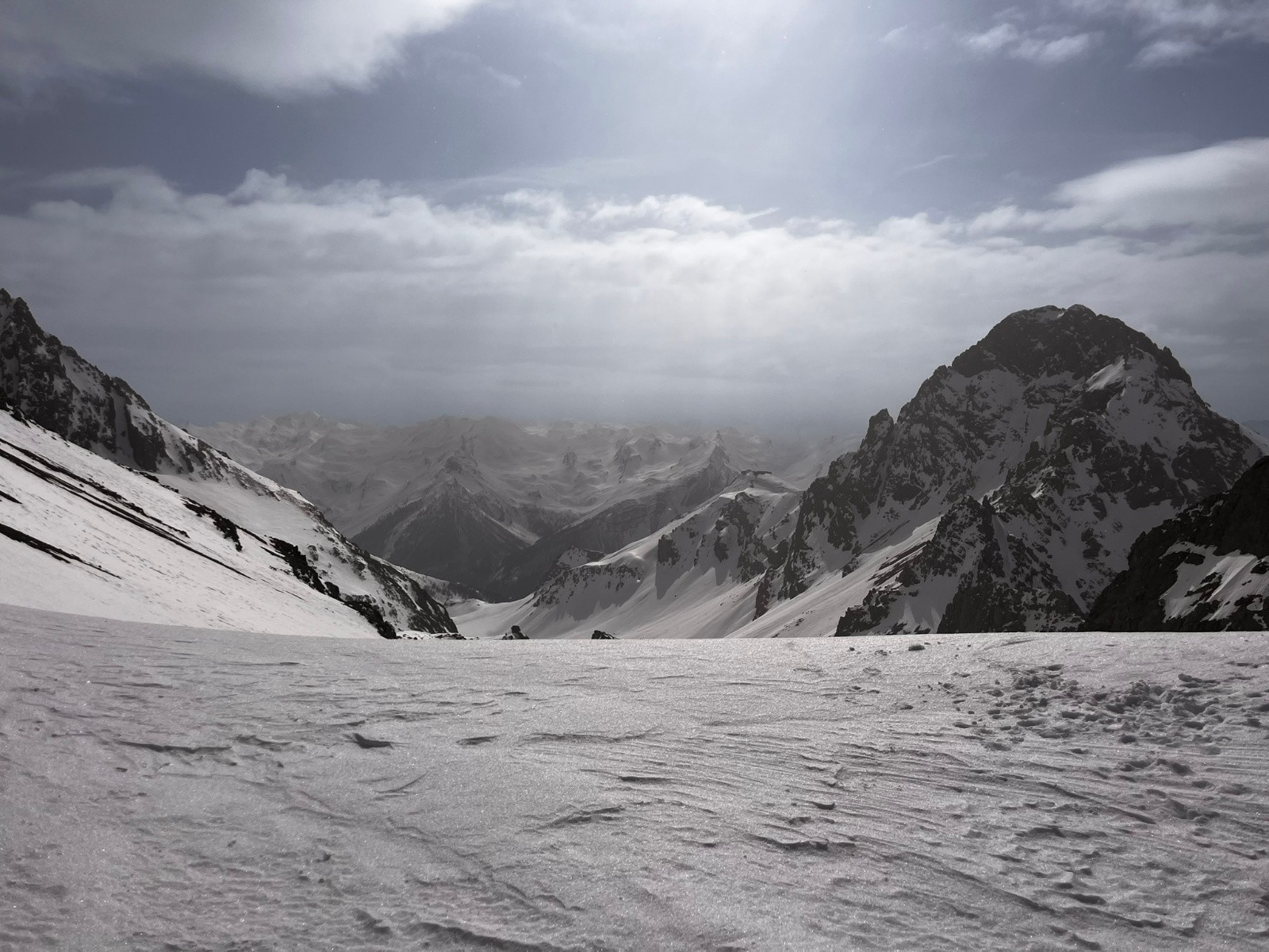 Conditions pour le ski : parfait, je m'attendais à une neige un peu plus cartonnée mais cela allait, moquette sympa en après midi (cela a pas mal boté sous le col de Portiola)