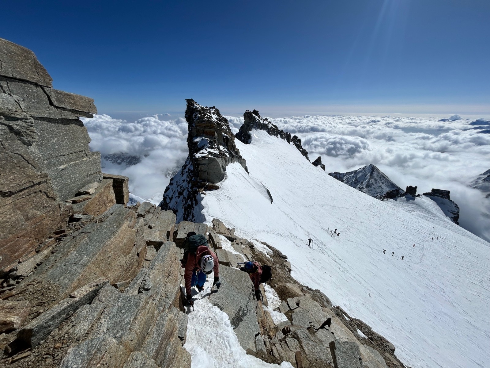 Nous sommes arrivés au sommet vers 13h et nous avons le sommet pour nous pendant 5 minutes, juste avant que quelques cordées arrivent.